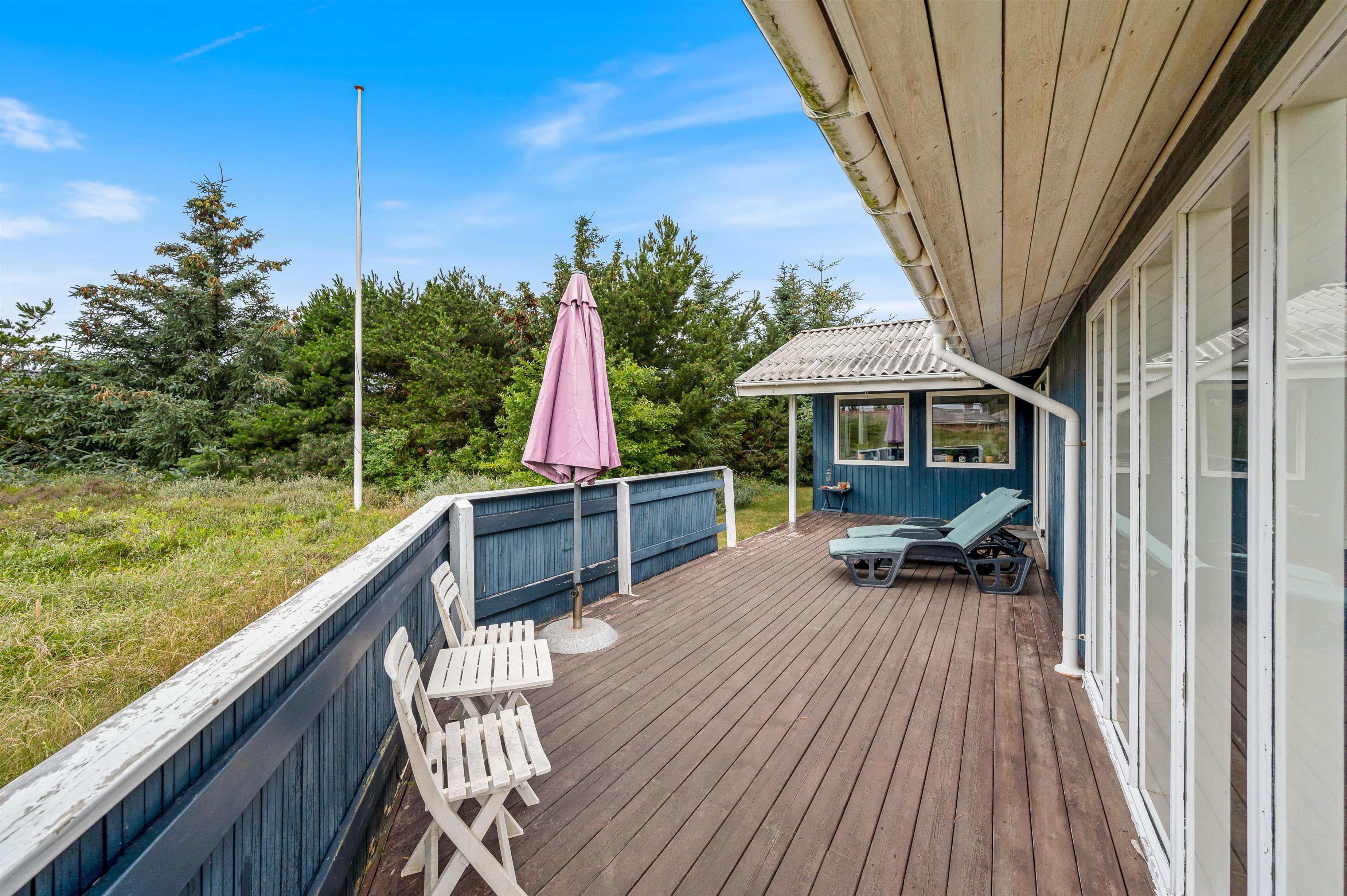 Ligeledes ligger Vesterhavet og kilometerlange hvide sandstrande knap 10 minutters gang fra feriehuset – en dukkert eller en tur langt stranden er bare ægte ferie.