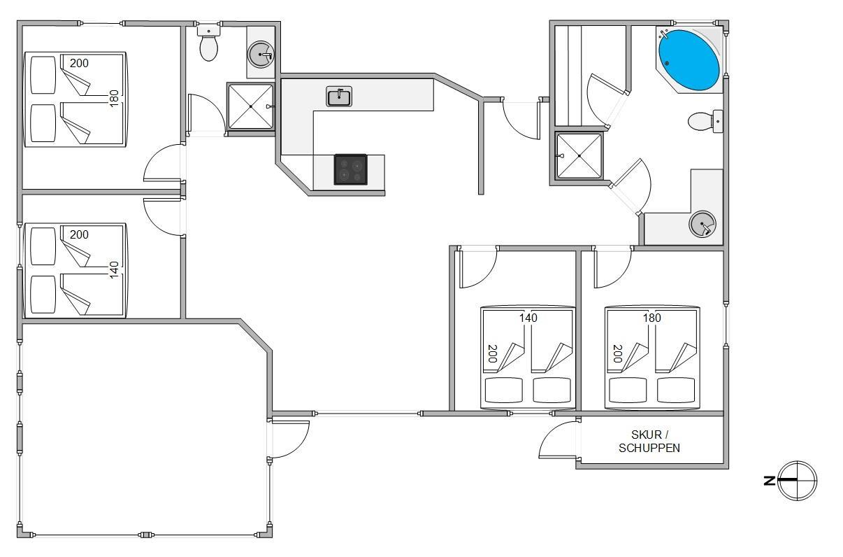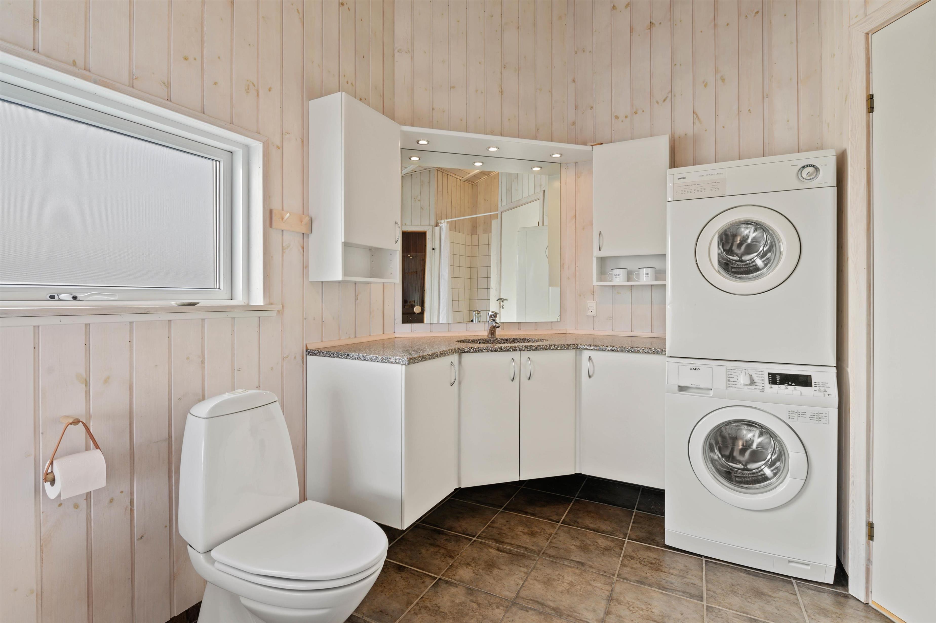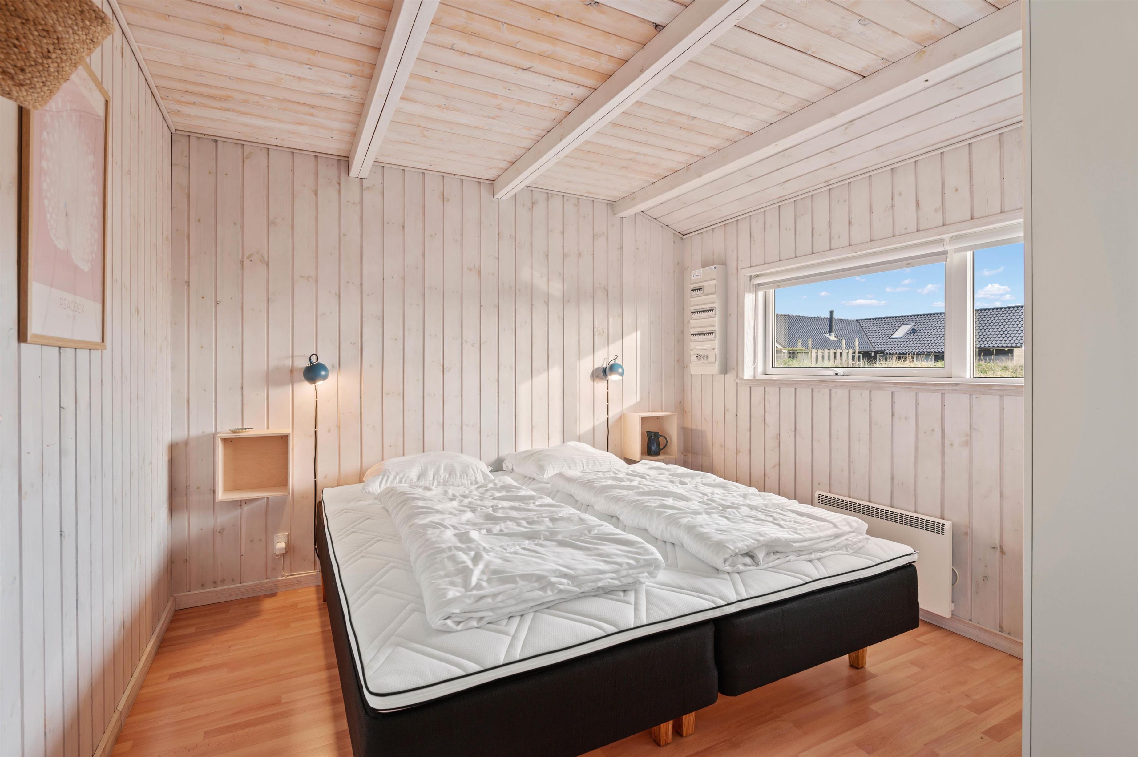Feriehusets store badeværelse indeholder både spa og sauna, desuden vaskemaskine og tørretumbler. Der er gulvvarme i badeværelser og opholdsrum og desuden en energibesparende varmepumpe. De 4 soveværelser indeholder 2 dobbeltsenge og 2 x 2 enkeltsenge, så der er fin plads til 8 personer. Der er højstol og barneseng i sommerhuset.