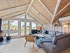 Når I træder ind i feriehuset vil I helt fra start nyde den gode atmosfære. Det lyse og åbne opholdsrum består af både spisestue, køkken og stue. Her vil I uden tvivl tilbringe mange fælles timer i løbet af jeres ferie. Takket være de store vinduer har opholdsrummet et skønt lysindfald, og I kan altid lade blikket glide ud i den smukke natur.
