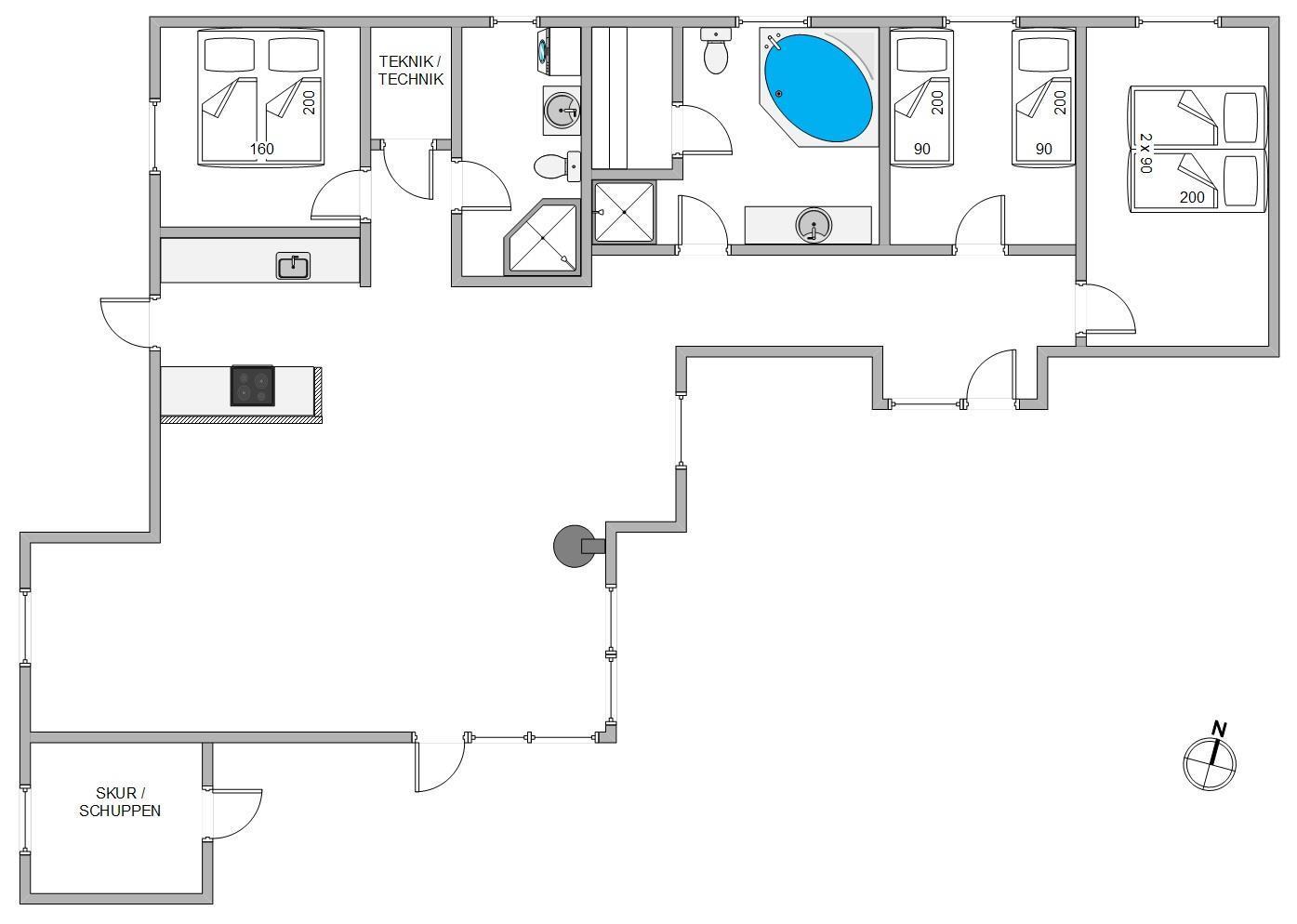Hyggeafdelingen er ved brændeovnen, som på få timer varmer hele feriehuset op. Her står et par stole og magelige sofamøbler, som inviterer til afslapning og hygge. Sommerhuset er indrettet med 3 soverum, som alle er med dobbeltseng. Desuden er der både spabad og sauna, som sikrer wellness til krop og sjæl på alle tider af året.