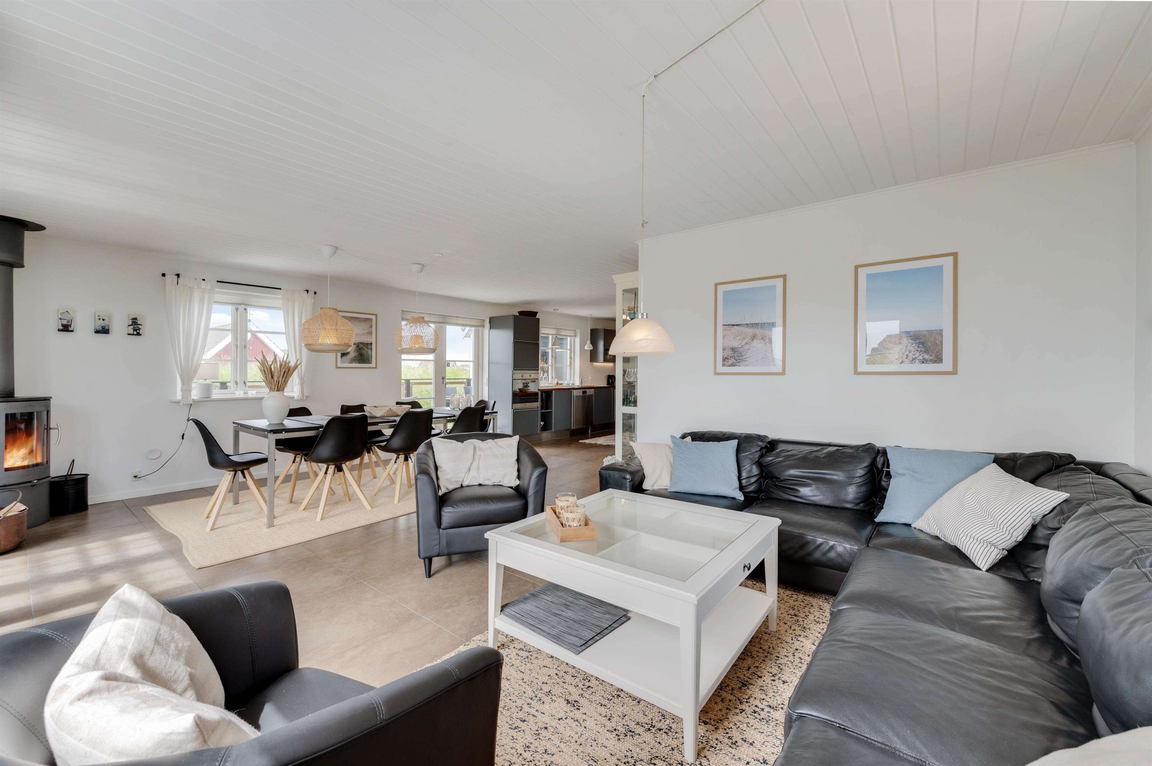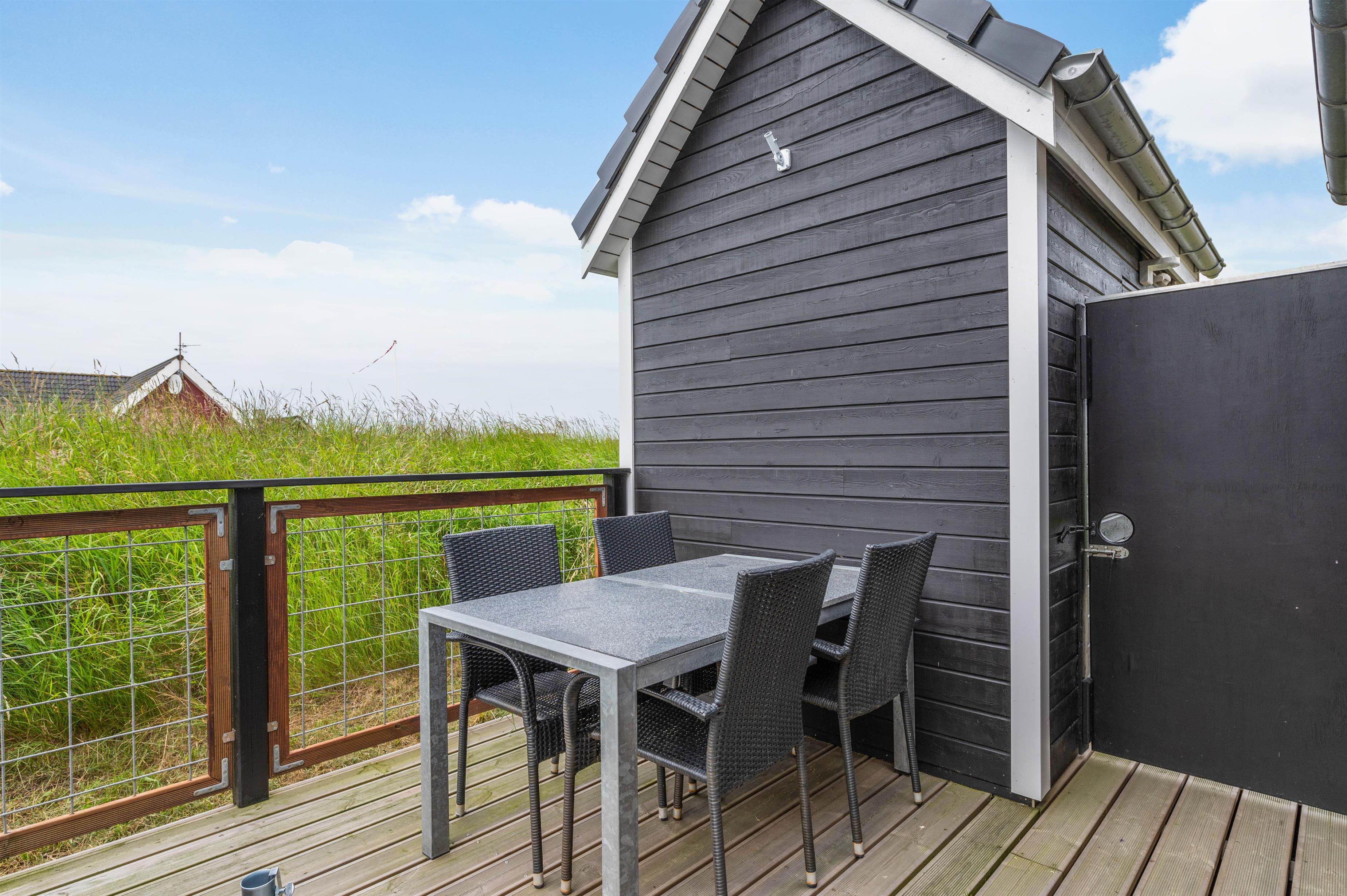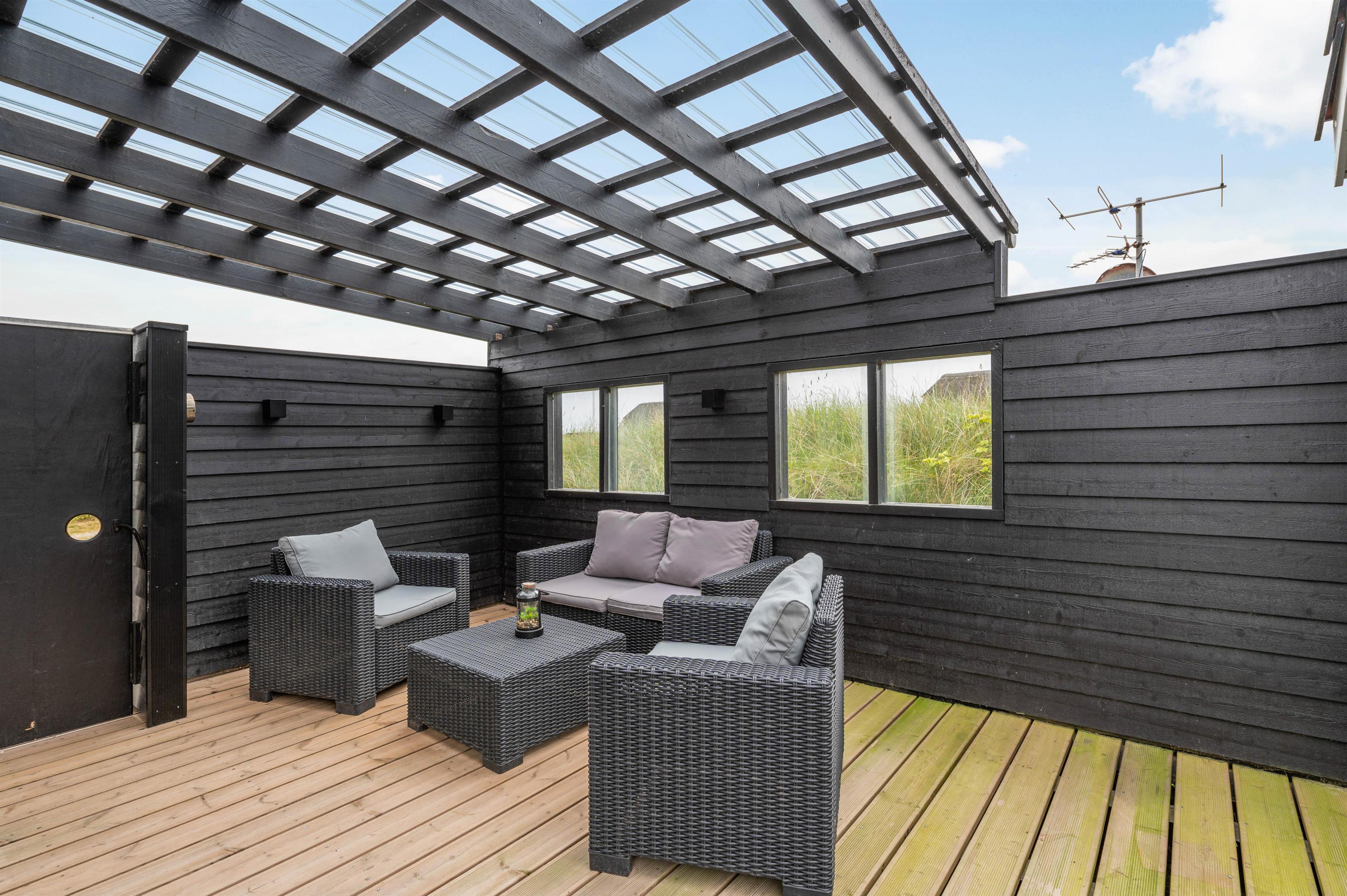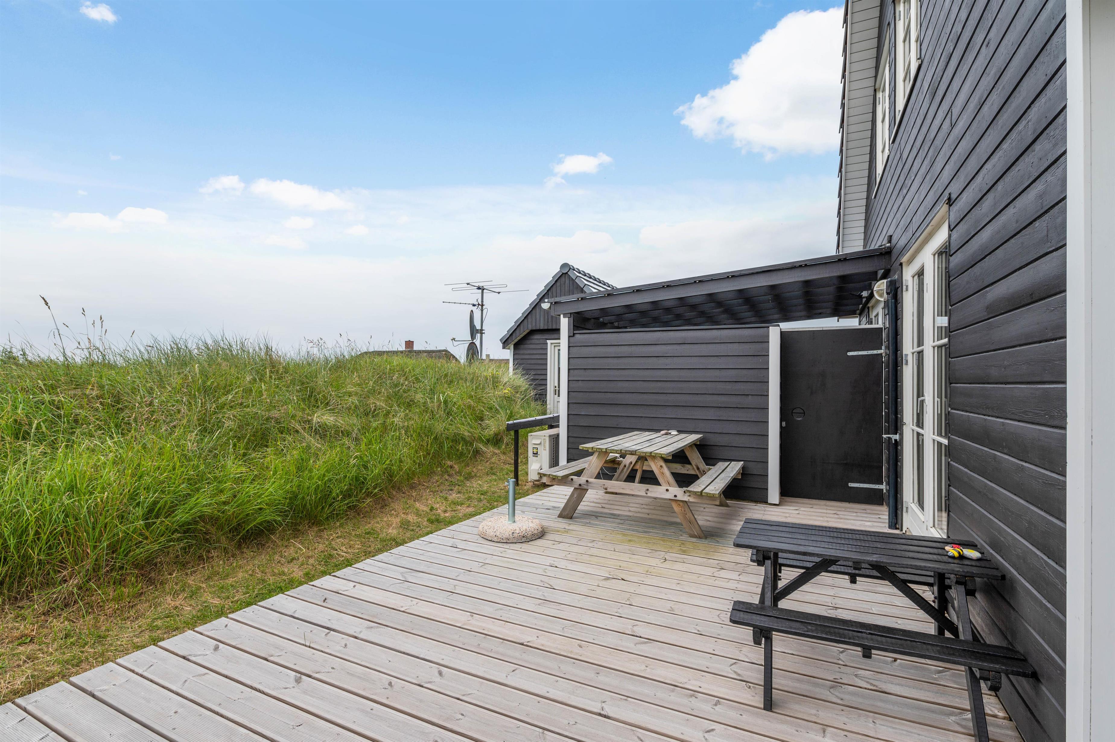 På terrassen, som omgiver sommerhuset, er der mange lækroge, så du kan altid finde dig en fin plet, hvortil du kan trække dig tilbage med en kop te. En del af terrassen er lukket, ideelt til familier med hund eller små børn. Nyd også at solbade i de komfortable liggestole på de varme dage, du kan altid tage en pause i de andre havemøbler, når du trænger til det. Tænd op i grillen til aften, og nyd et lækkert grillmåltid sammen, før I går en tur ned til den kilometerlange sandstrand for at betragte solnedgangen i Vesterhavet. Det er altid en oplevelse.