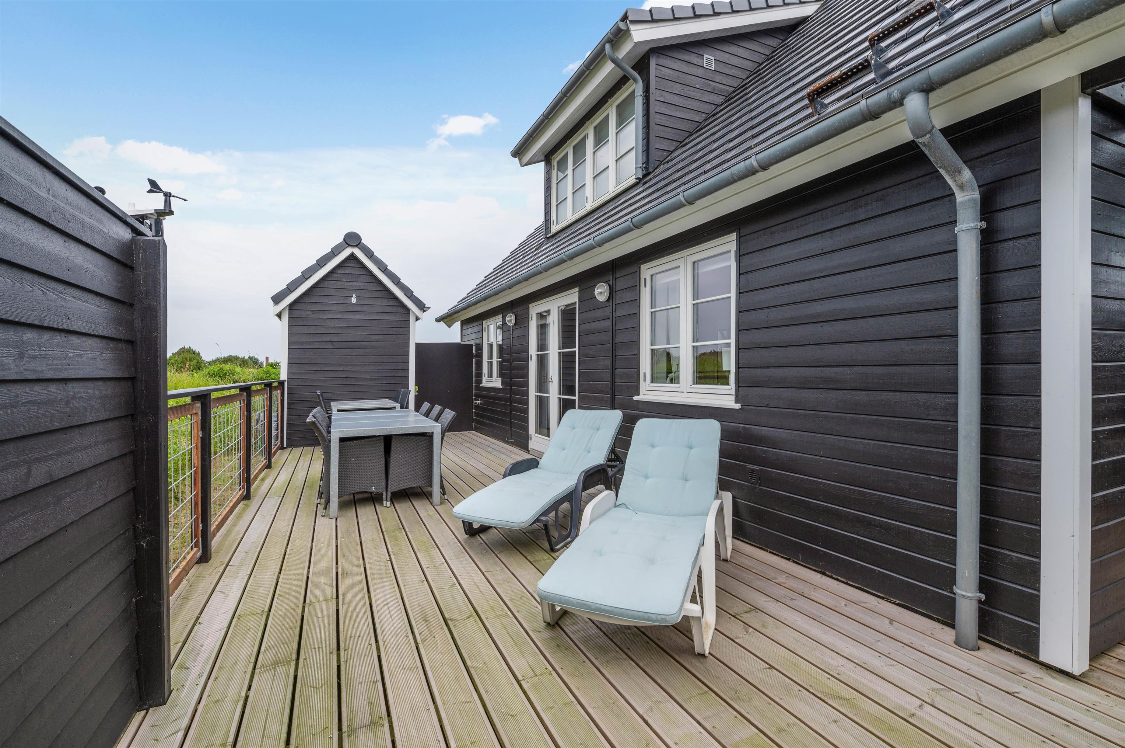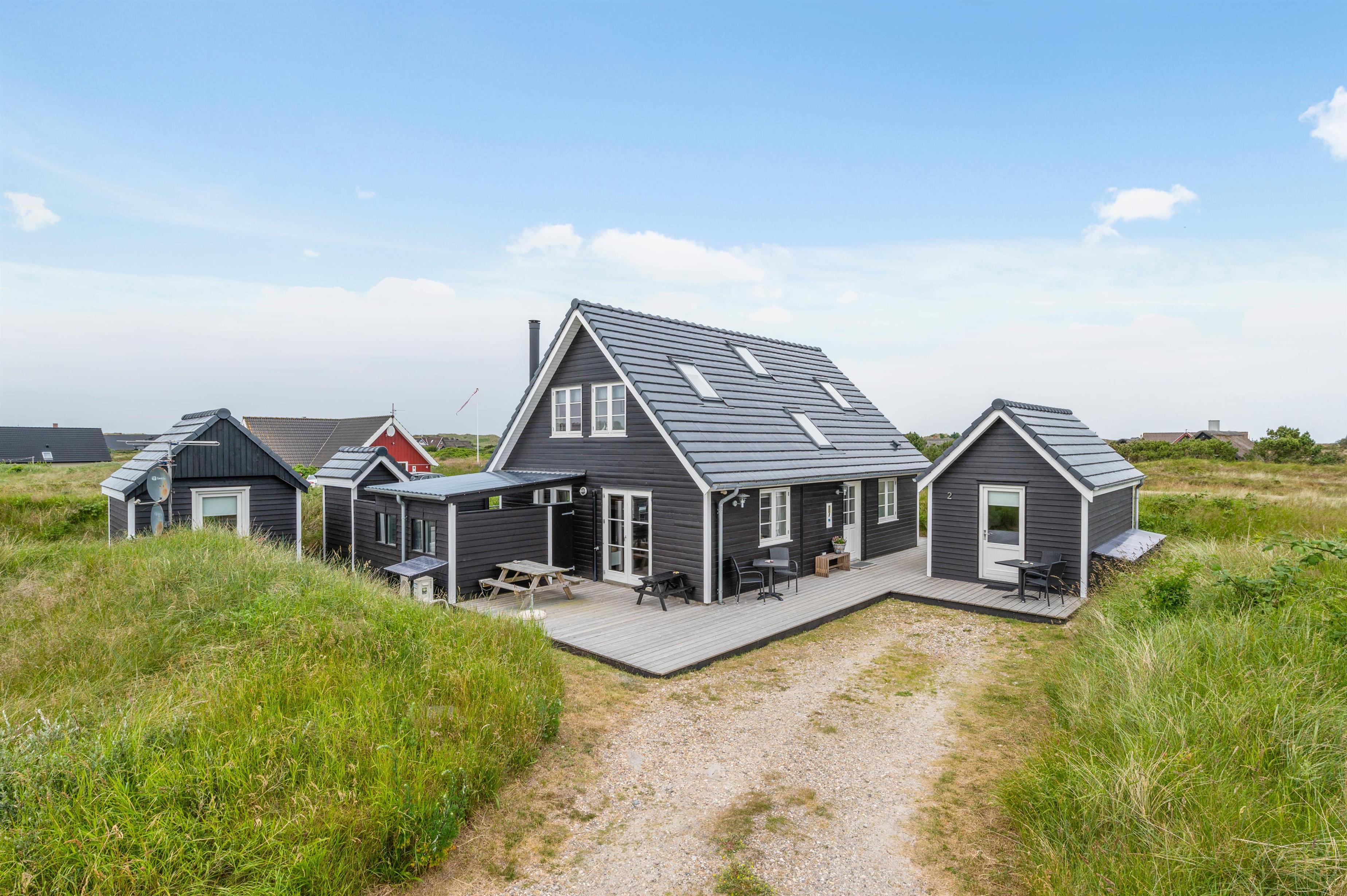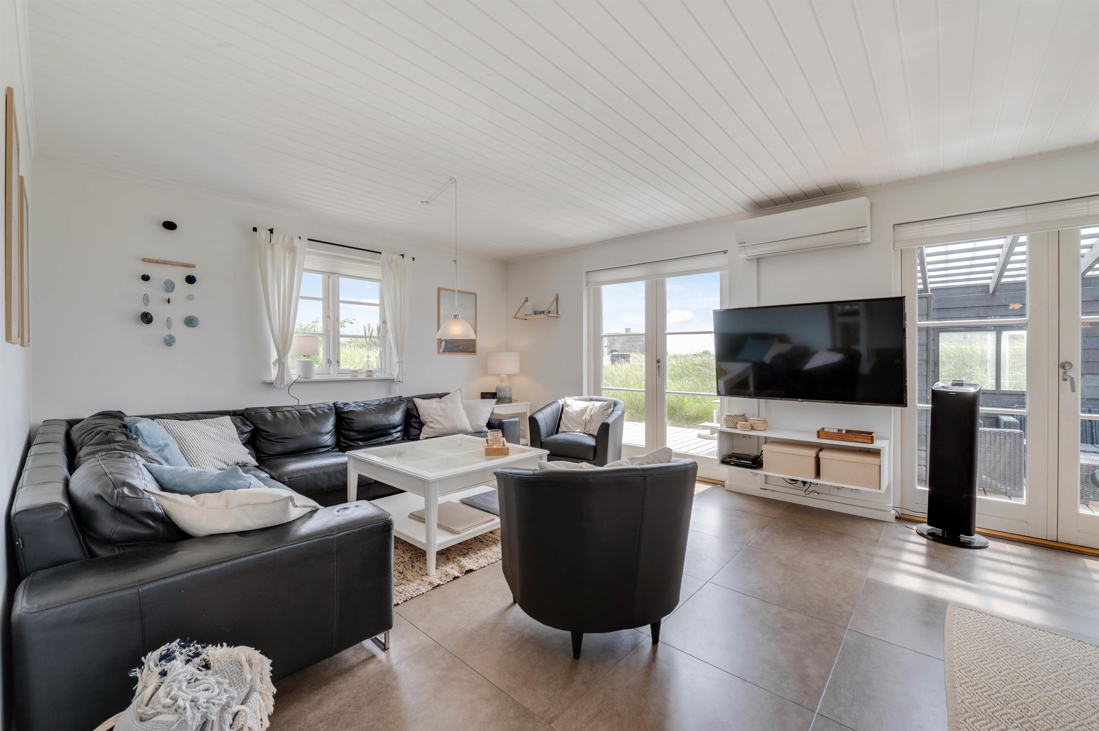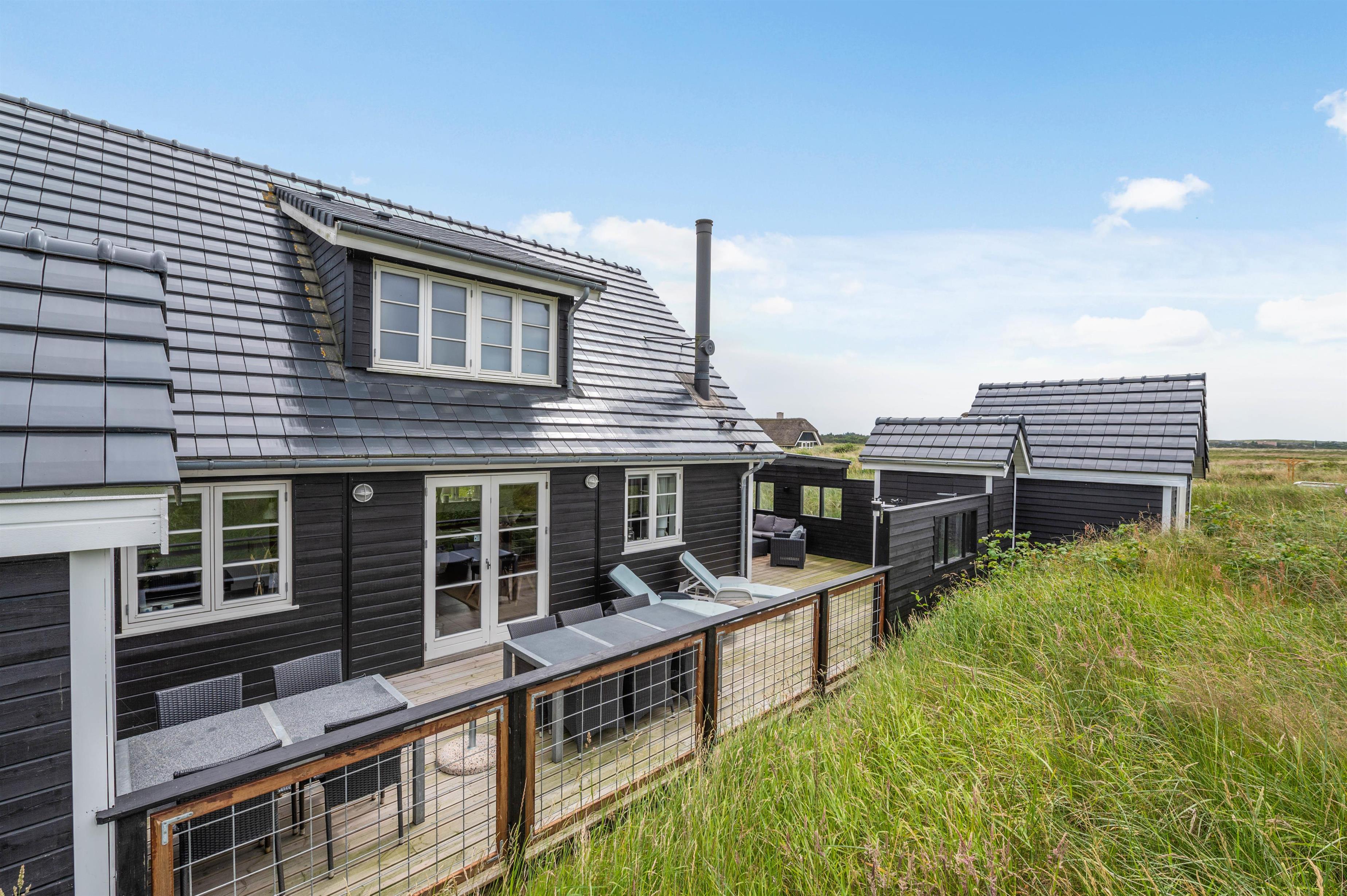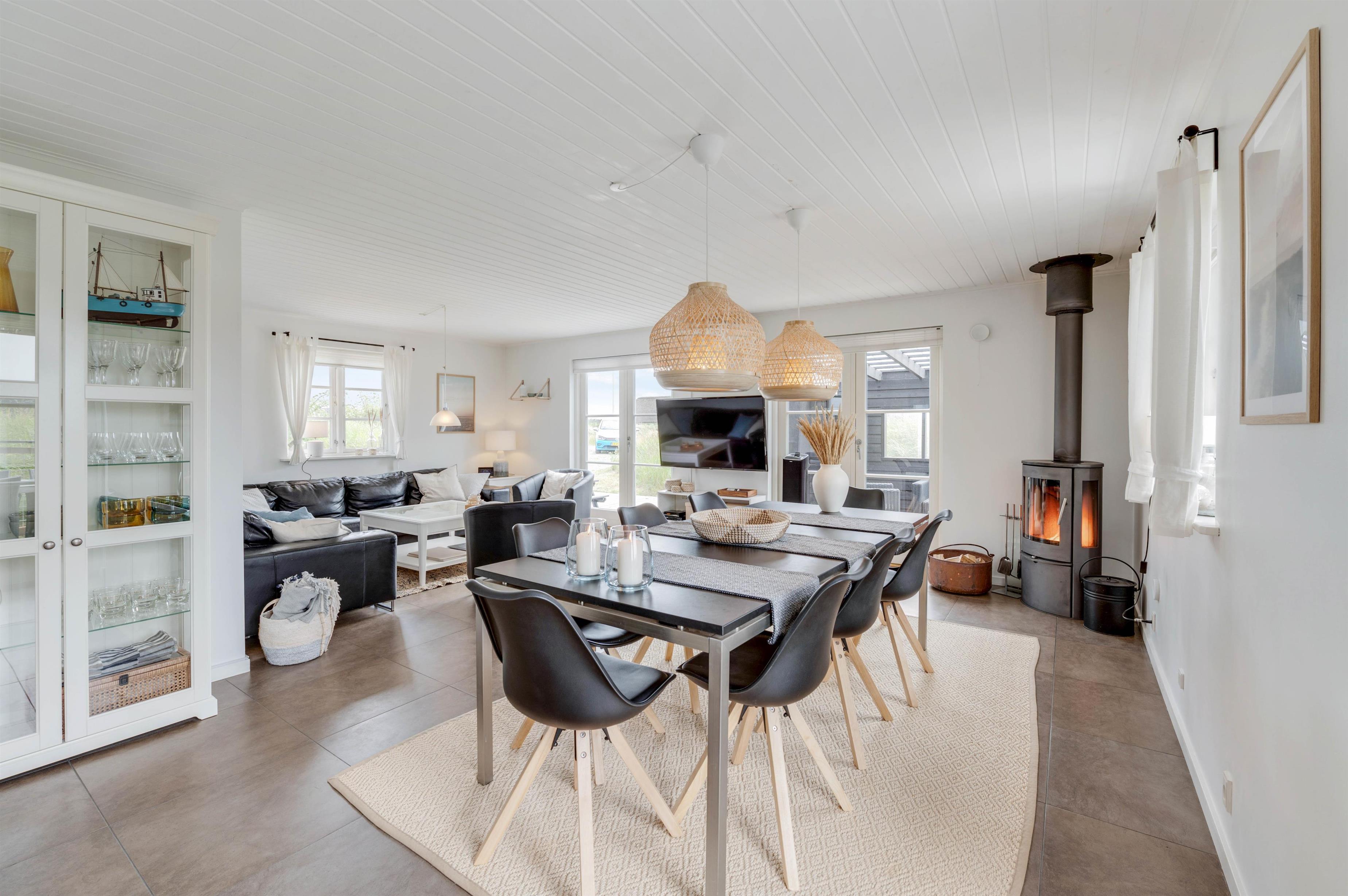 På terrassen, som omgiver sommerhuset, er der mange lækroge, så du kan altid finde dig en fin plet, hvortil du kan trække dig tilbage med en kop te. En del af terrassen er lukket, ideelt til familier med hund eller små børn. Nyd også at solbade i de komfortable liggestole på de varme dage, du kan altid tage en pause i de andre havemøbler, når du trænger til det. Tænd op i grillen til aften, og nyd et lækkert grillmåltid sammen, før I går en tur ned til den kilometerlange sandstrand for at betragte solnedgangen i Vesterhavet. Det er altid en oplevelse.