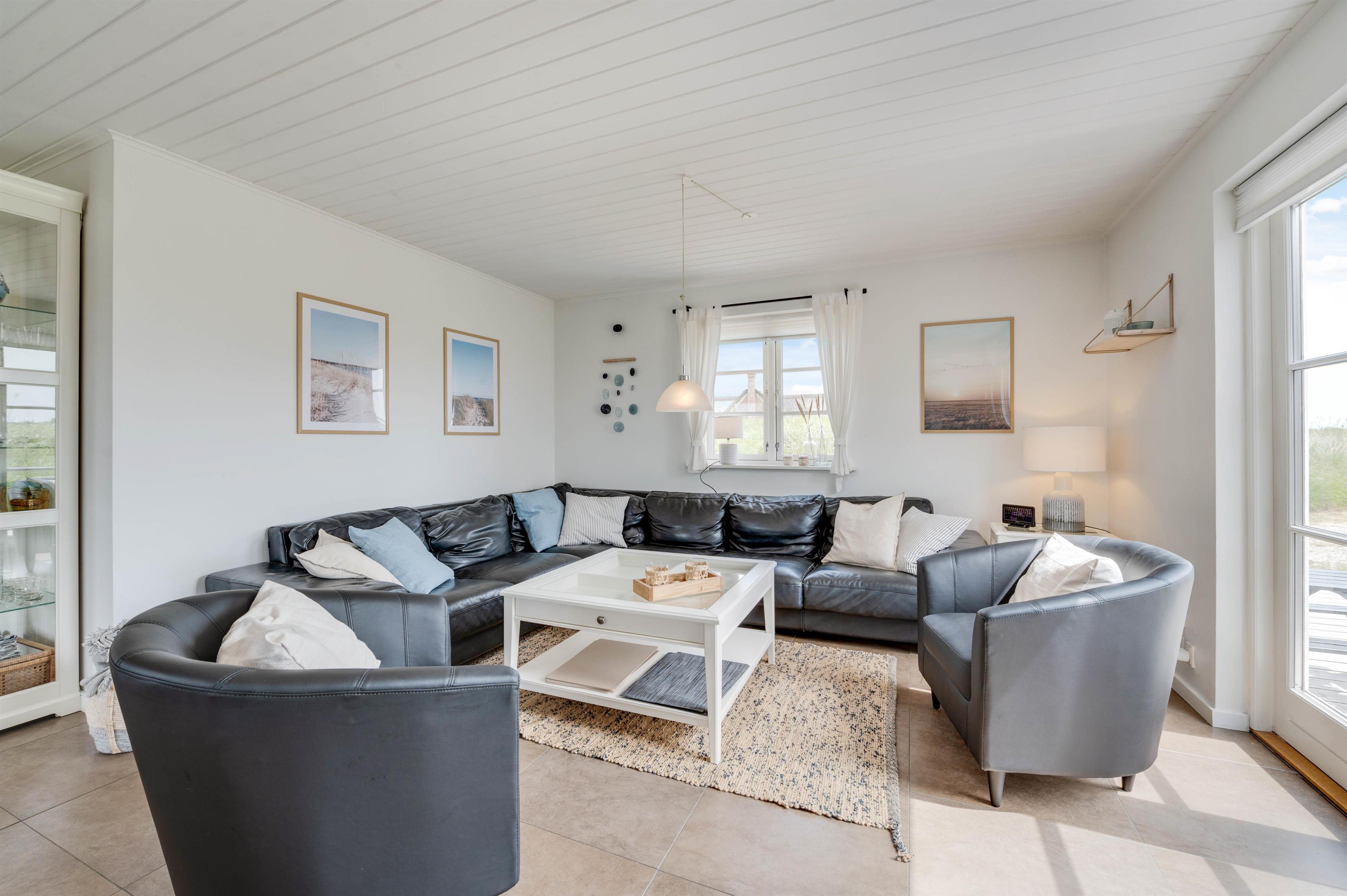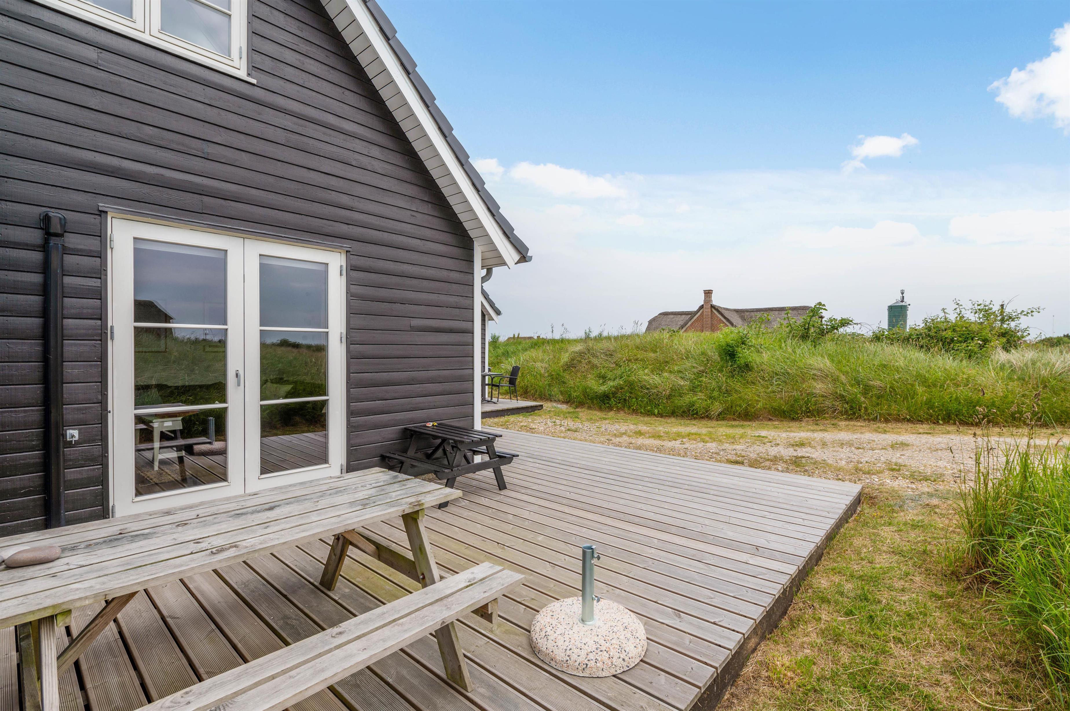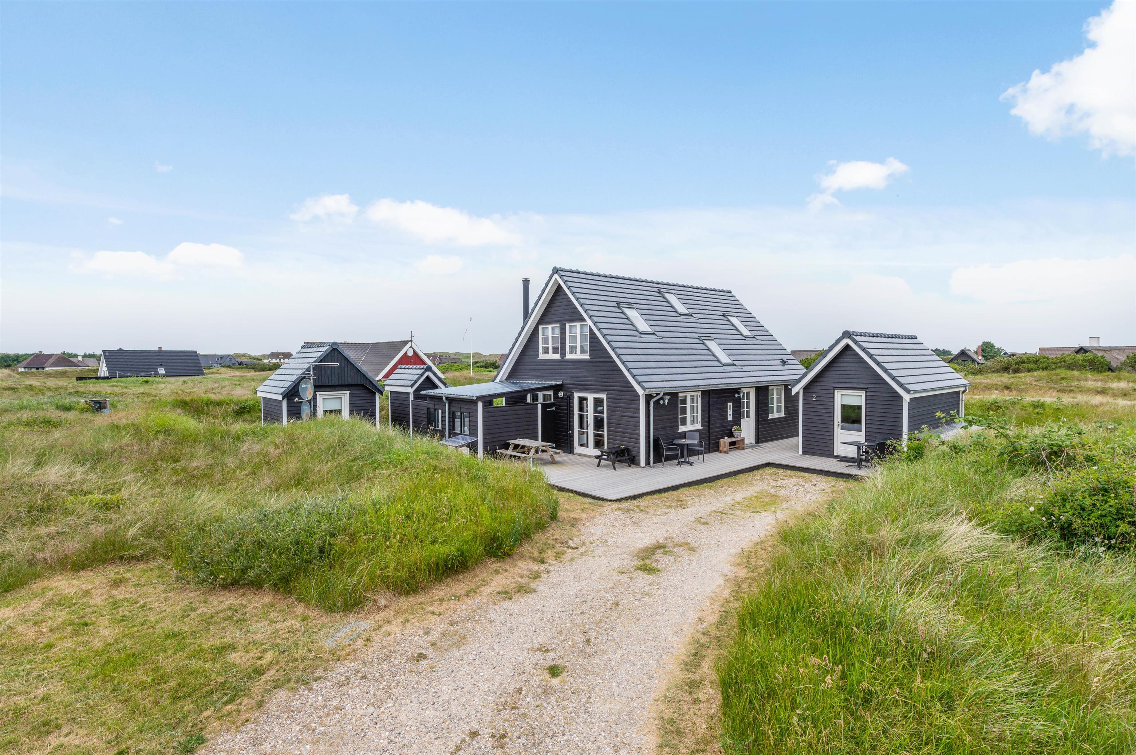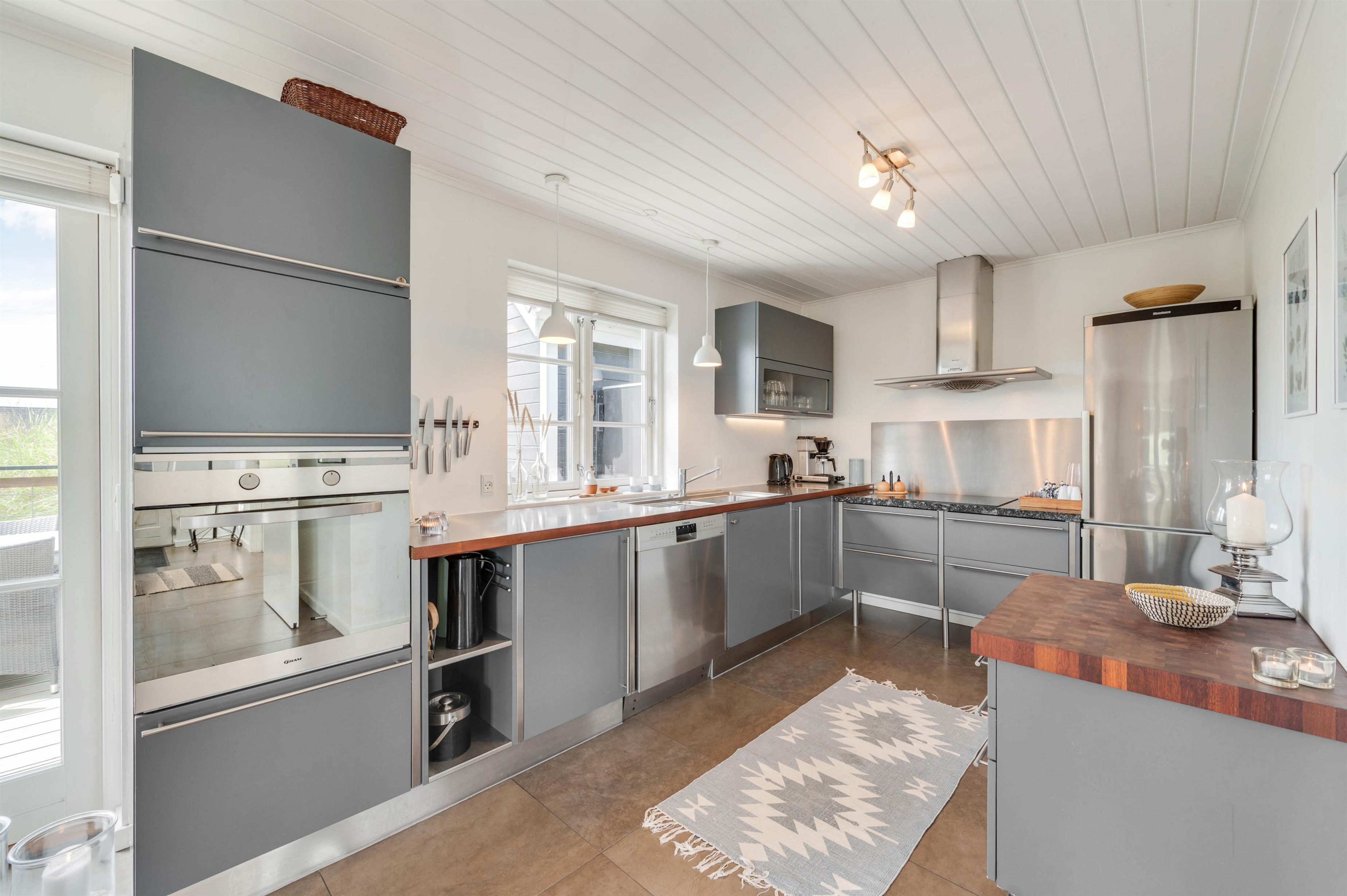 På terrassen, som omgiver sommerhuset, er der mange lækroge, så du kan altid finde dig en fin plet, hvortil du kan trække dig tilbage med en kop te. En del af terrassen er lukket, ideelt til familier med hund eller små børn. Nyd også at solbade i de komfortable liggestole på de varme dage, du kan altid tage en pause i de andre havemøbler, når du trænger til det. Tænd op i grillen til aften, og nyd et lækkert grillmåltid sammen, før I går en tur ned til den kilometerlange sandstrand for at betragte solnedgangen i Vesterhavet. Det er altid en oplevelse.