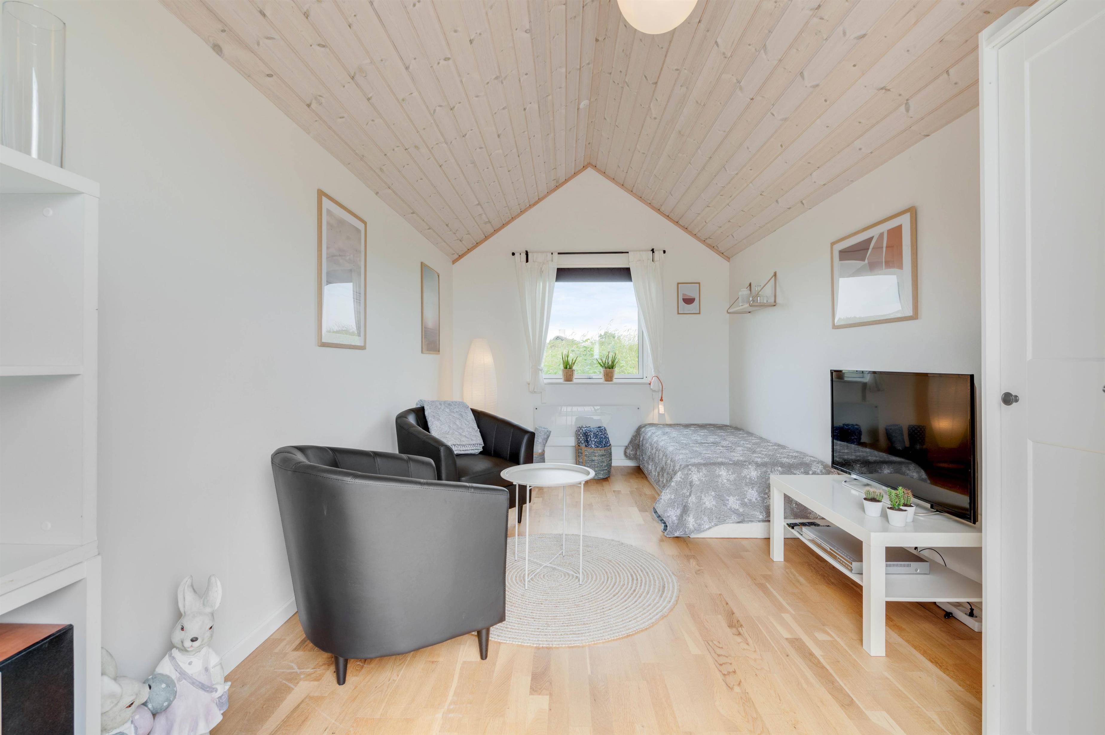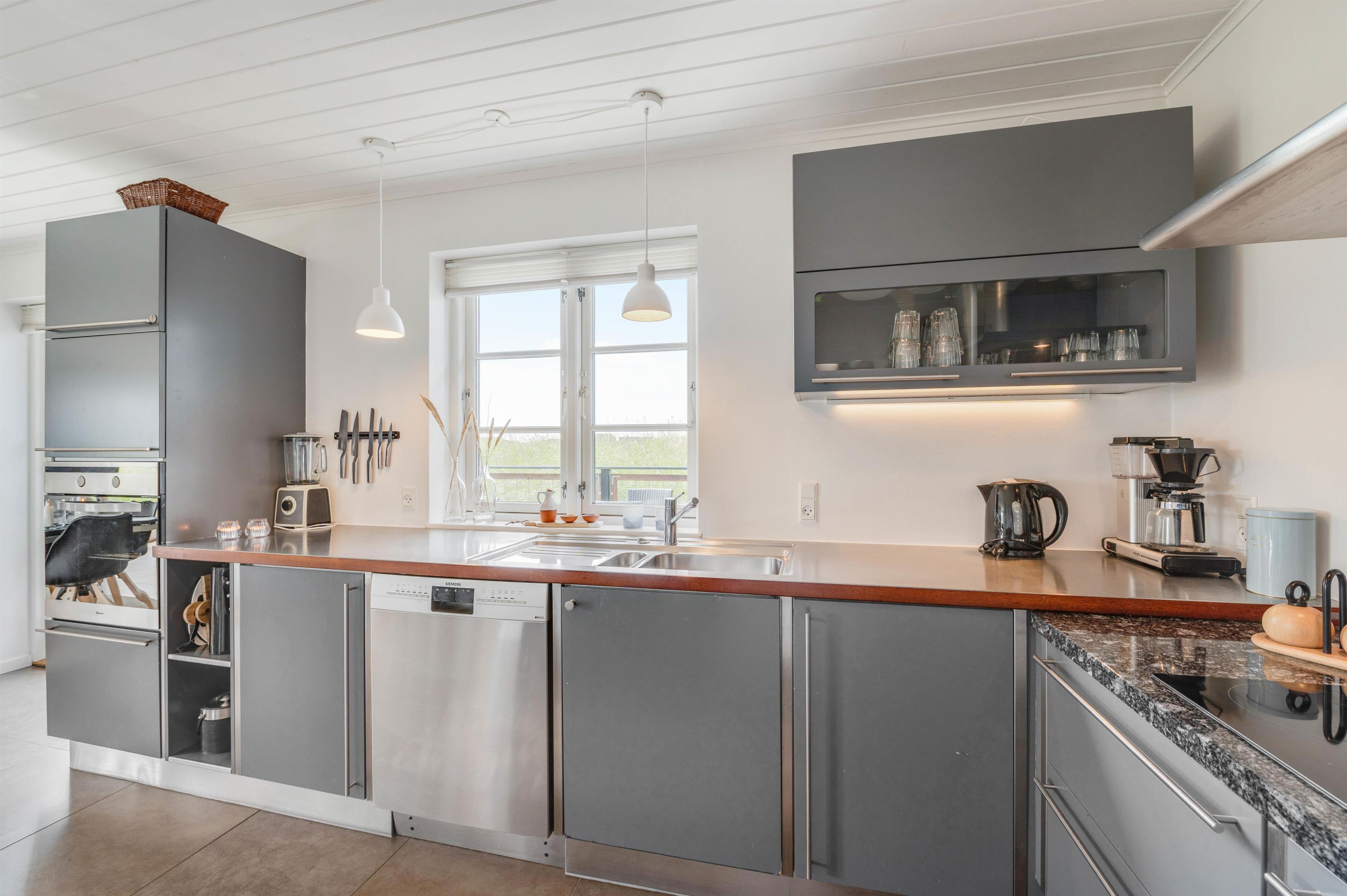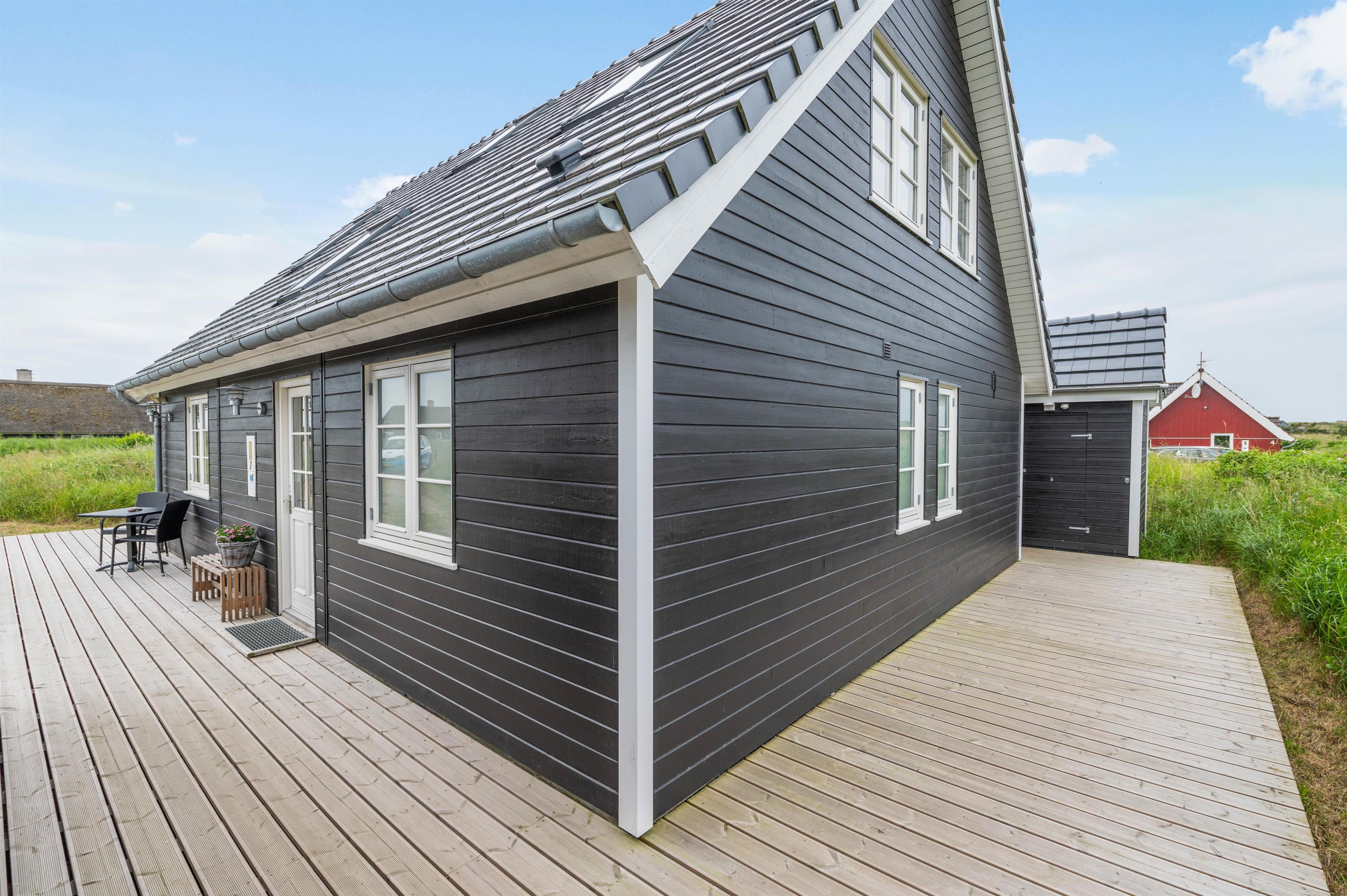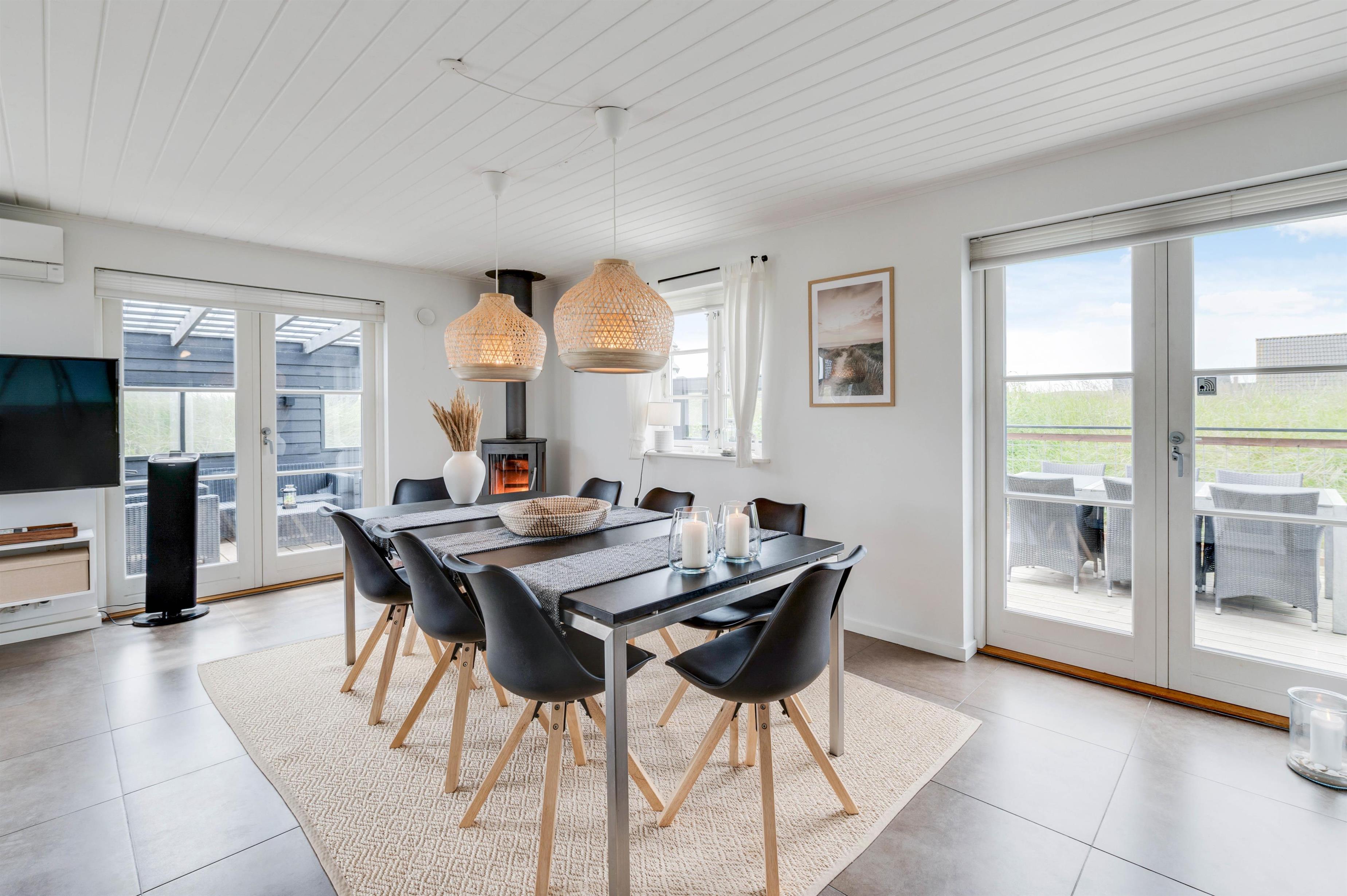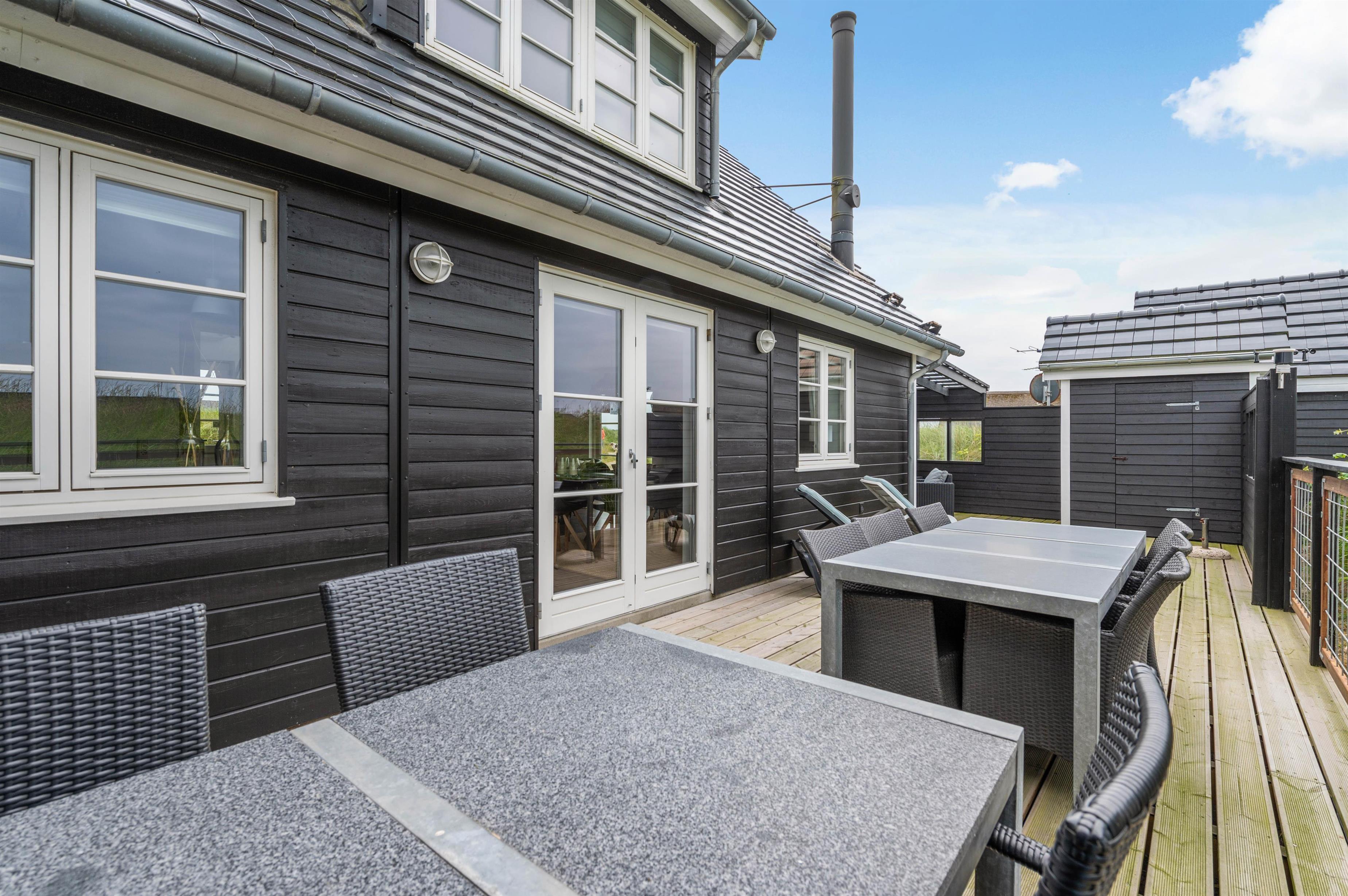 På terrassen, som omgiver sommerhuset, er der mange lækroge, så du kan altid finde dig en fin plet, hvortil du kan trække dig tilbage med en kop te. En del af terrassen er lukket, ideelt til familier med hund eller små børn. Nyd også at solbade i de komfortable liggestole på de varme dage, du kan altid tage en pause i de andre havemøbler, når du trænger til det. Tænd op i grillen til aften, og nyd et lækkert grillmåltid sammen, før I går en tur ned til den kilometerlange sandstrand for at betragte solnedgangen i Vesterhavet. Det er altid en oplevelse.