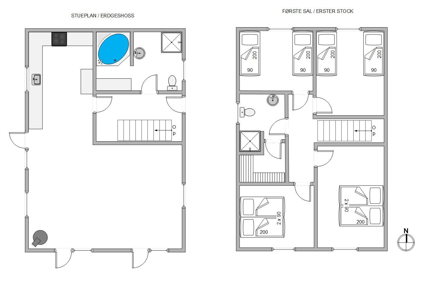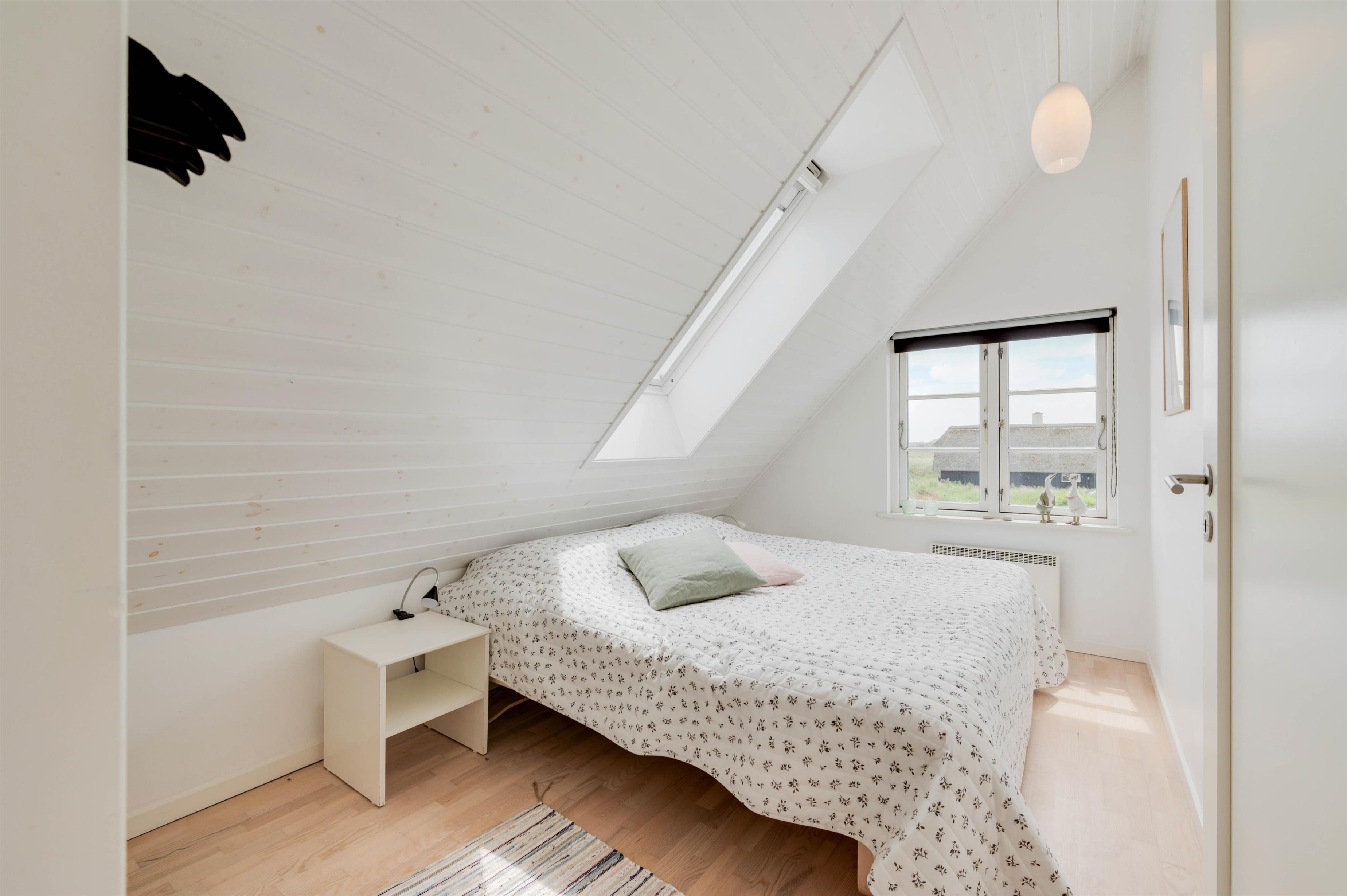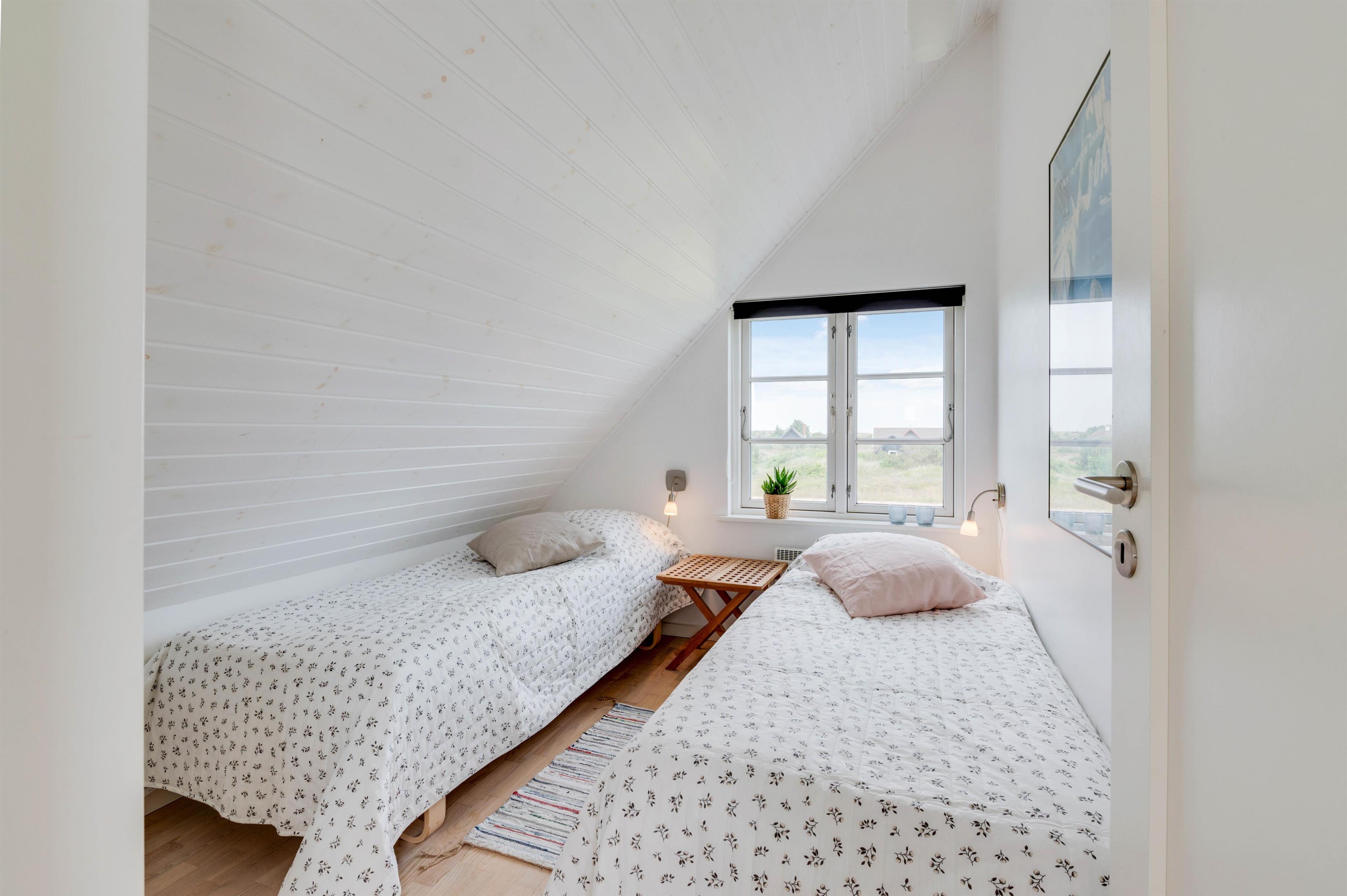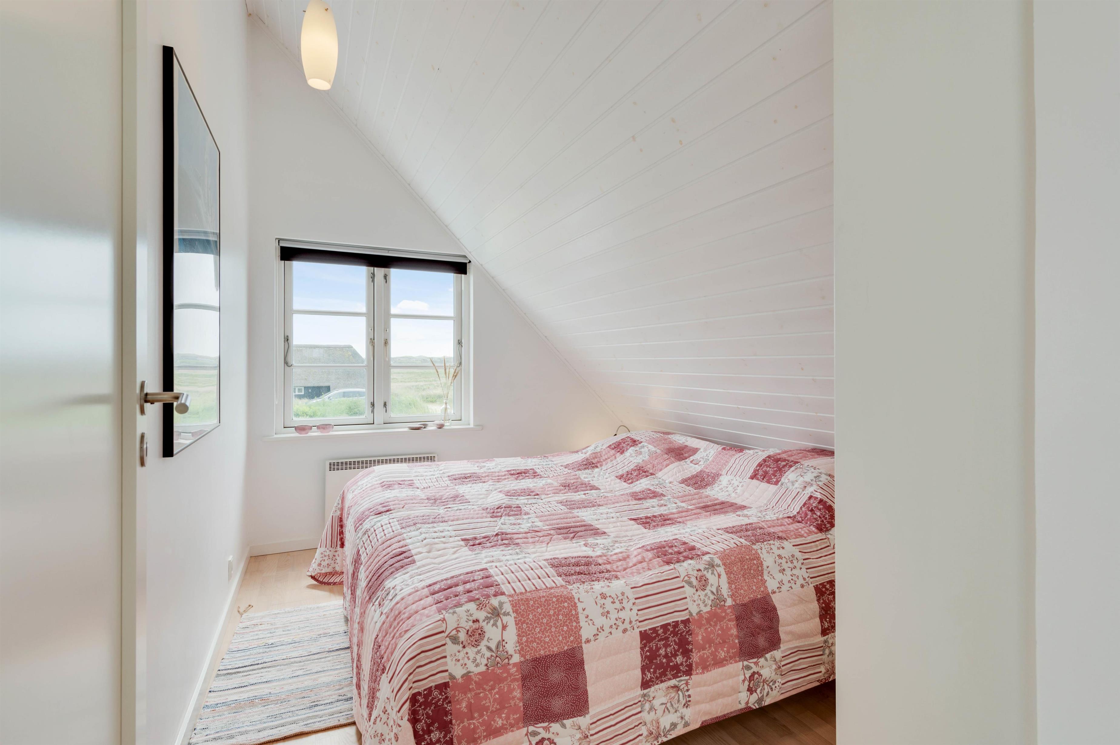 På Risbusken 2 byder en lys og venlig indretning velkommen. Det fine lysindfald bidrager sammen med brændeovnen til at sætte feriestemningen i fokus. Det moderne køkken er udstyret med alt, hvad I behøver for at tilberede lækre, hjemmelavede måltider til hinanden. Den rummelige stue har spiseplads i forbindelse med brændeovnen, og i sofagruppen kan I slappe af, se en film sammen eller trække jer tilbage med en god bog. Der er badeværelse på begge etager. I stueetagen er en hel lille wellnessafdeling med walk-in bruser, spa og sauna. I alle 4 soveværelser er 2 enkeltsenge, som kan stå adskilt, eller sættes sammen til dobbeltsenge. Her kan I hvile ekstra godt ud i den friske vesterhavsluft.