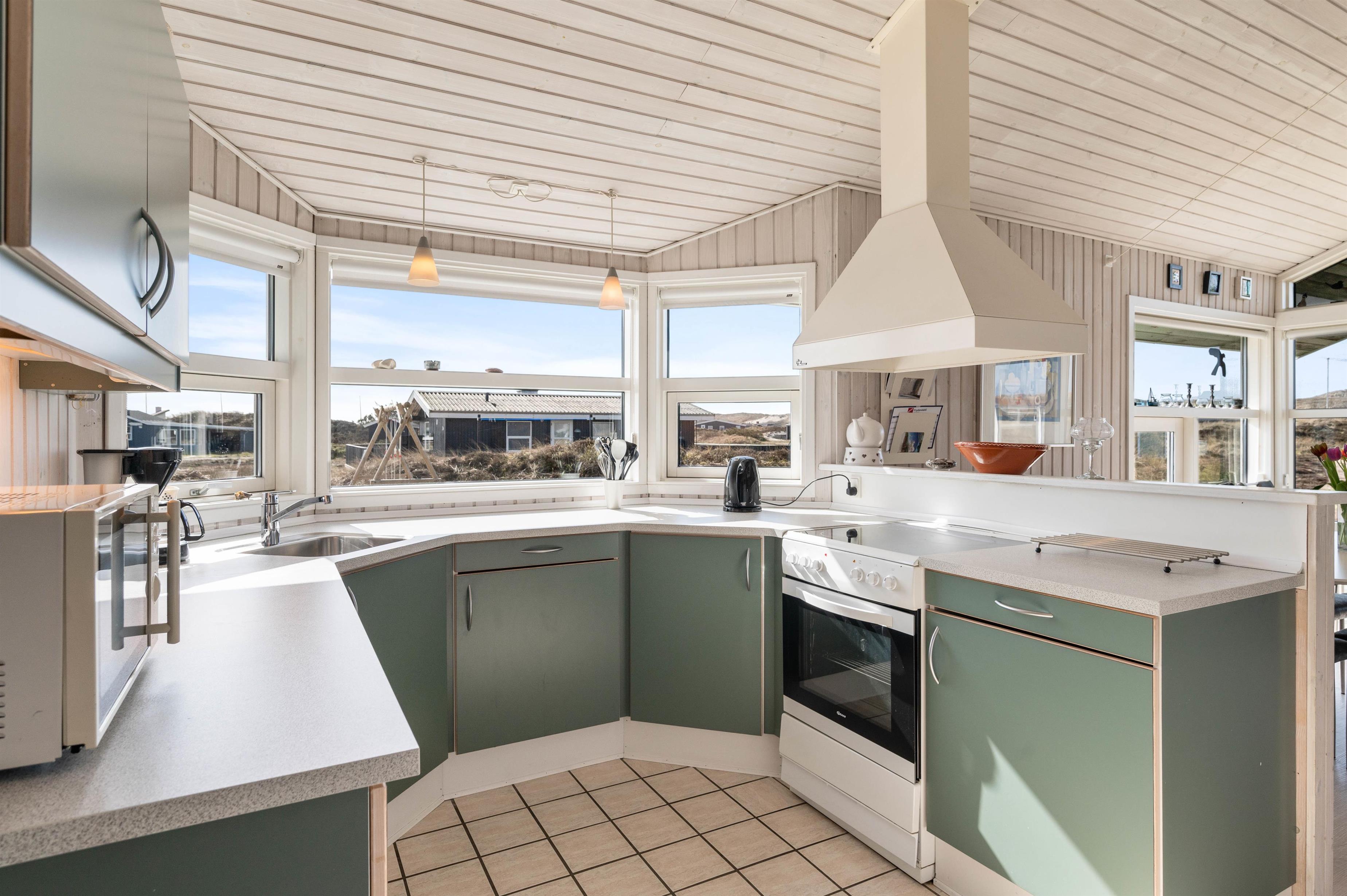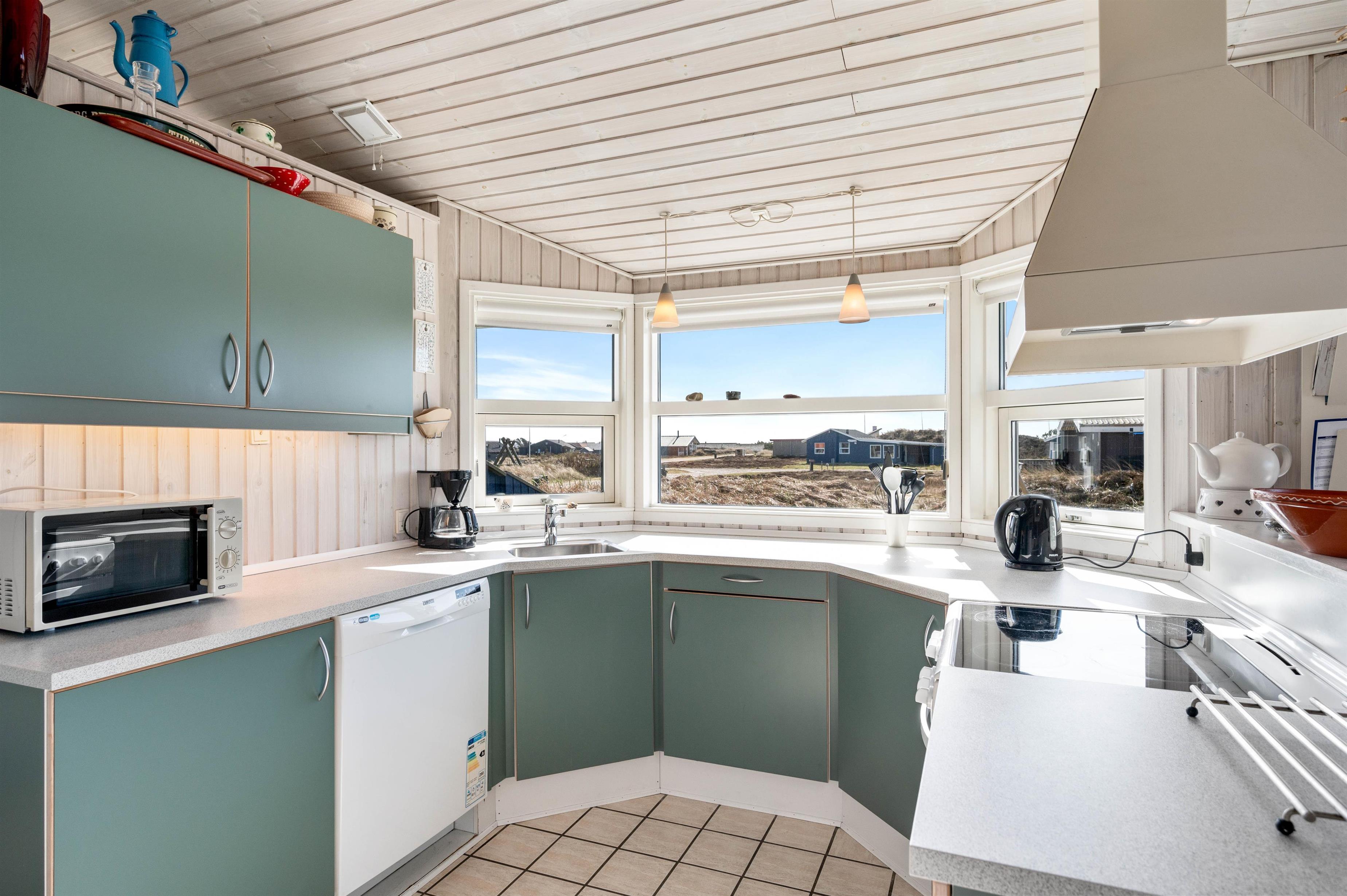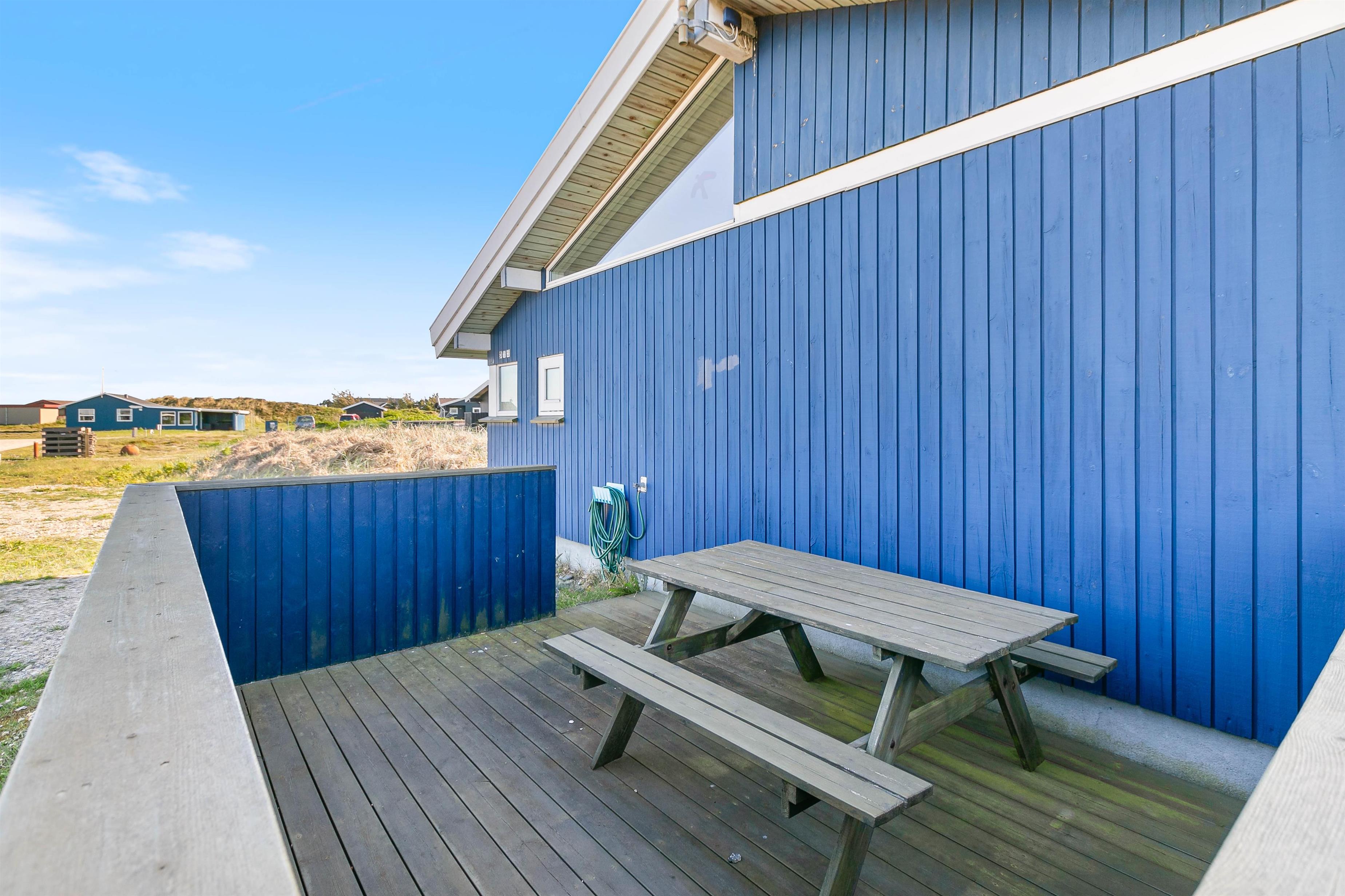 Feriehuset ligger kun få minutters gang fra gode bademuligheder på Bjerregård strand og tæt på Ringkøbing Fjord. Indkøbsmuligheder finder I blot et par kilometer væk, og ellers er det oplagt at lade udflugterne gå til Hvide Sande med alle butikkerne og det hyggelige havnemiljø.