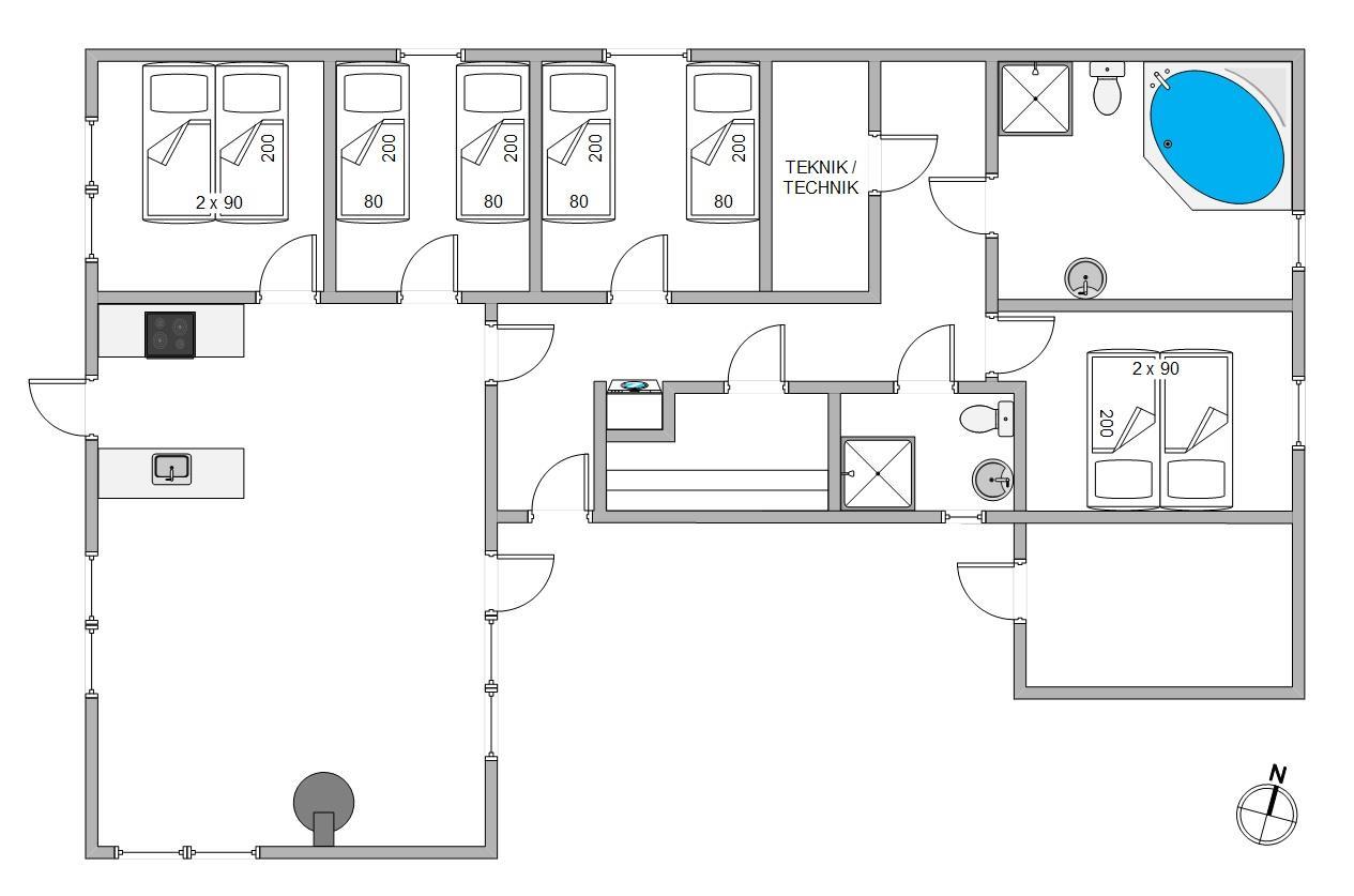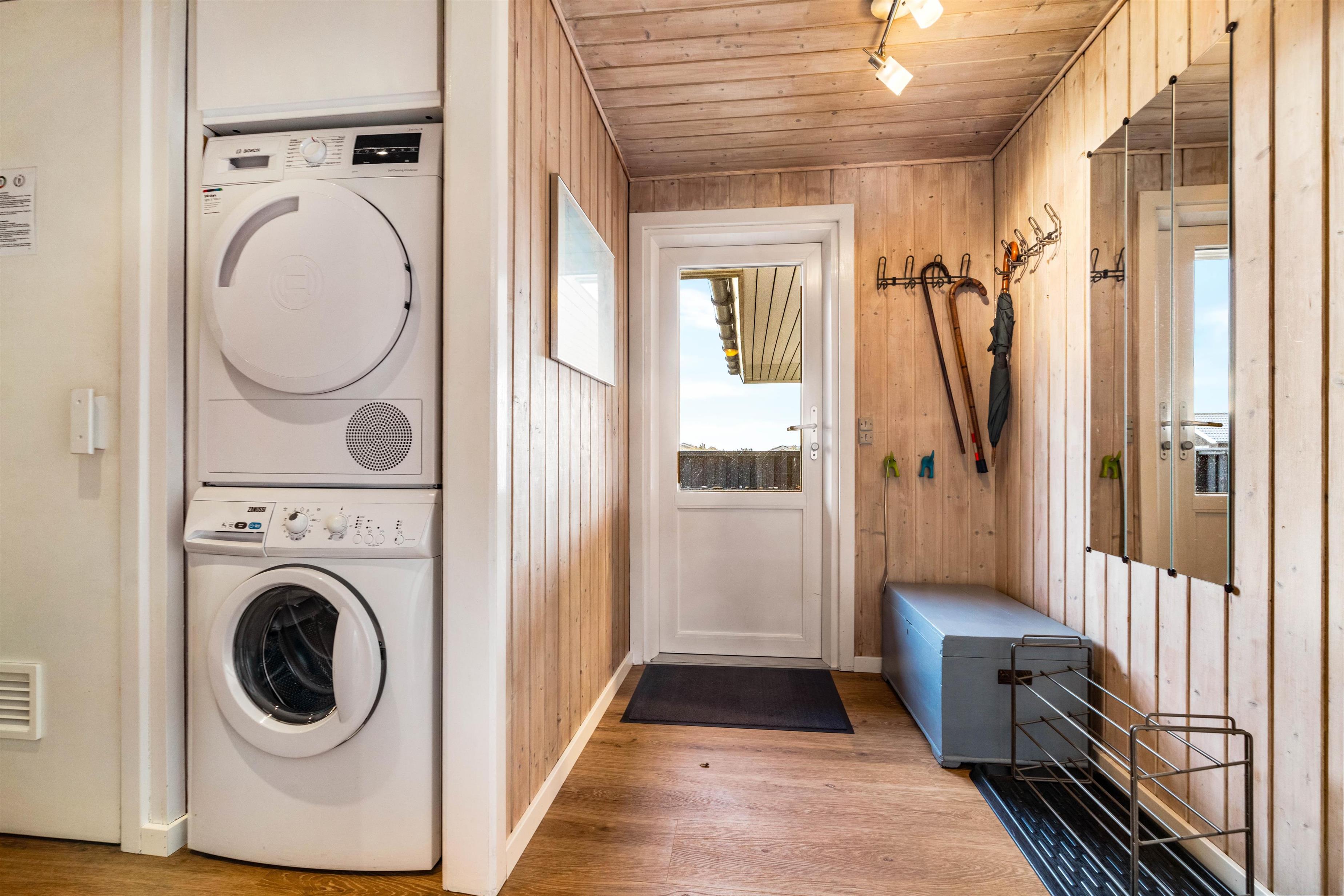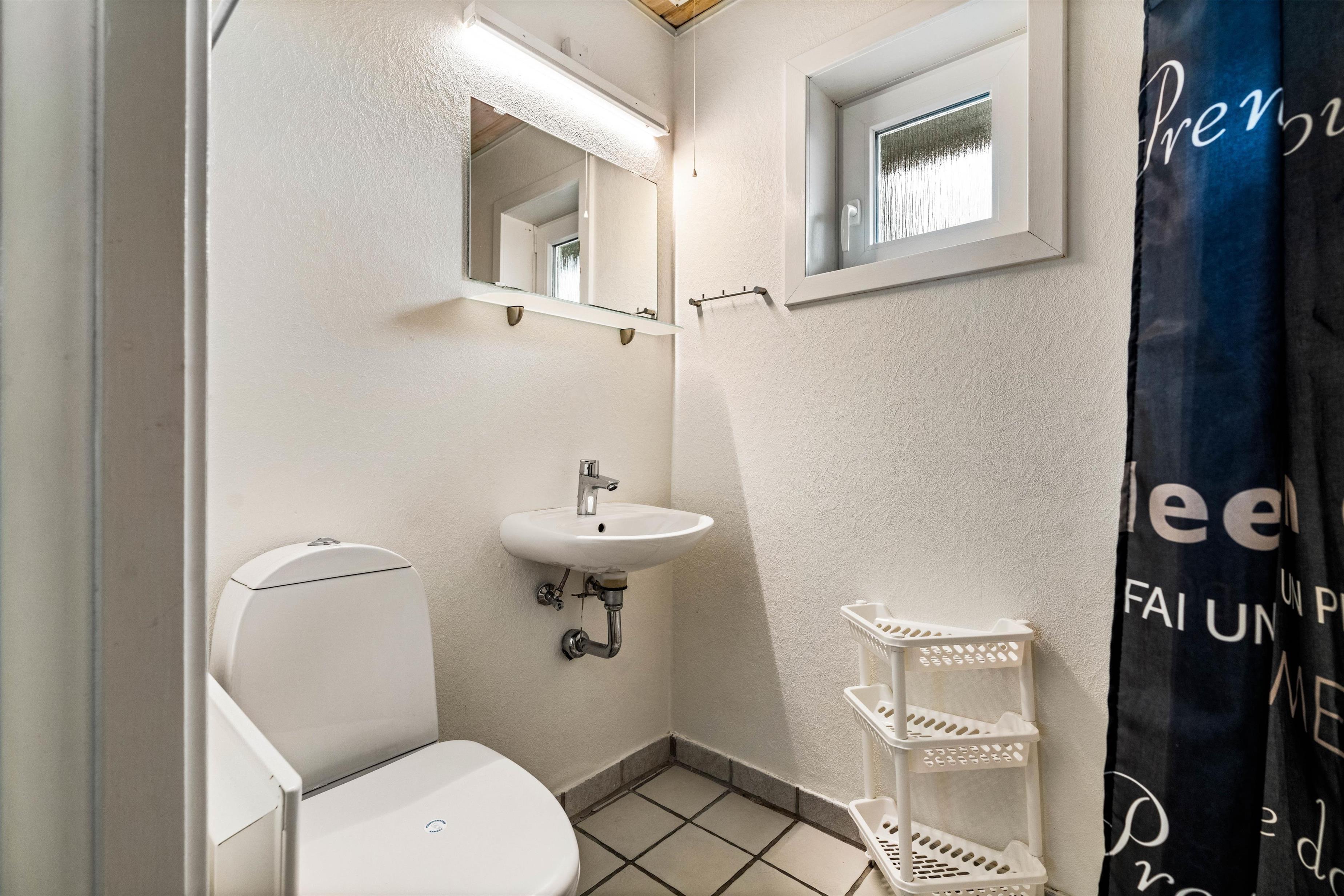 På det store badeværelse er der installeret et stort standvands spabad med plads til fire personer, så I her rigtig kan hygge jer eller lade børnene boltre sig i de varme bobler. Sommerhuset har også en god sauna, så der er rig lejlighed til at forkæle jer selv og slappe helt af.