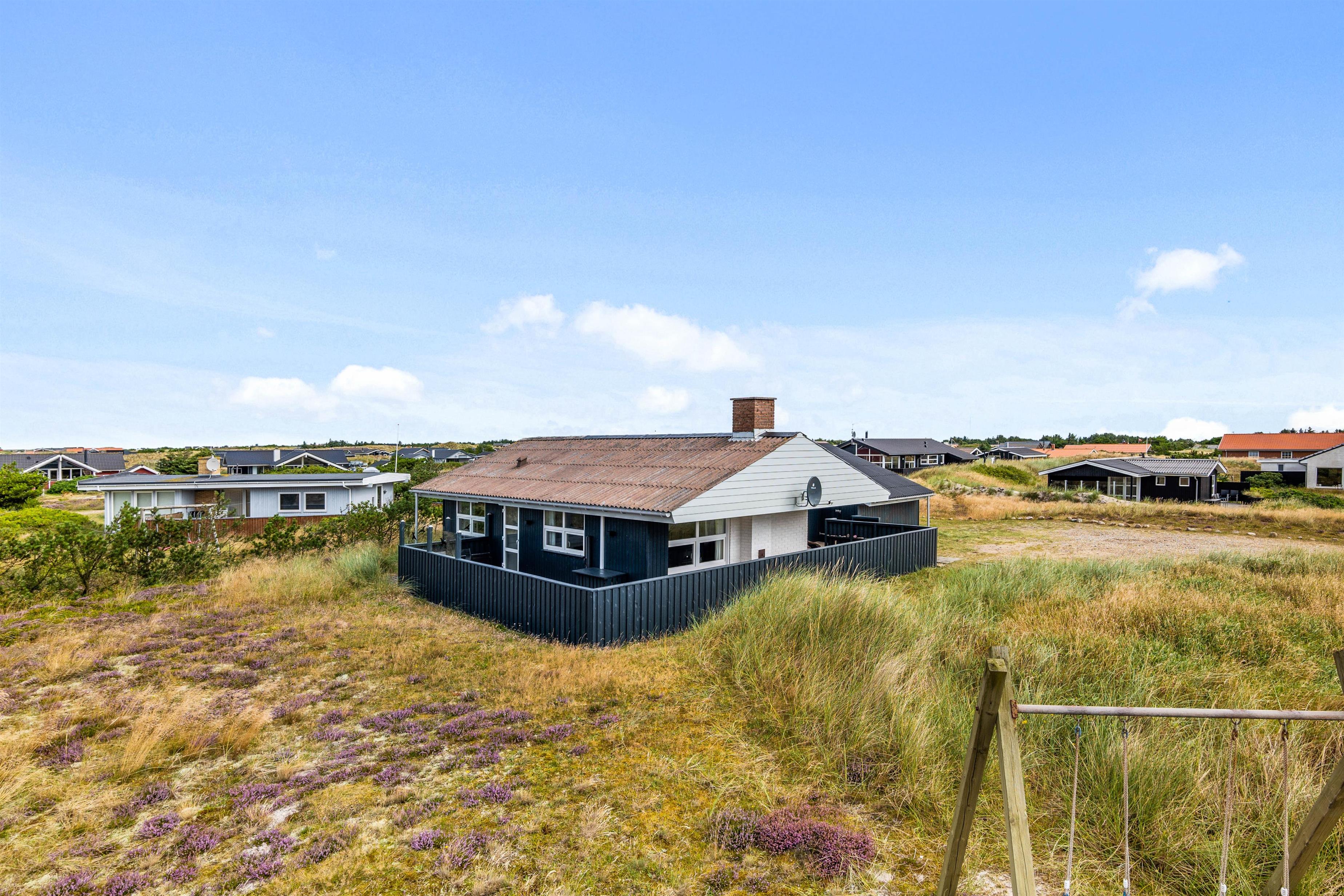 Sommerhuset ligger på en dejlig naturgrund i Bjerregård. Og herfra er der kun ca. 450 meter til stranden, som er det perfekte sted til lange gåture med hunden, der helt sikkert vil elske at tumle rundt her.