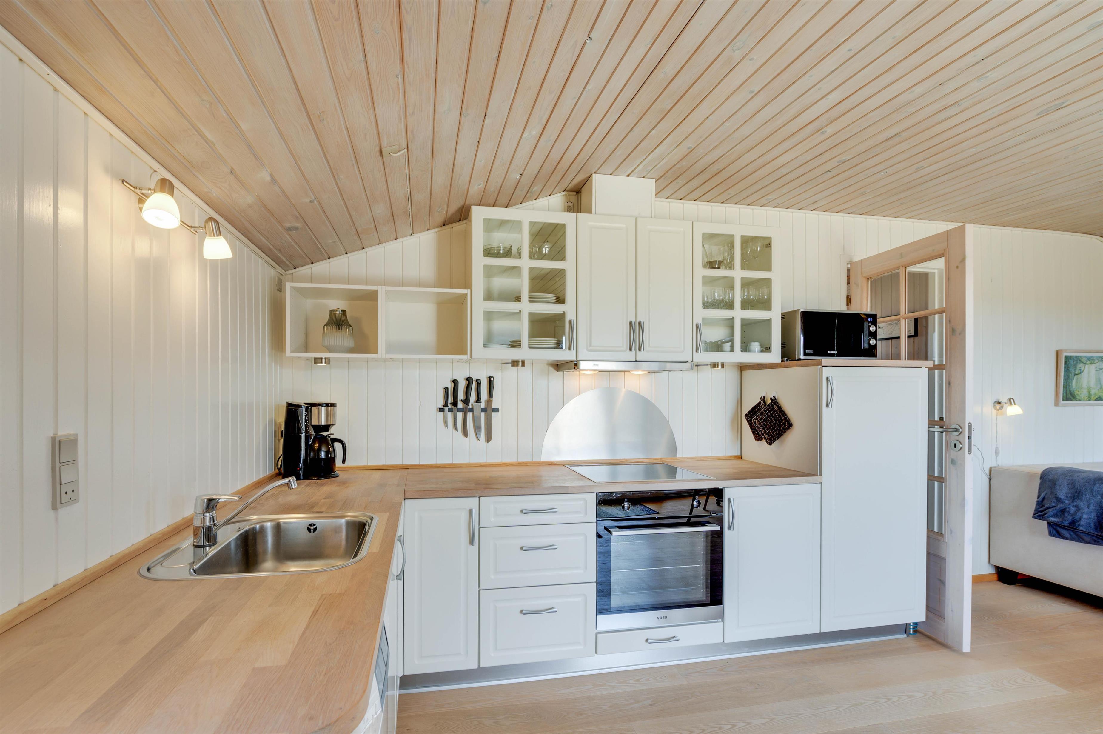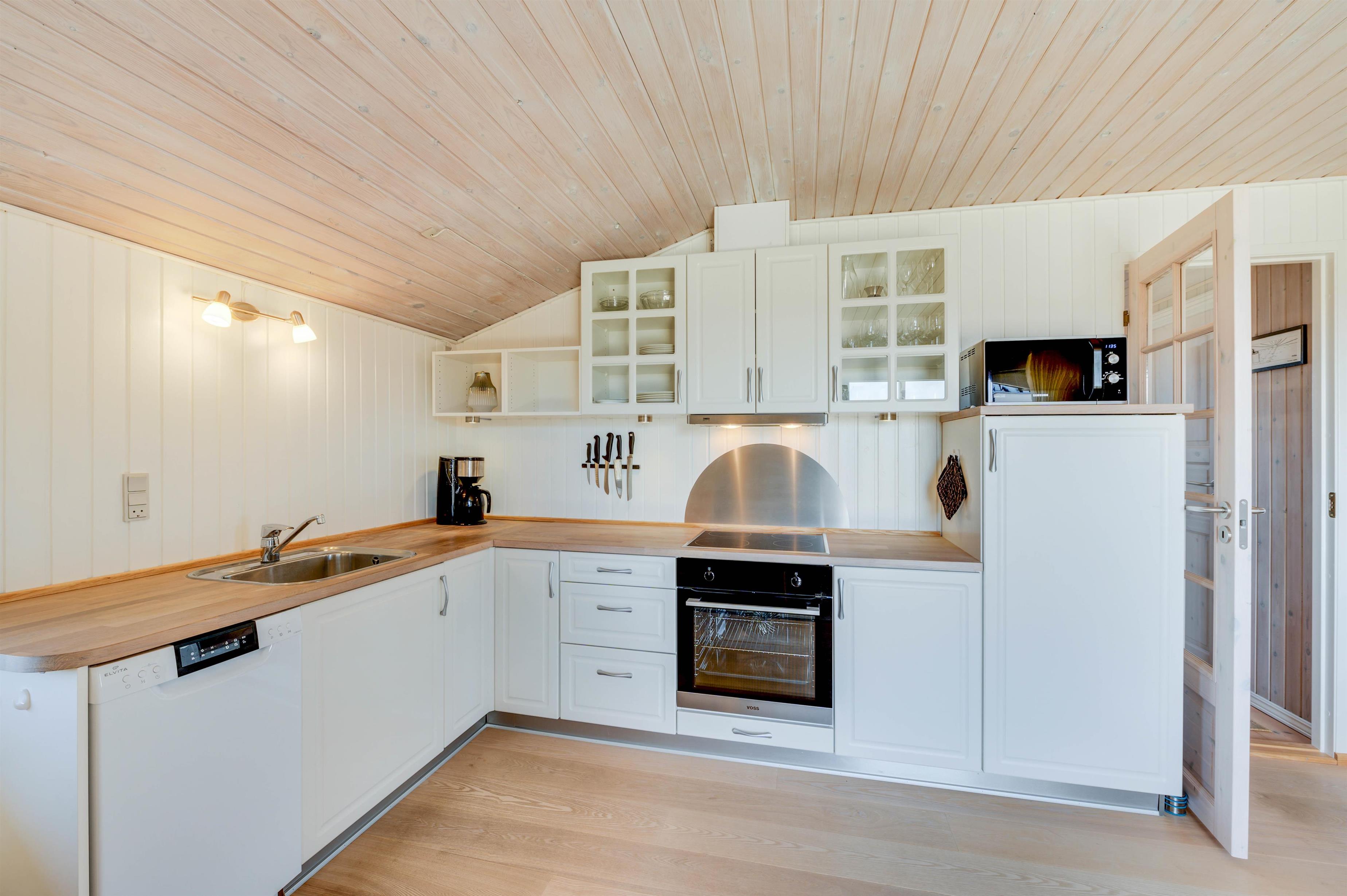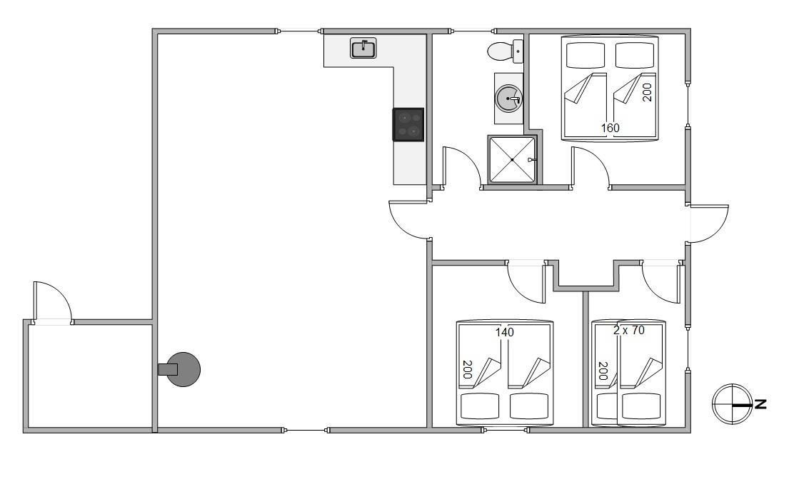 I sommerhuset er der frit valg mellem sovepladserne. Her er nemlig 3 soverum, hvoraf der er dobbeltsenge på 2 af dem. Har I børnene med på ferien, kan de i stedet sove på det sidste værelse, som er indrettet med en køjeseng.