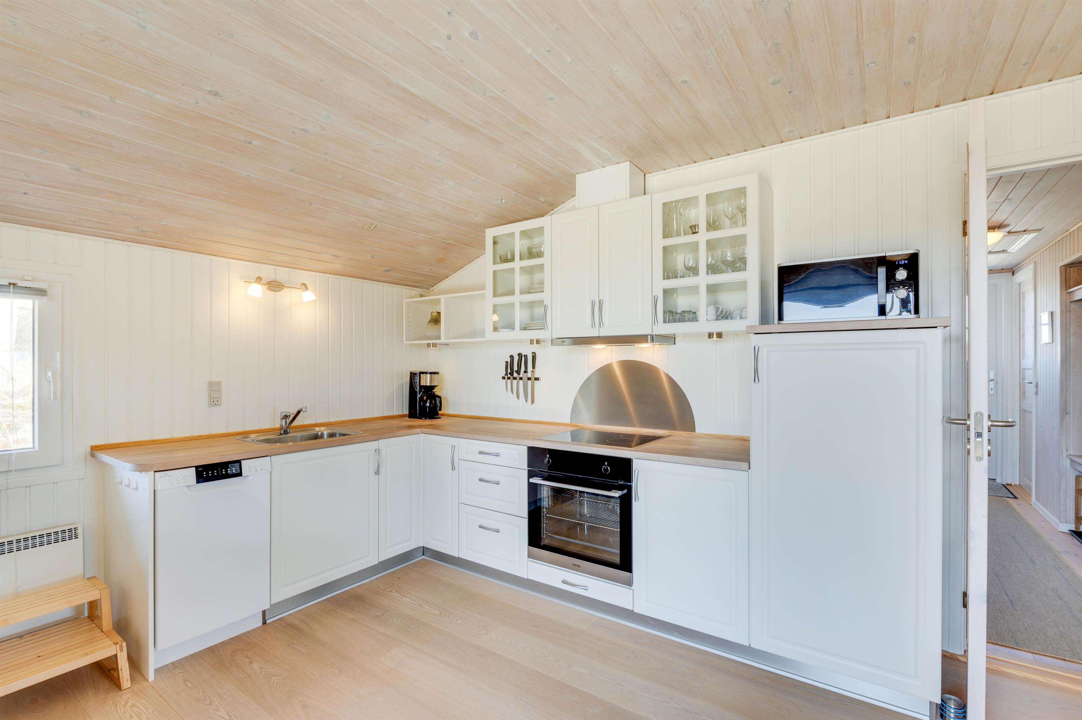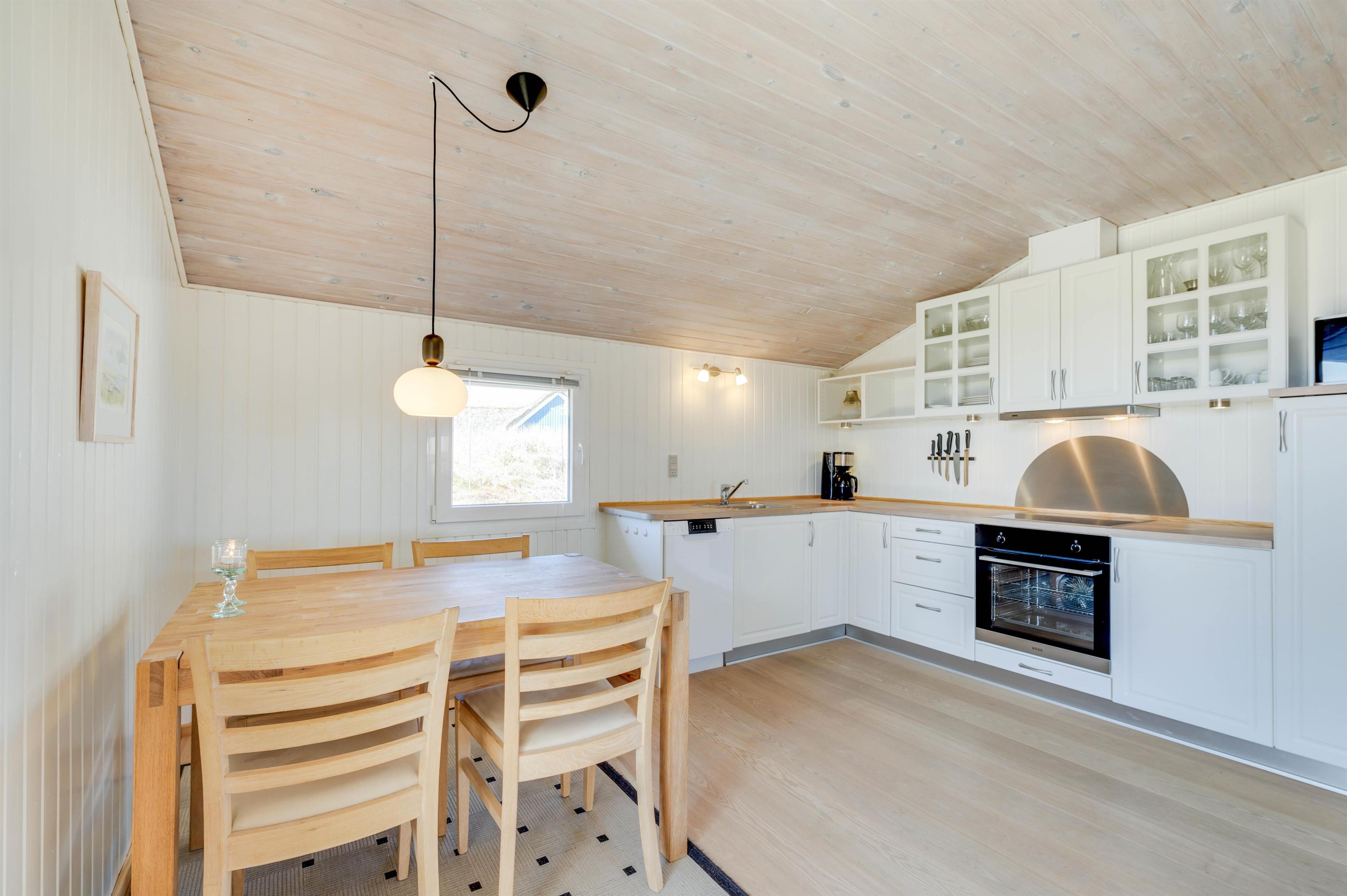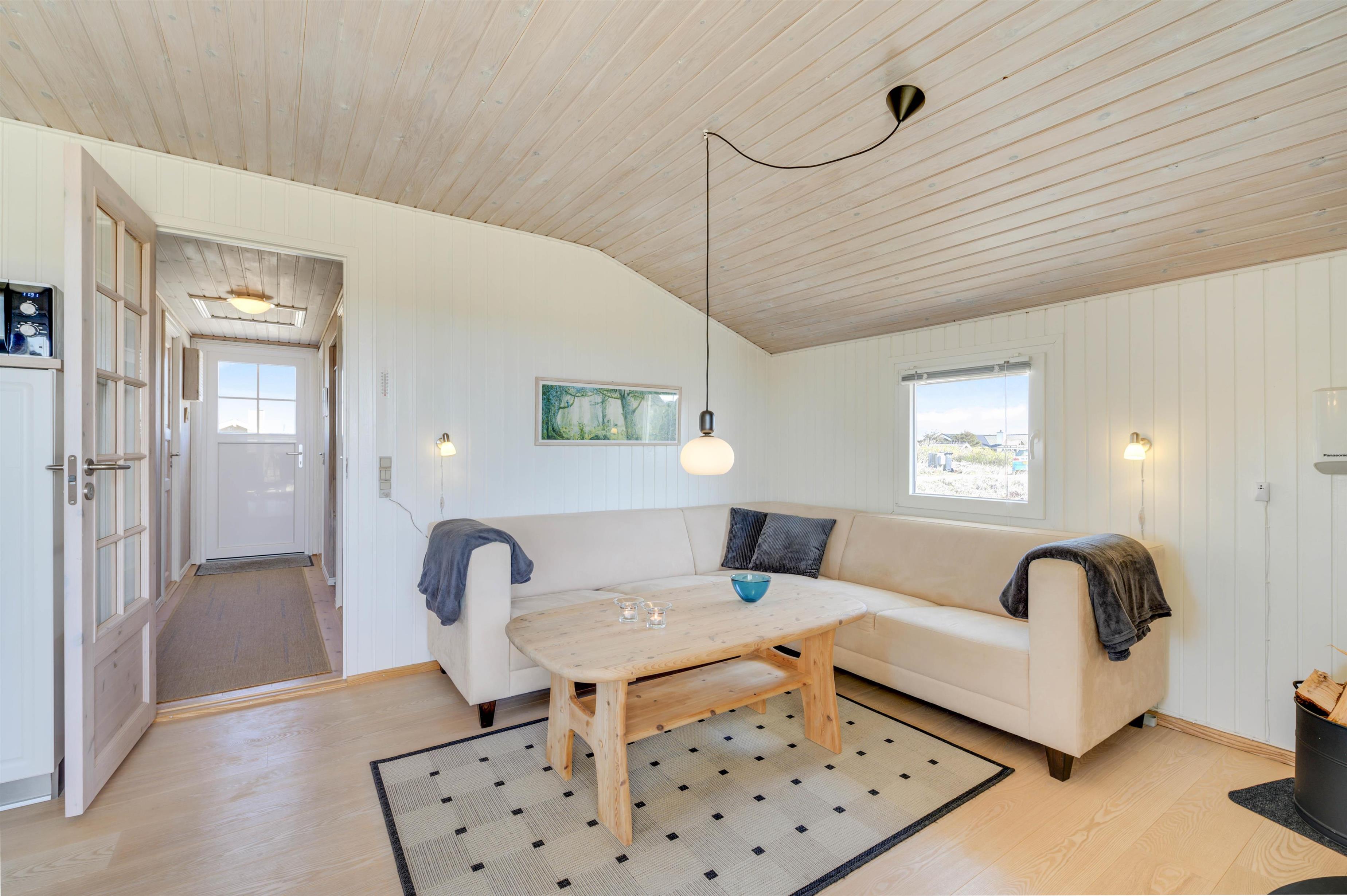 Sommerhusets samlingspunkt er stuen, som ligger i direkte forbindelse med køkkenet. Her kan I have mange hyggelige stunder med jeres nærmeste. Feriestemningen kommer helt i top, når der tændes op i brændeovnen. Den giver både varme og skaber ekstra hygge. I stuen er der en varmepumpe, som I med fordel kan bruge, og på badeværelset er der gulvvarme.