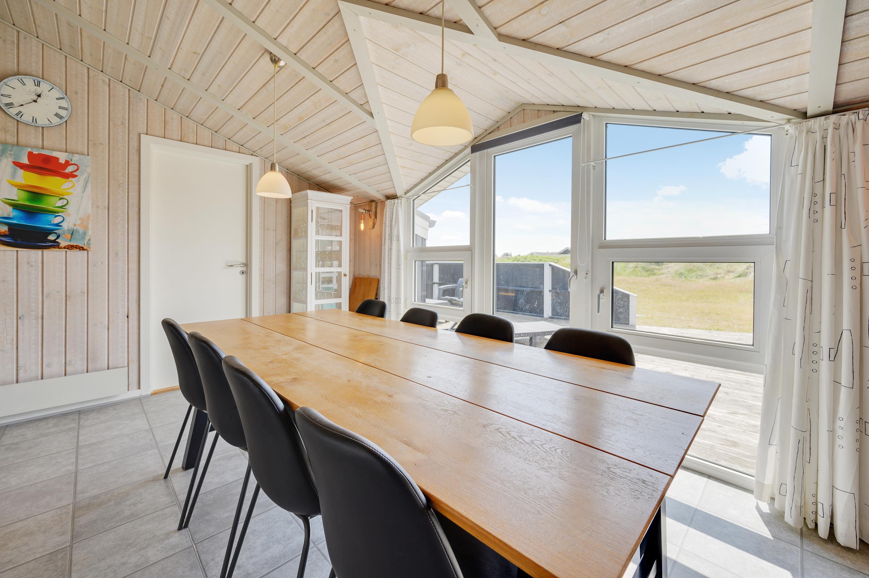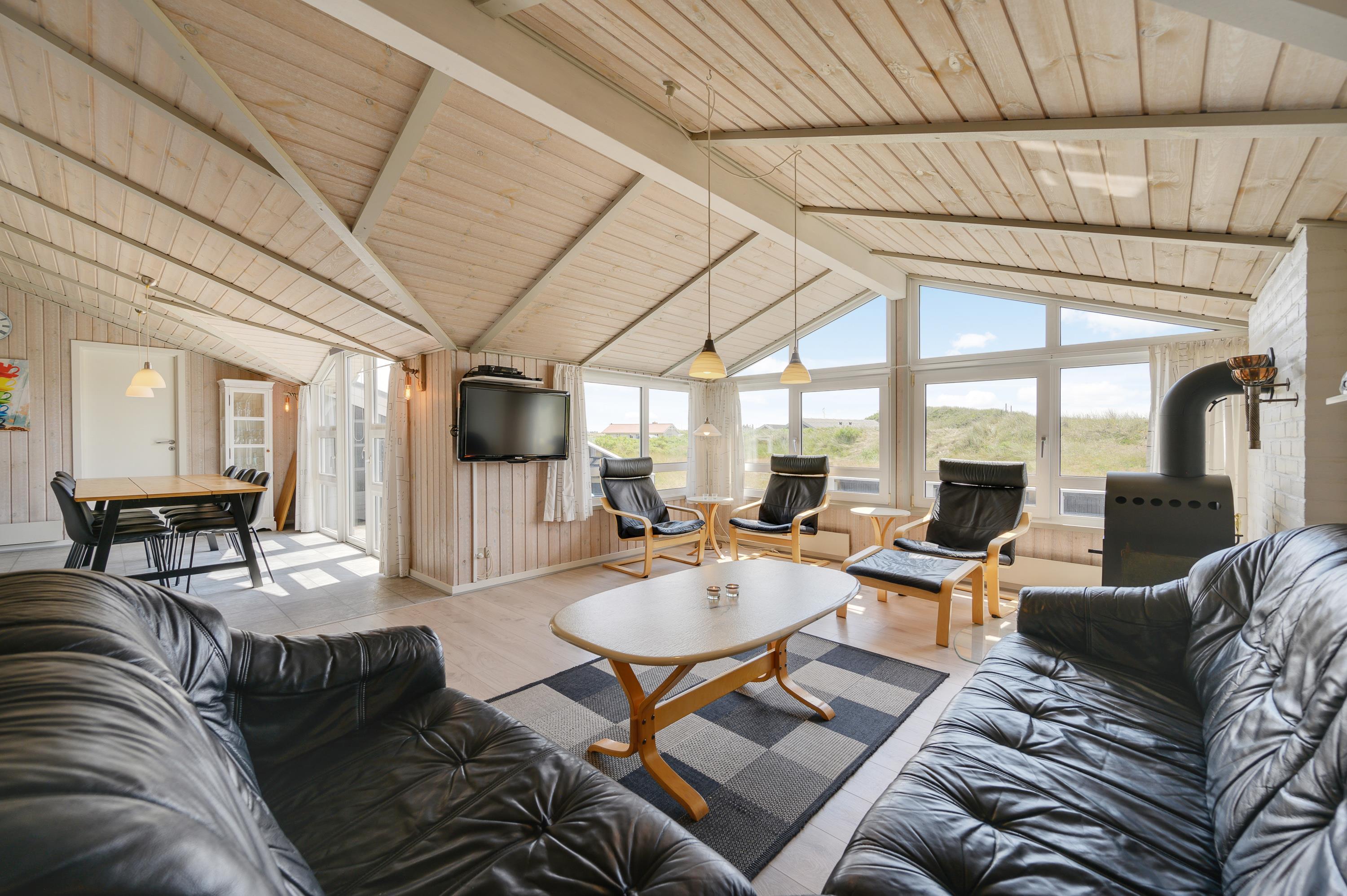 Sommerhuset ligger blot 200 meter fra Vesterhavet, som byder på en kilometerlang sandstrand. Her kan hele familien slappe af og nyde dagen til lyden af de brusende bølger.