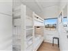 Alle opholdsrum er beklædt med hvidmalede paneler på vægge og loft samt synlige bjælker. Gulvene er belagt med lyst trælaminat, dog er badeværelset belagt med klinker og fliser. I forbindelse med badeværelset er en rummelig sauna samt vaskemaskine og tørretumbler. Til opvarmning er blandt andet en energibesparende varmepumpe.
