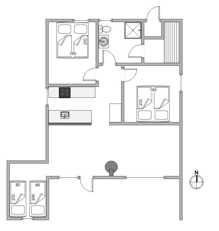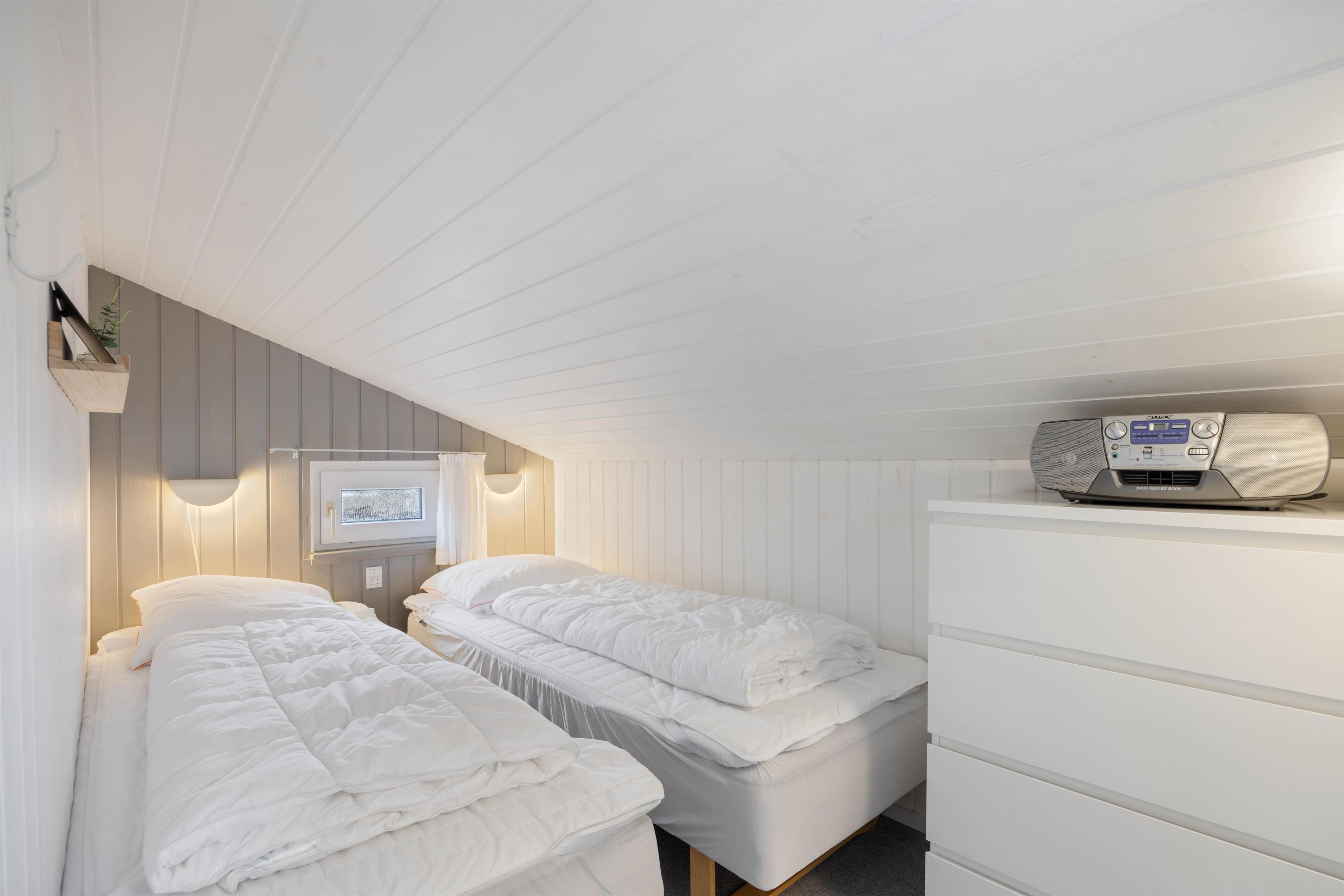 Feriehuset fremstår lyst og indbydende. Her er plads til op til 5 personer, som kan nyde en dejlig ferie på vestkysten. De 5 sovepladser fordeler sig på 3 hyggelige soveværelser, som alle har gode boksmadrasser. På 2 af soveværelserne er der dobbeltsenge, hvor der kan samles energi til morgendagen. Det sidste soveværelse ligger i forbindelse med stuen, og her finder I 2 enkeltsenge.