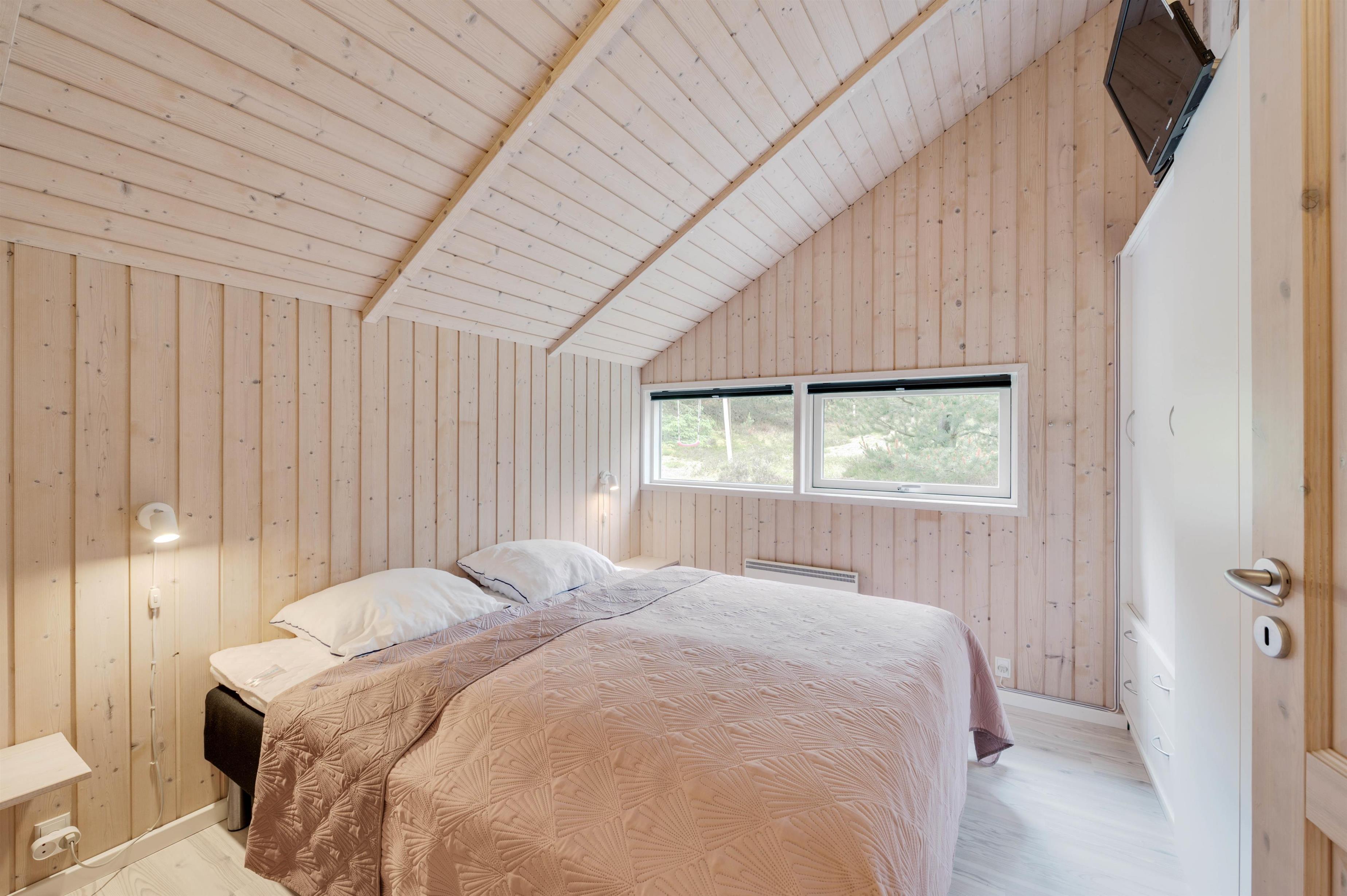 Det veludstyrede køkken ligger i åben forbindelse med den hyggelige stue. Her kan du slappe af i sofaen foran fjernsynet, mens brændeovnen varmer dig, eller hygge dig med familie og venner med et spil kort og et glas rødvin. Der er et ekstra fjernsyn med DVD i et værelse, og i sommerhuset har I også gratis trådløst internet.