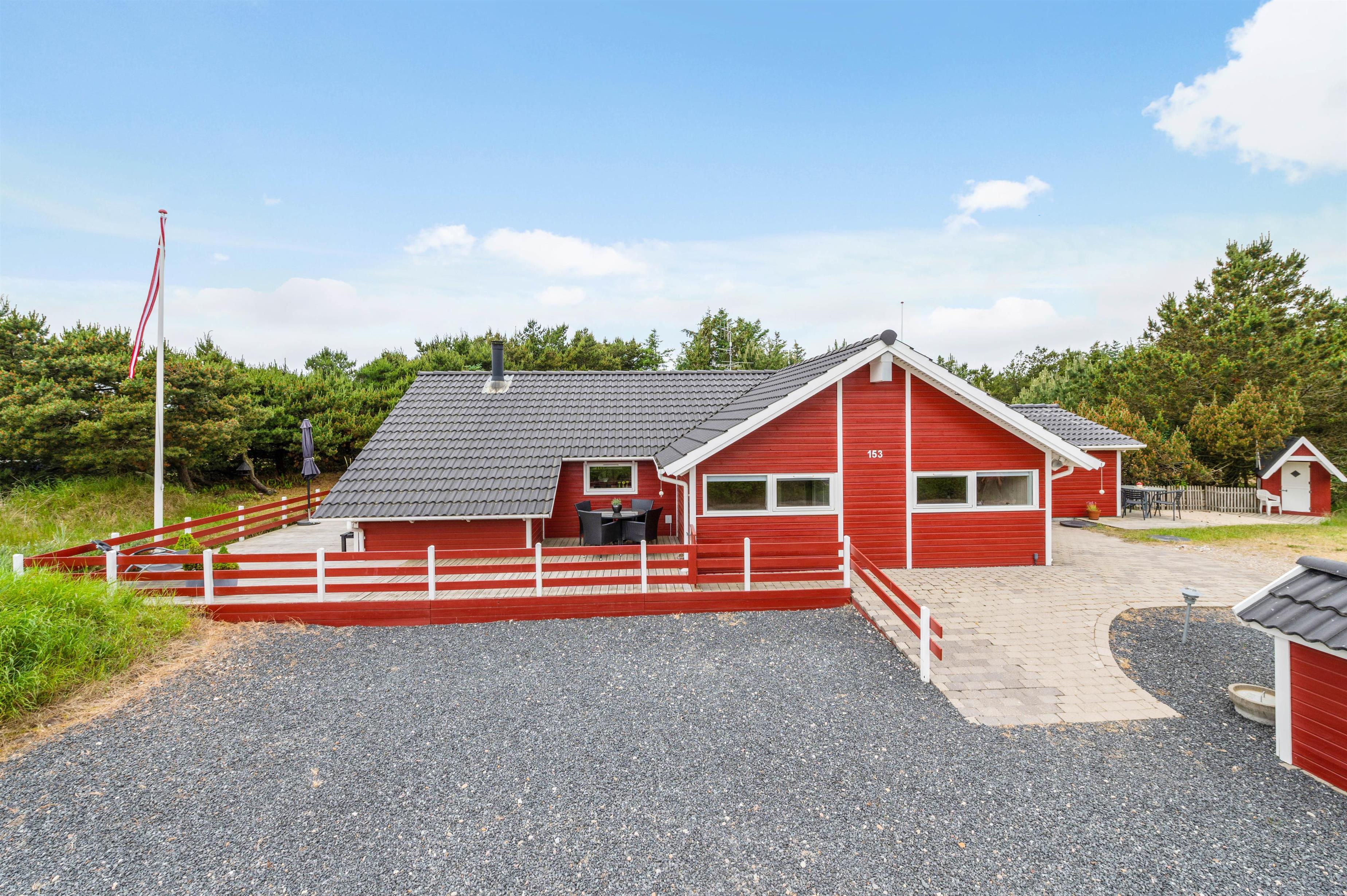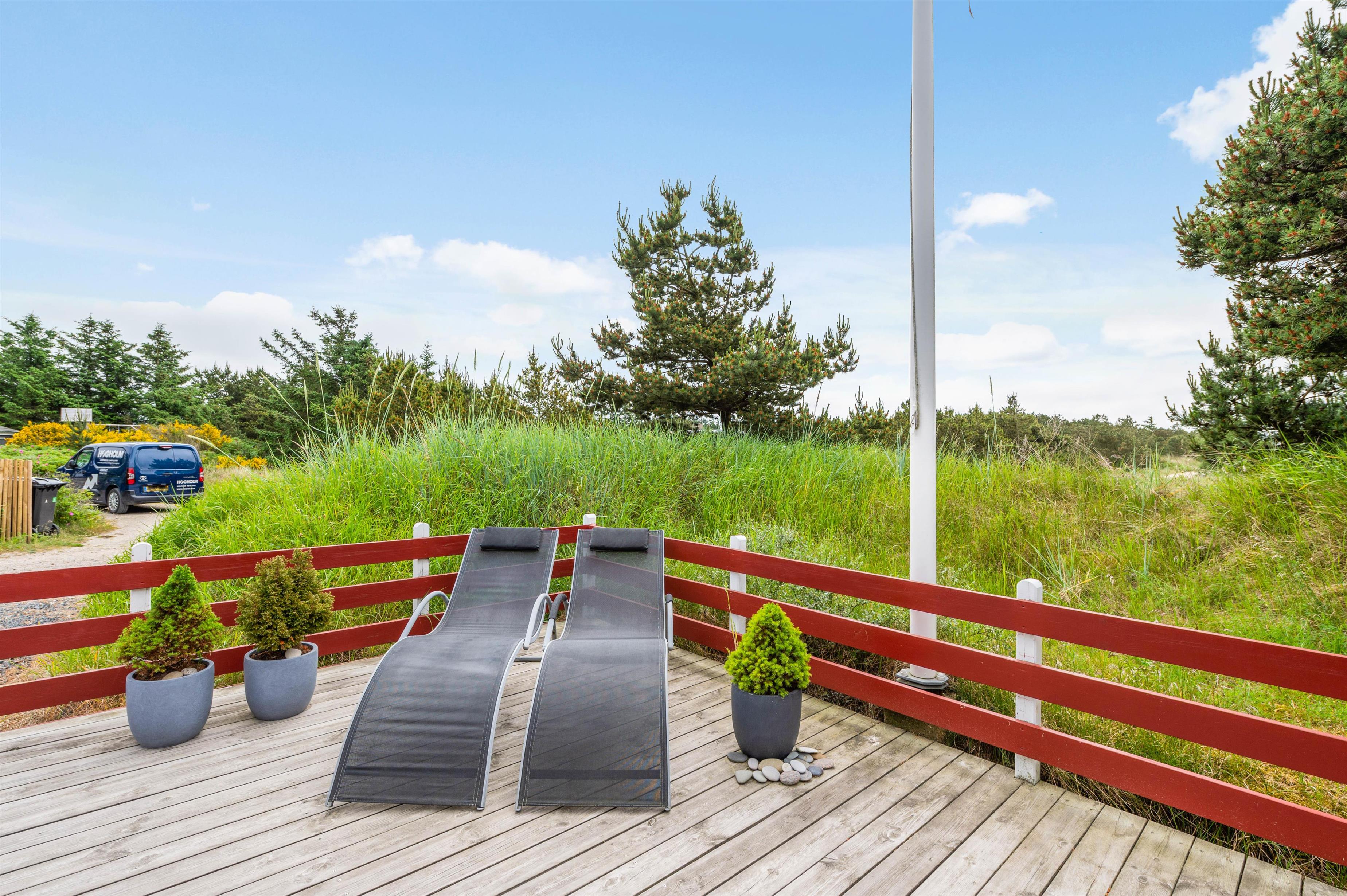 På Bjerregårdsvej 153 finder I dette skønne og indbydende sommerhus beliggende på en fin klitgrund med 799 meter til Vesterhavet. Sommerhuset er omgivet af gode terrasser, så du altid finder en læfyldt plet. Feriehuset er opdelt i 2 soveafdelinger, hver med eget badeværelse – perfekt hvis I er 2 familier, der rejser sammen.