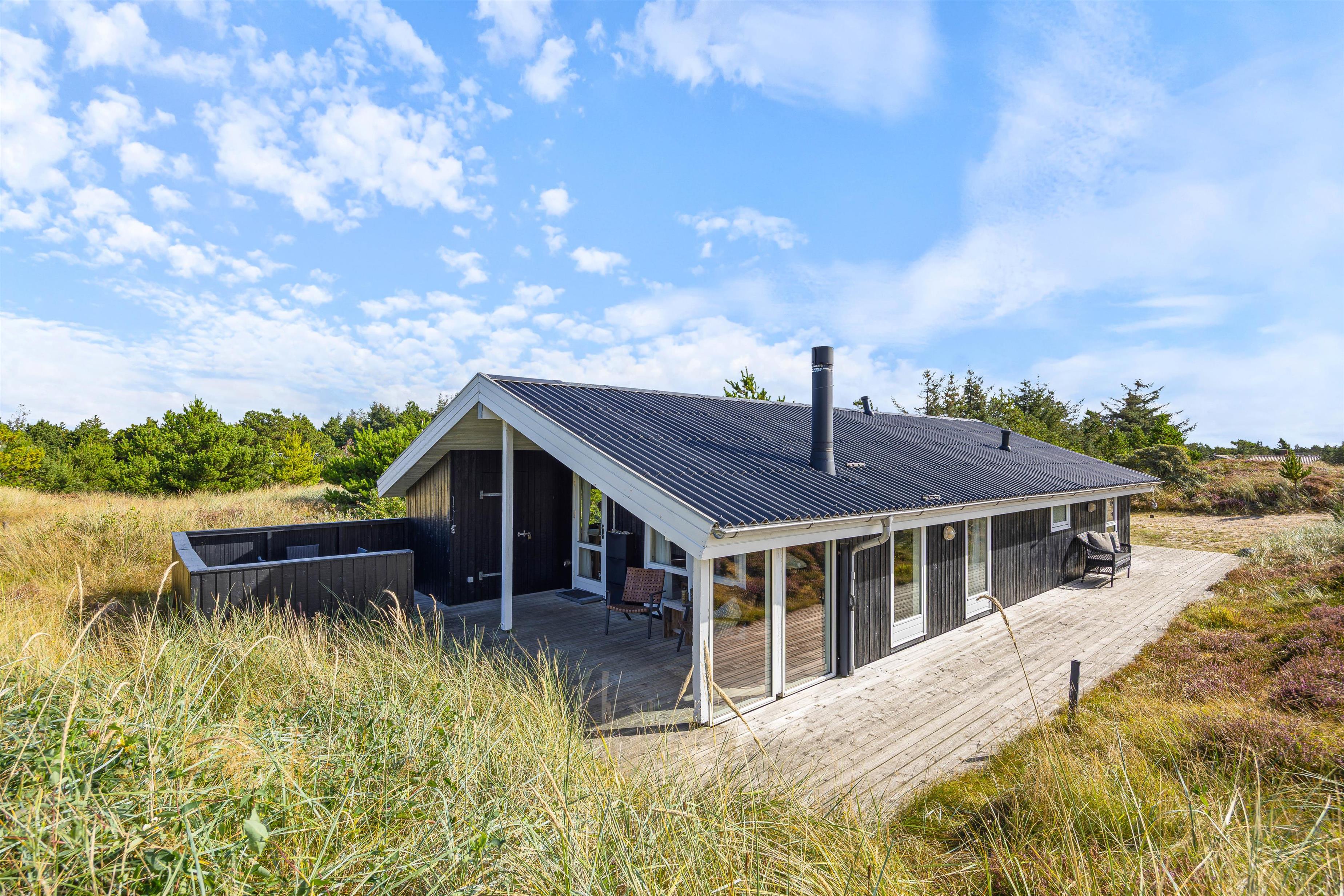 Beliggende i det smukke ferieområde Bjerregård finder du dette hyggelige og velindrettede sommerhus på Bjerregårdsvej 143. Det 95 kvadratmeter store sommerhus ligger for enden af en blind vej, hyggeligt indlejret i små klitter, og både havet og indkøbsmuligheder ligger kun 700 meter herfra.