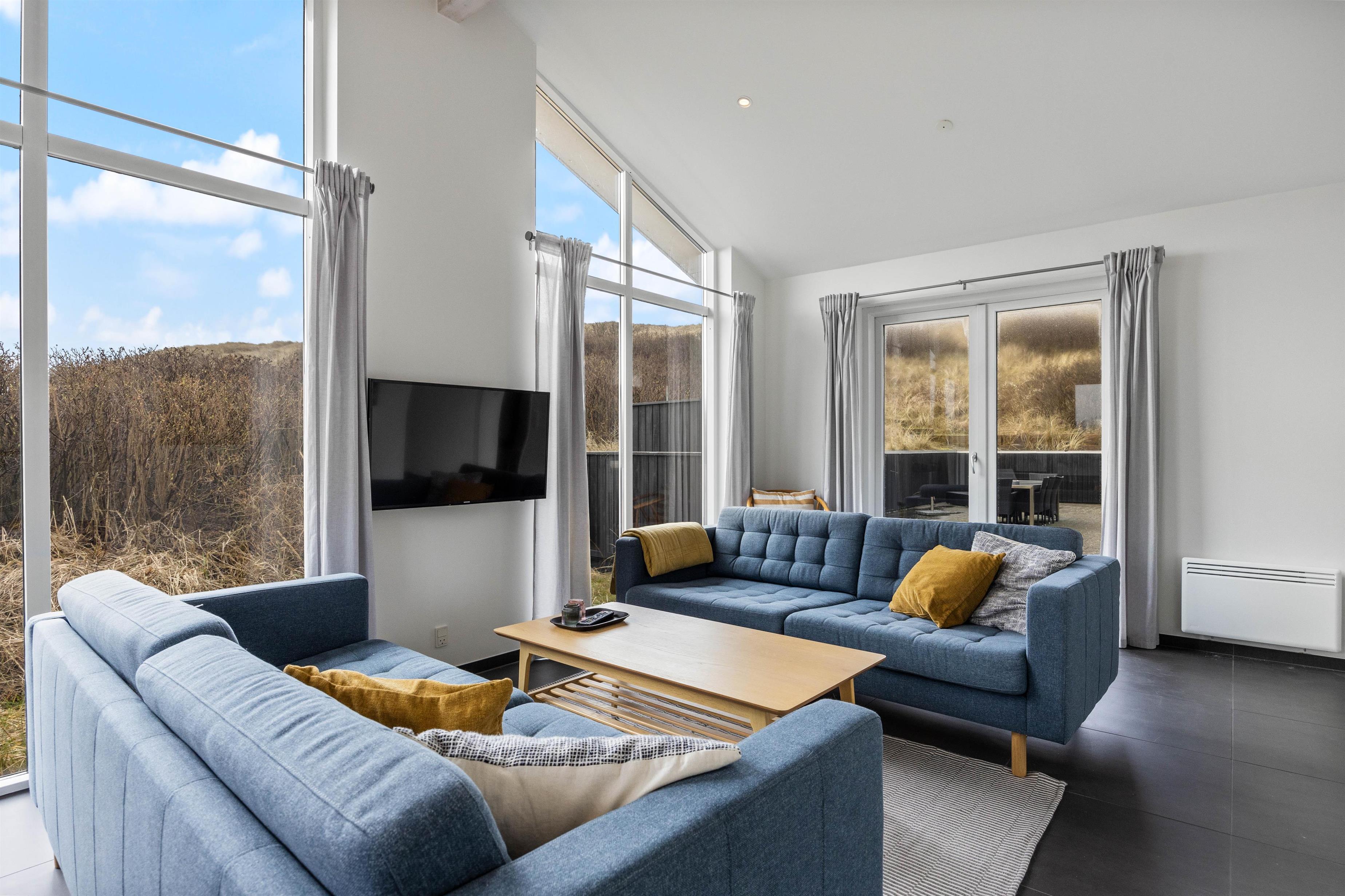 I tilbygningen, som er placeret mod sydøst, finder du sommerhusets anden stue, hvor der er klinkegulv med gulvvarme og endnu et fladskærms-TV. Dette sommerhus har desuden gratis trådløst internet, vaskemaskine og tørretumbler.