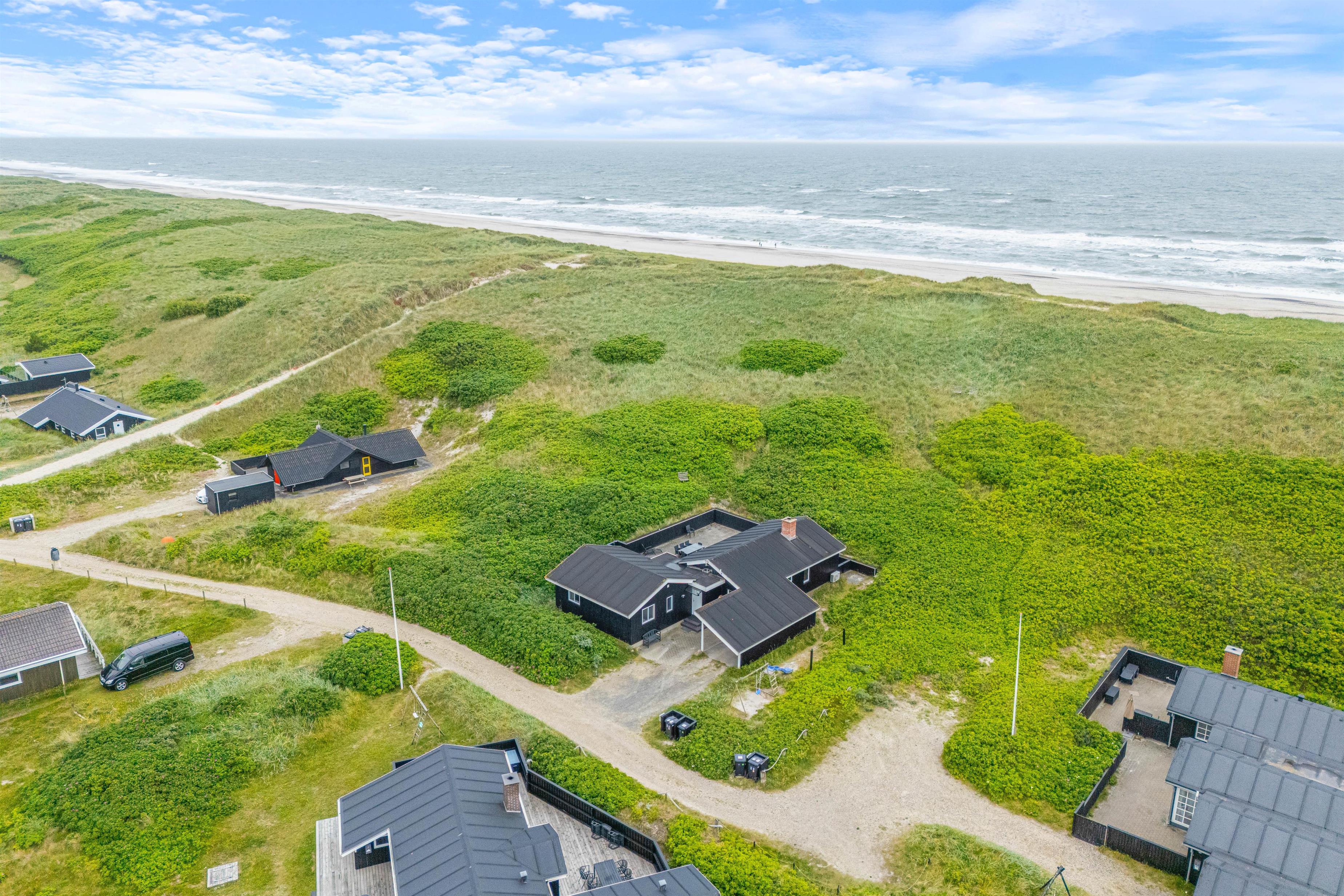 Dette indbydende sommerhus ligger skønt i yderste klitrække kun 50 meter fra havet, og er en hel unik mulighed for en ferie helt tæt de lange smukke sandstrande. Der hører en rummelig, helt lukket terrasse til sommerhuset, placeret mod sydvest - og derfor anvendelig det meste af dagen.