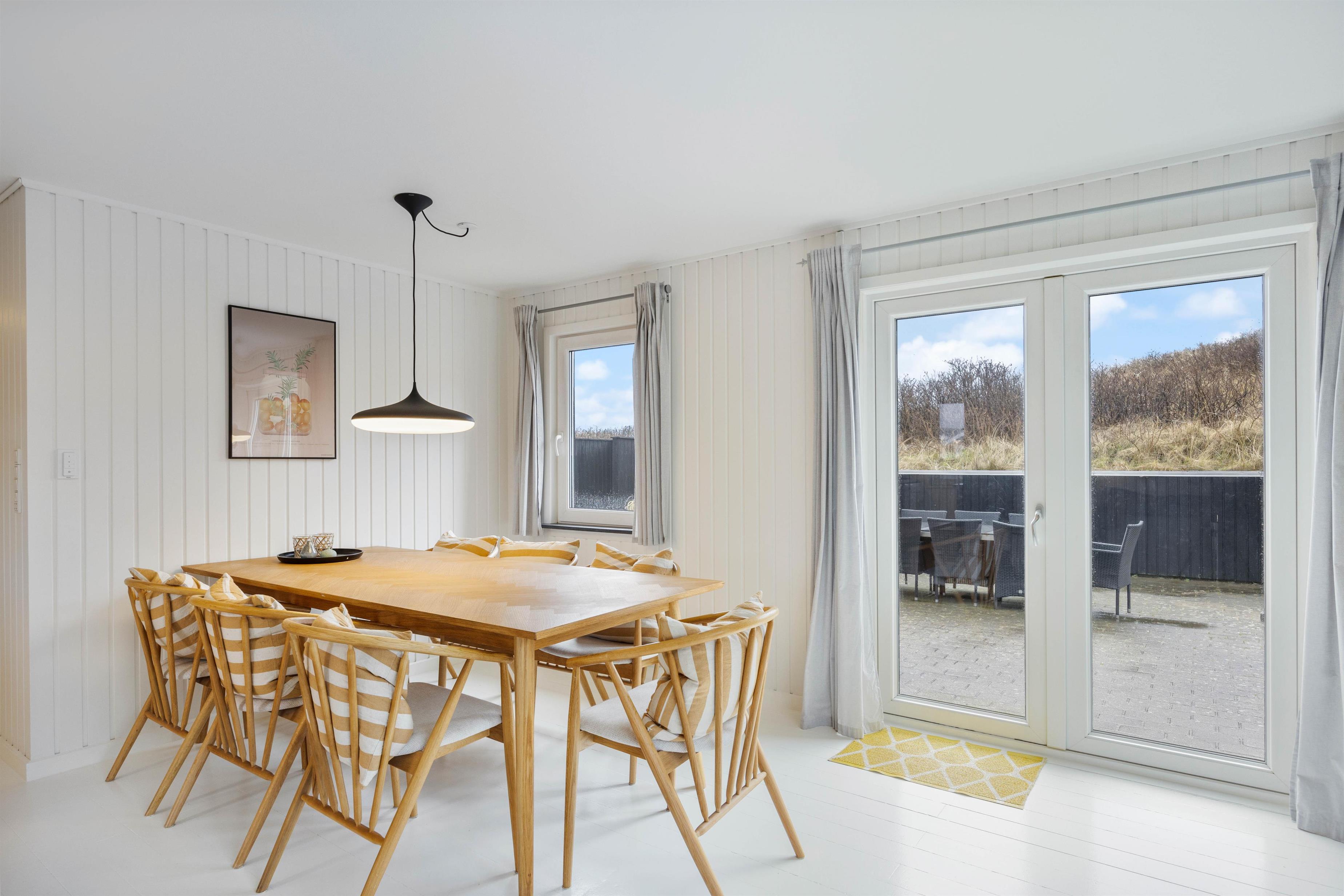 Et skønt feriehus med lys og venlig indretning finder I her på Julianevej 192. Sommerhuset har en fantastisk beliggenhed ved foden af yderste klitrække og med kun 50 meter til stranden. I feriehusets tilbygning finder I et stort soveværelse med tilhørende badeværelse med sauna samt en ekstra opholdsstue med dejligt lysindfald. Det er tilladt at medbringe op til 2 hunde i sommerhuset, som har en fin, lukket terrasse.