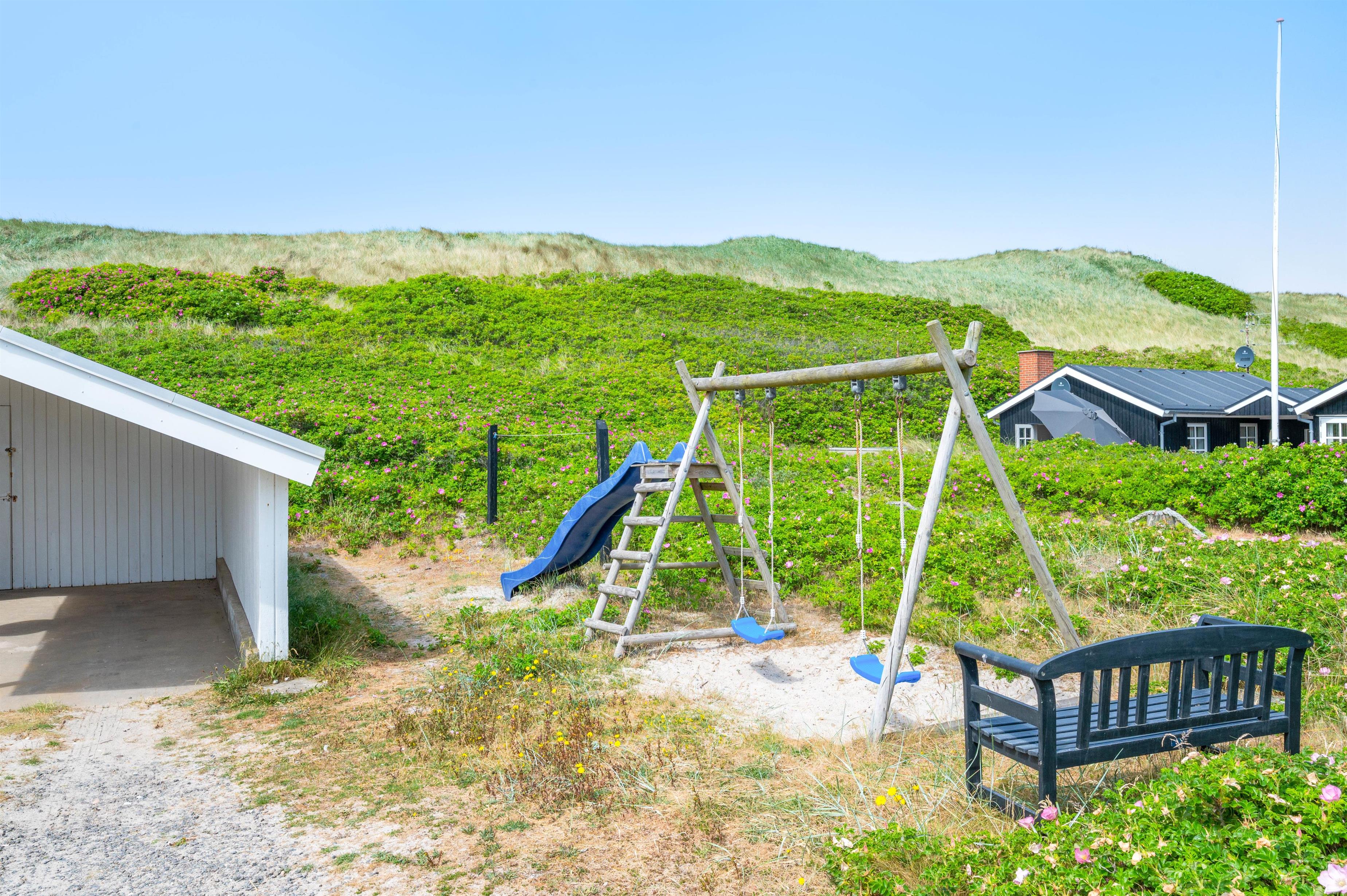 Har du børn eller hund med, er terrassen et perfekt opholdssted. På naturgrunden er endvidere en gynge og en sandkasse.