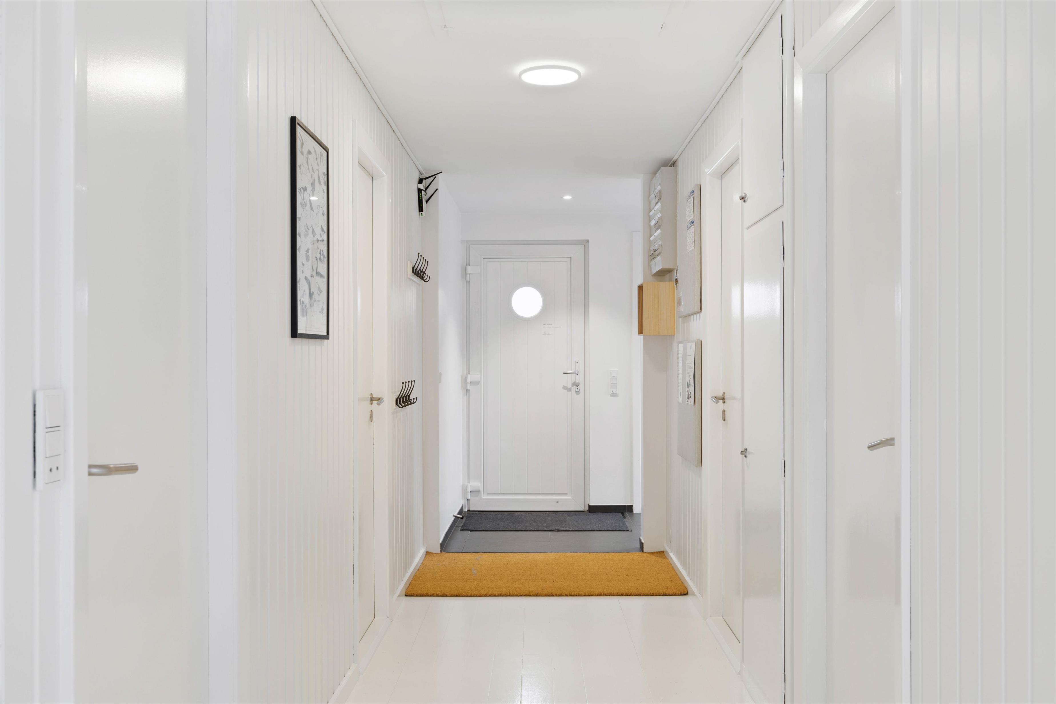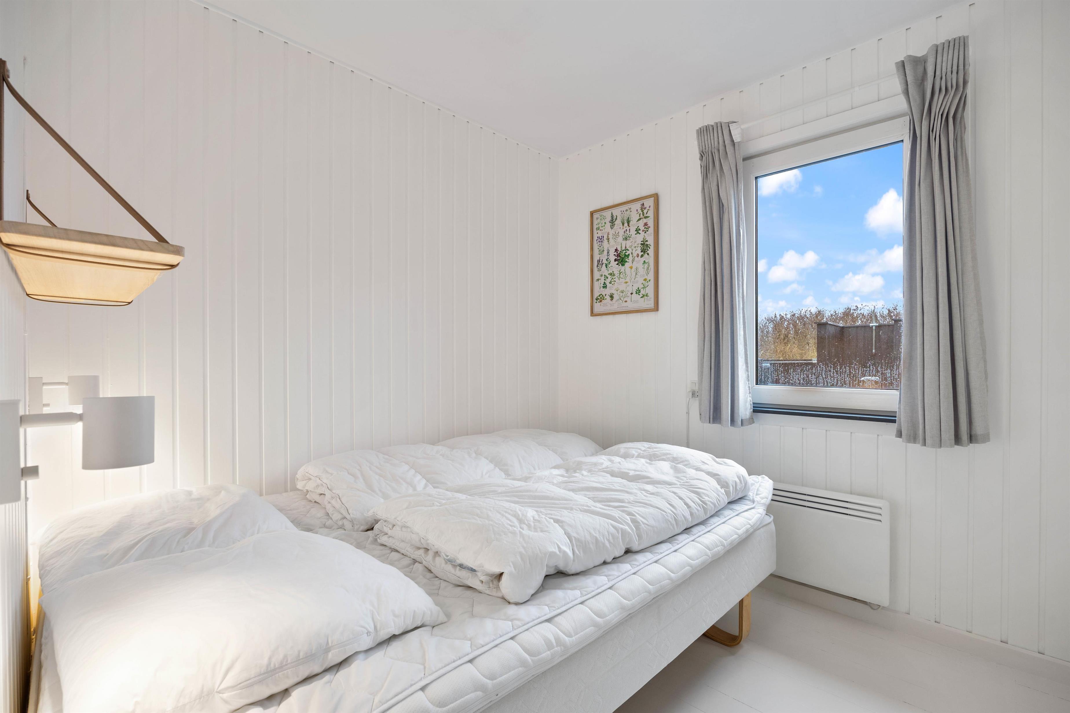 Dette skønne sommerhus på Julianevej er blevet gennemgribende renoveret i 2023, og fremstår indbydende og lækkert. Der er 4 soveværelser i sommerhuset. Et værelse med dobbeltseng, to værelser med en ¾ seng og et værelse med 2 enkeltsenge. Alle værelser har trægulve og hvidmalede vægge.