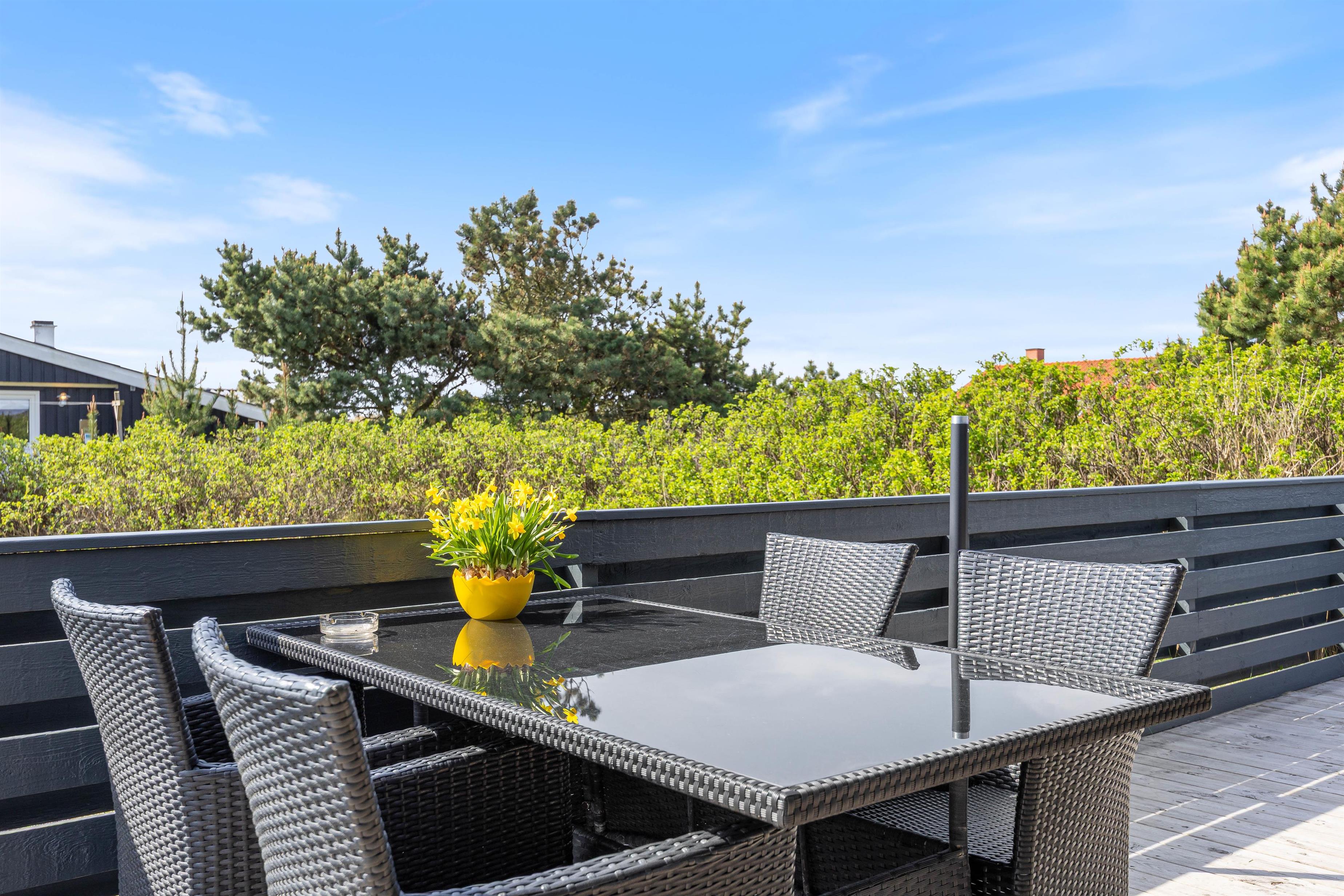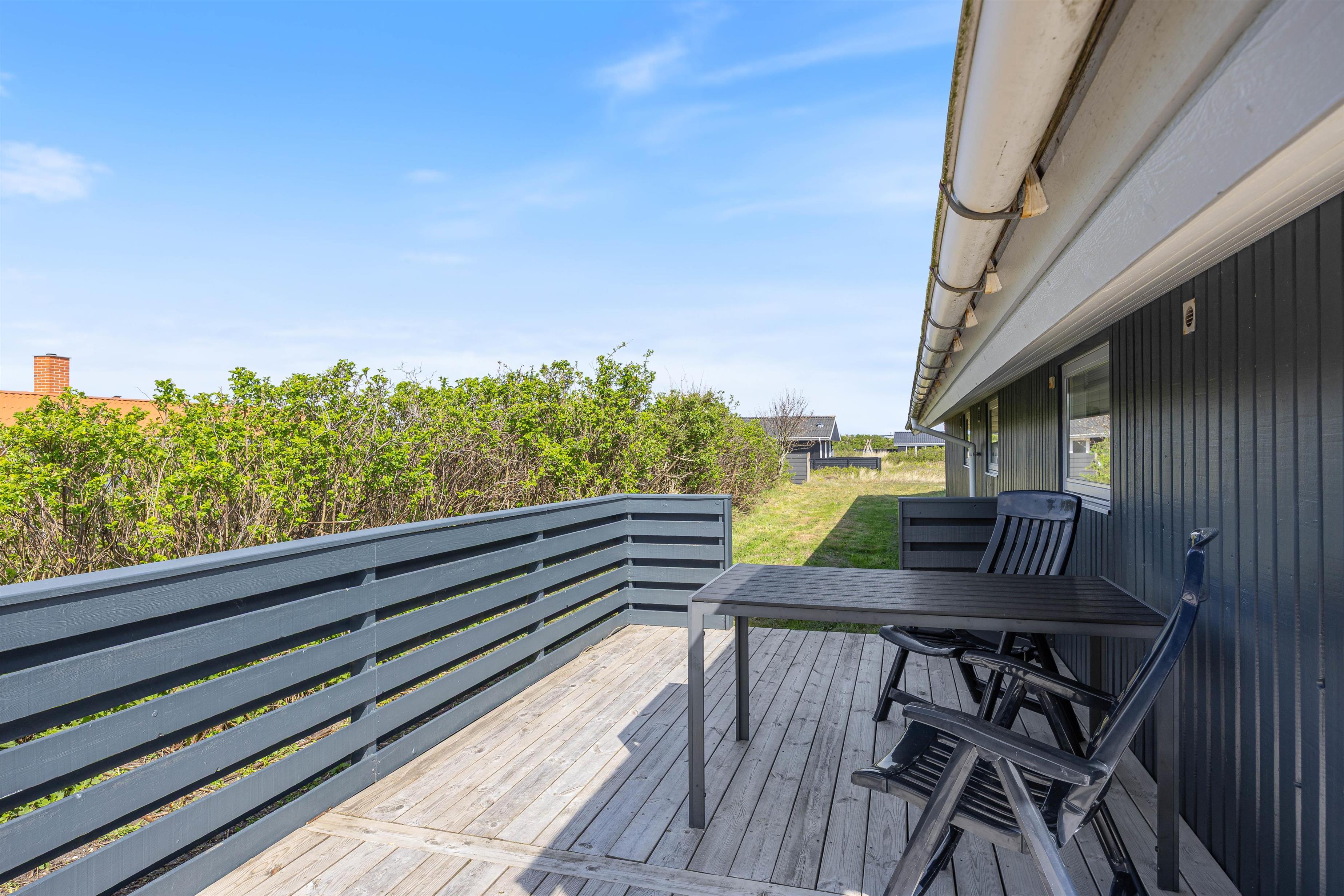 Sommerhuset er ideelt beliggende på Dortheasvej i Bjerregård. Her finder du en stor, velmøbleret, delvis overdækket og lukket terrasse, hvor du kan nyde den danske natur, grille og slappe af på varme sommerdage.