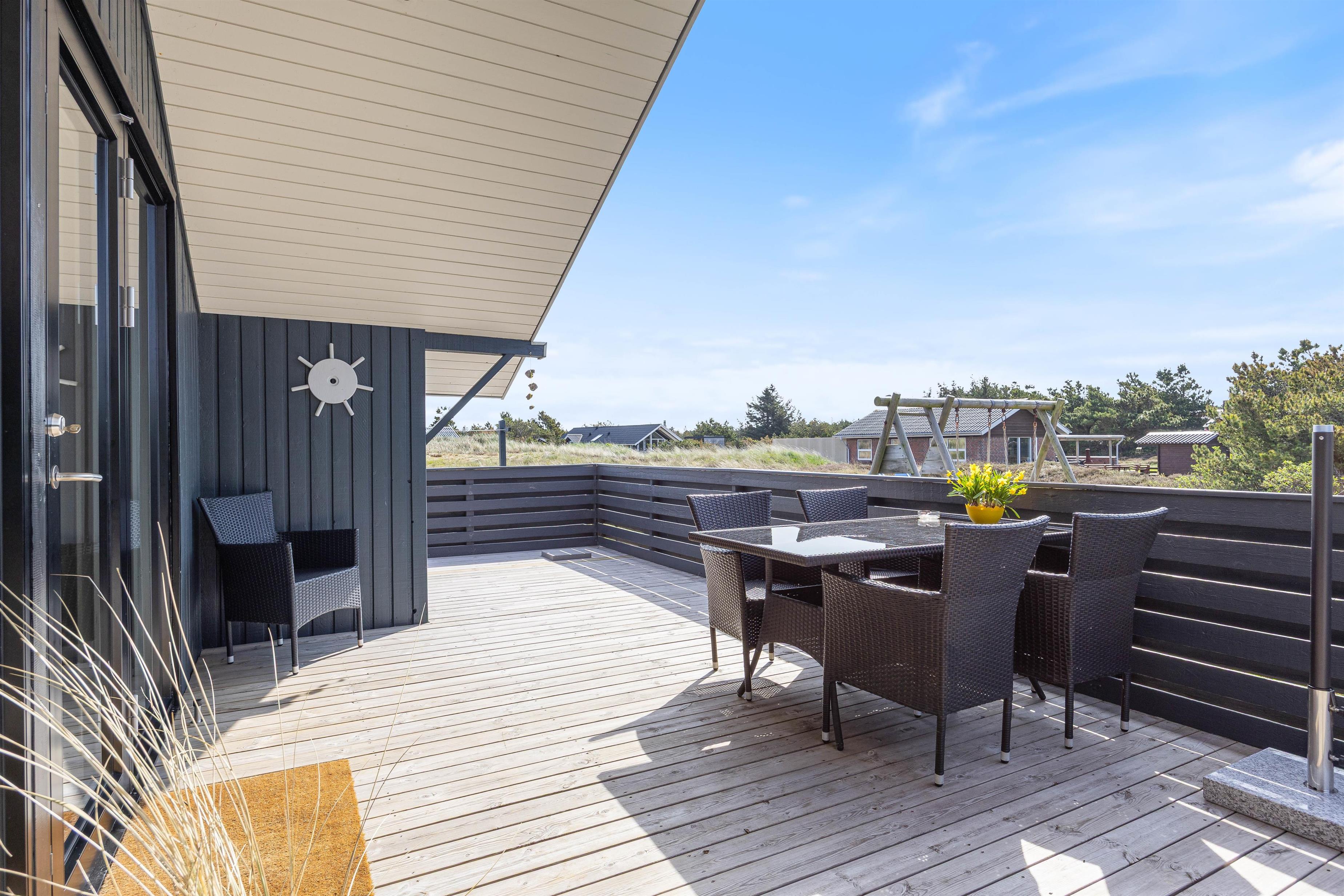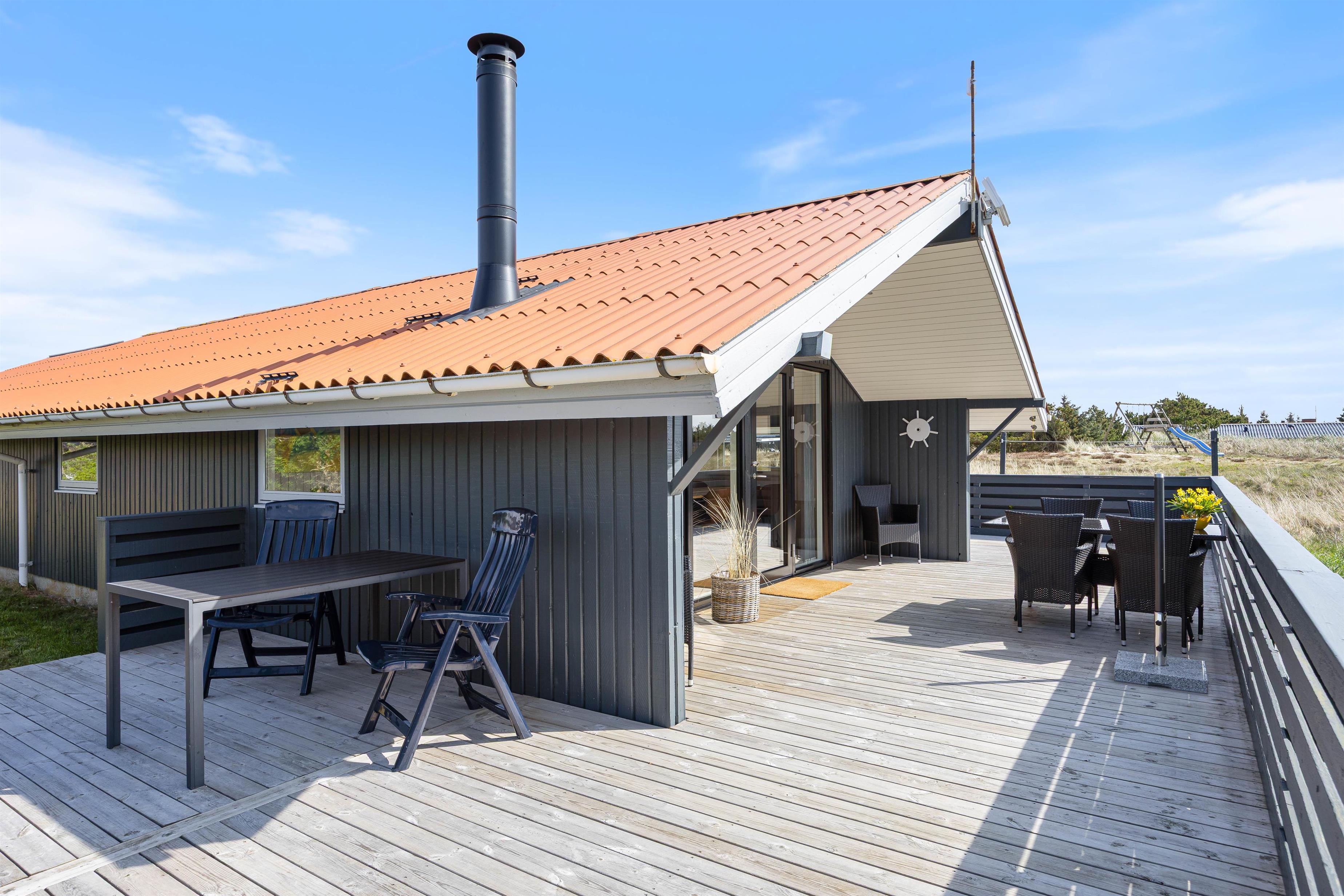 Der er også legepladser til de yngste familiemedlemmer og stranden ligger med 650 meter afstand kun få minutters gang fra sommerhuset.
