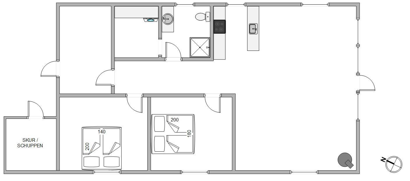 For en god nats søvn er der 2 individuelle soveværelser med en dobbeltseng i hver. Sommerhusets badeværelse er med gulvvarme og er også renoveret i 2025.