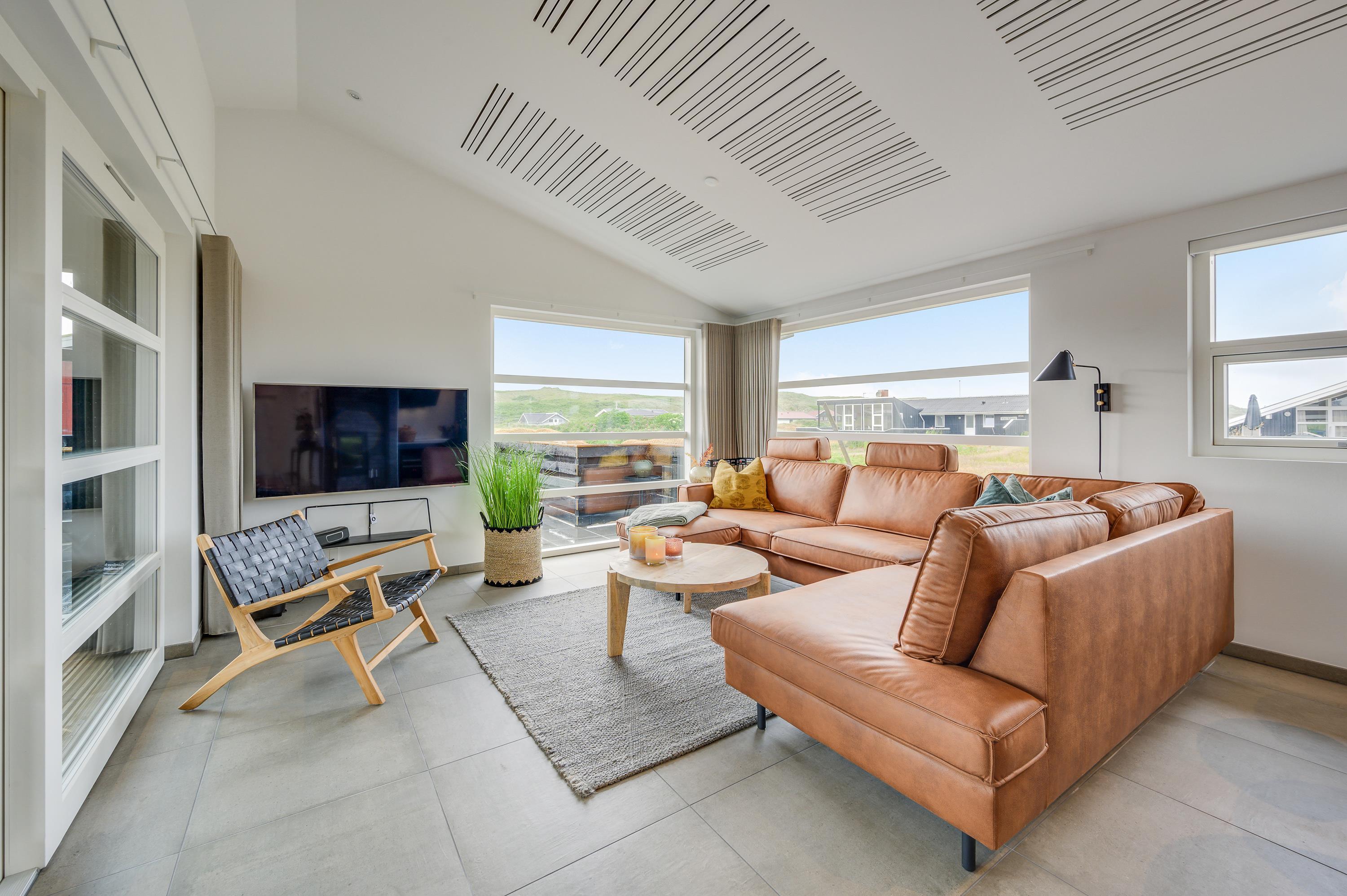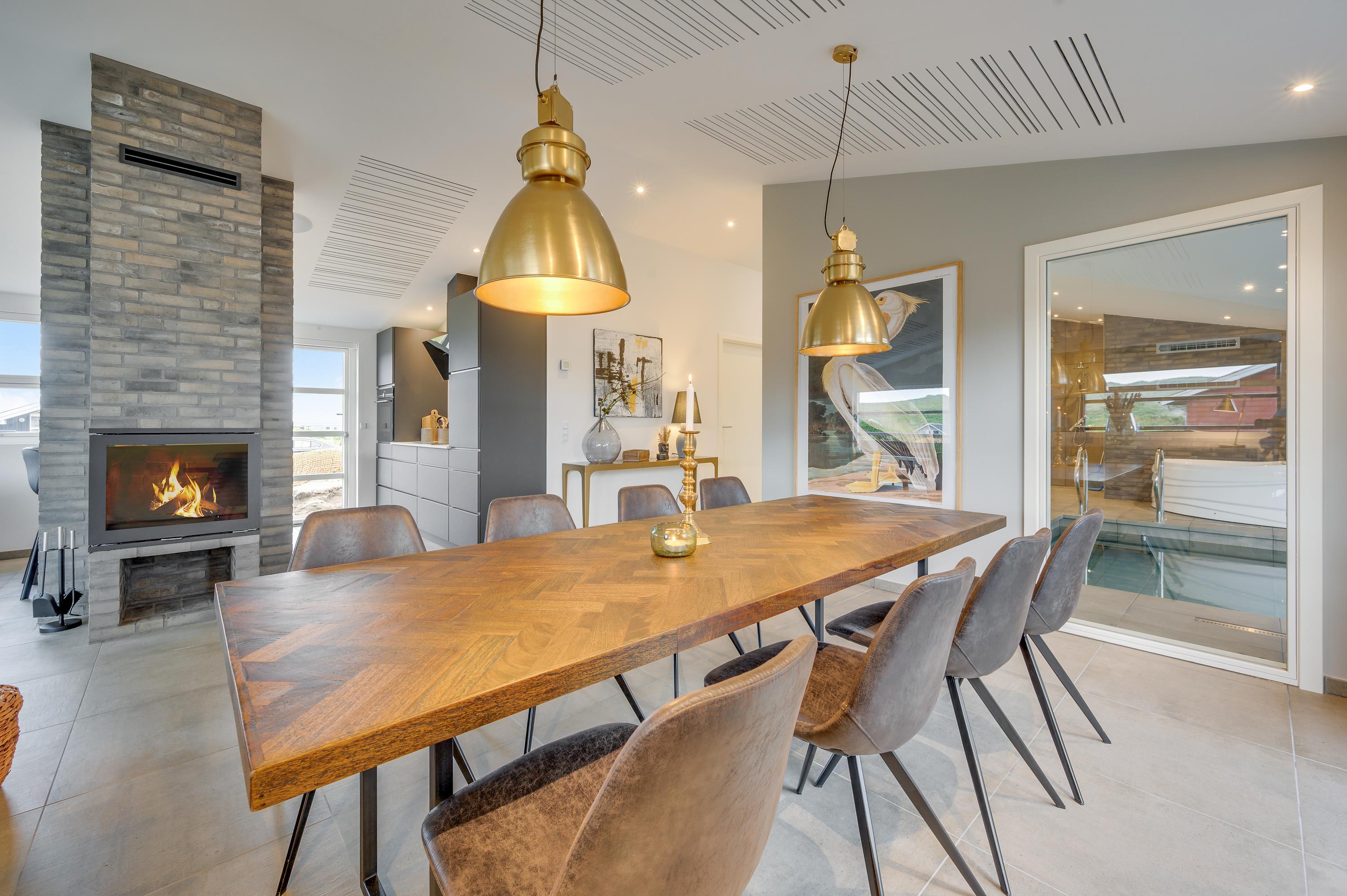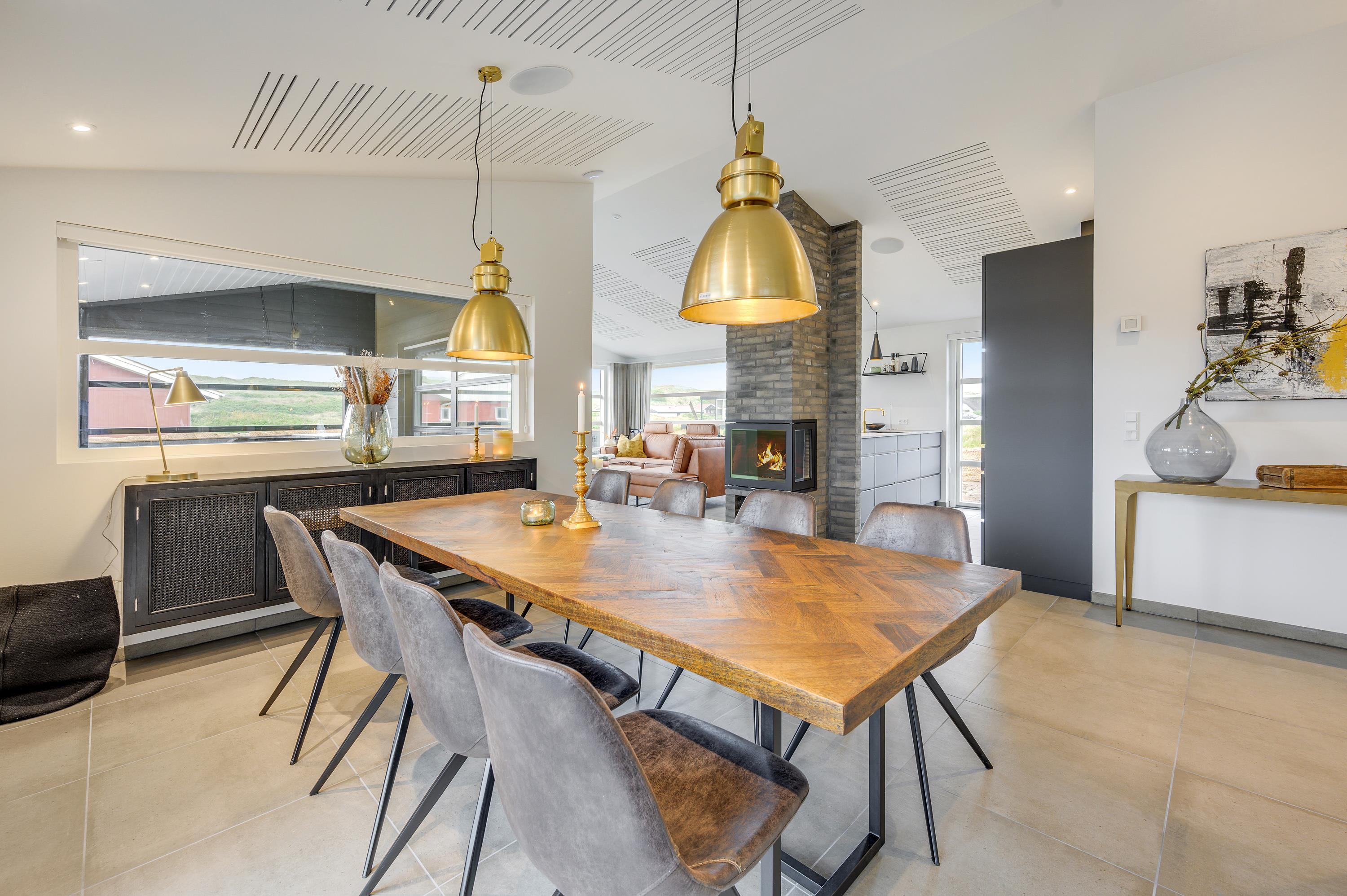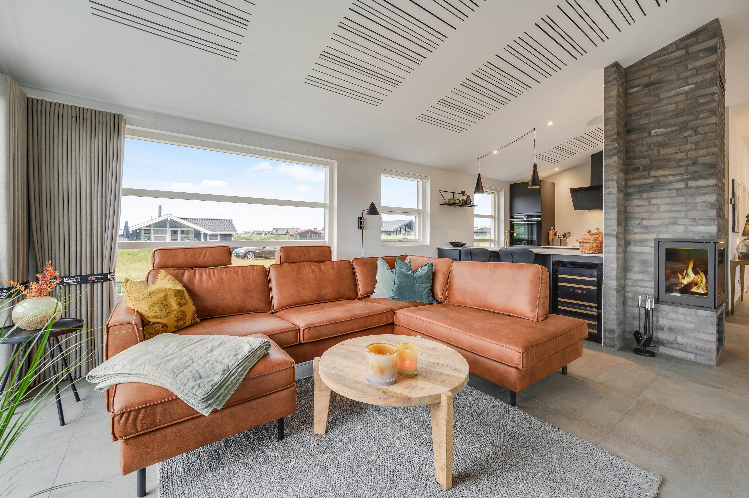 Som ekstra hyggefaktor i stuen er der selvfølgelig brændeovn, der kan nydes fra opholdsstuen, mens I hygger med en god film eller bare nyder udsigten gennem de store panoramavinduer og planlægger den næste dags aktiviteter.