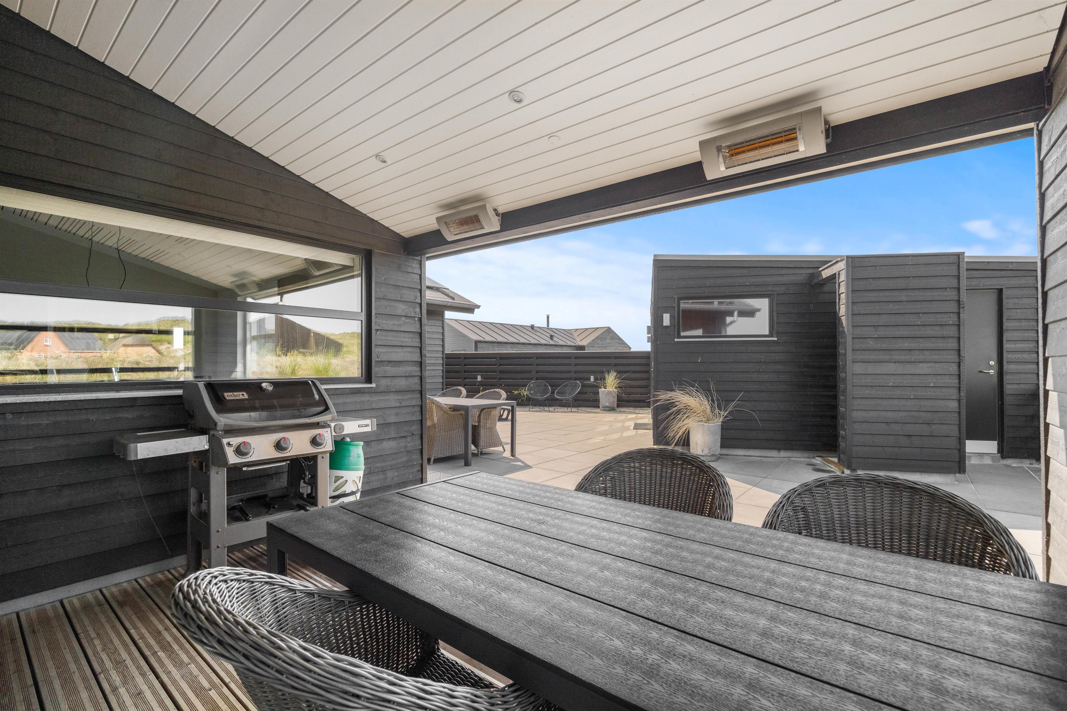 Midt i sommerhuset og med udgang til terrassen finder I det flotte poolområde, der ud over den 20 kvadratmeter store swimmingpool er indrettet med spabad til 2 personer. Med udsigt til klitterne kan I slappe af eller tage jer en dukkert året rundt, hvis I ikke vælger en tur i bølgen blå.