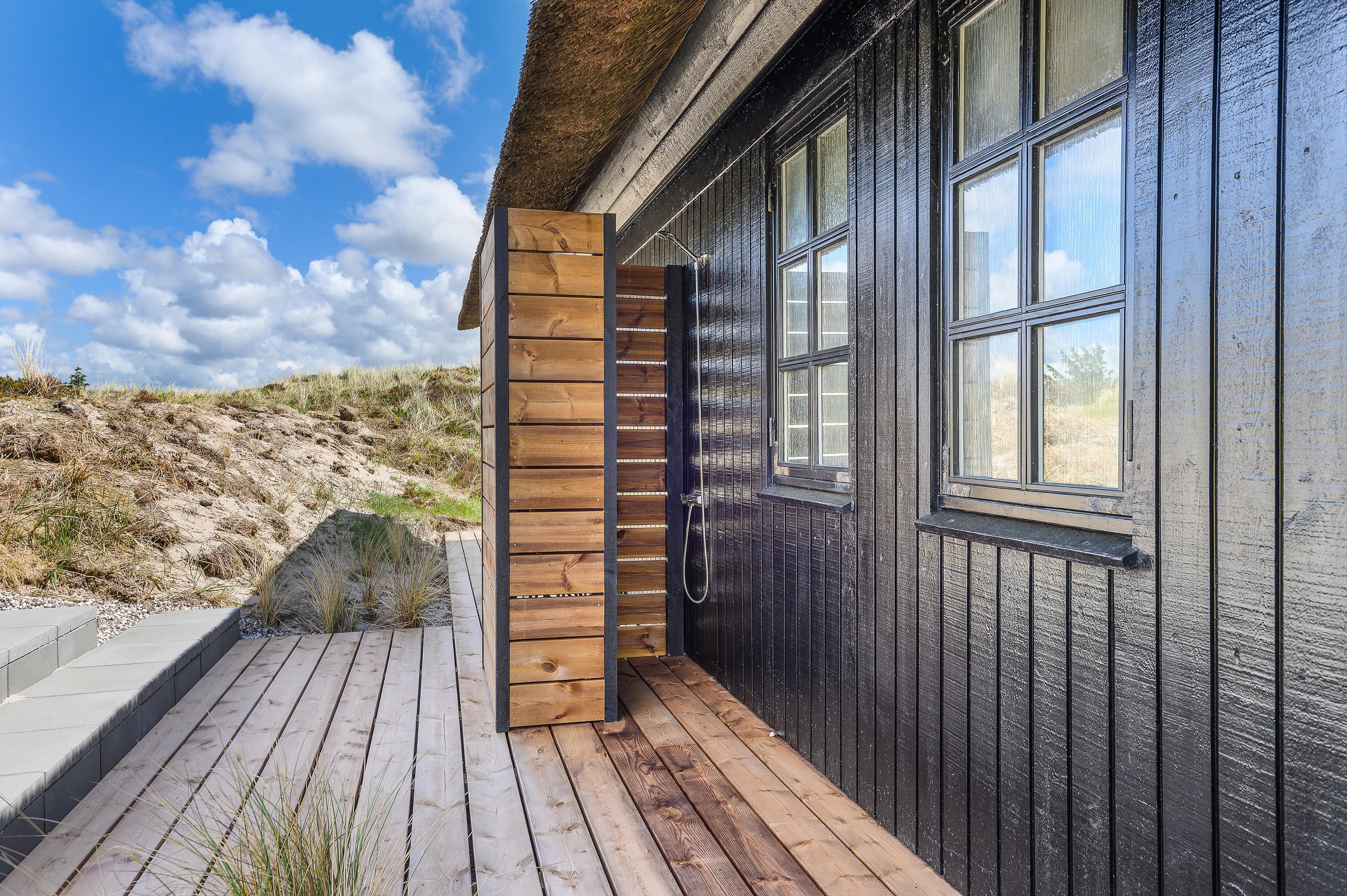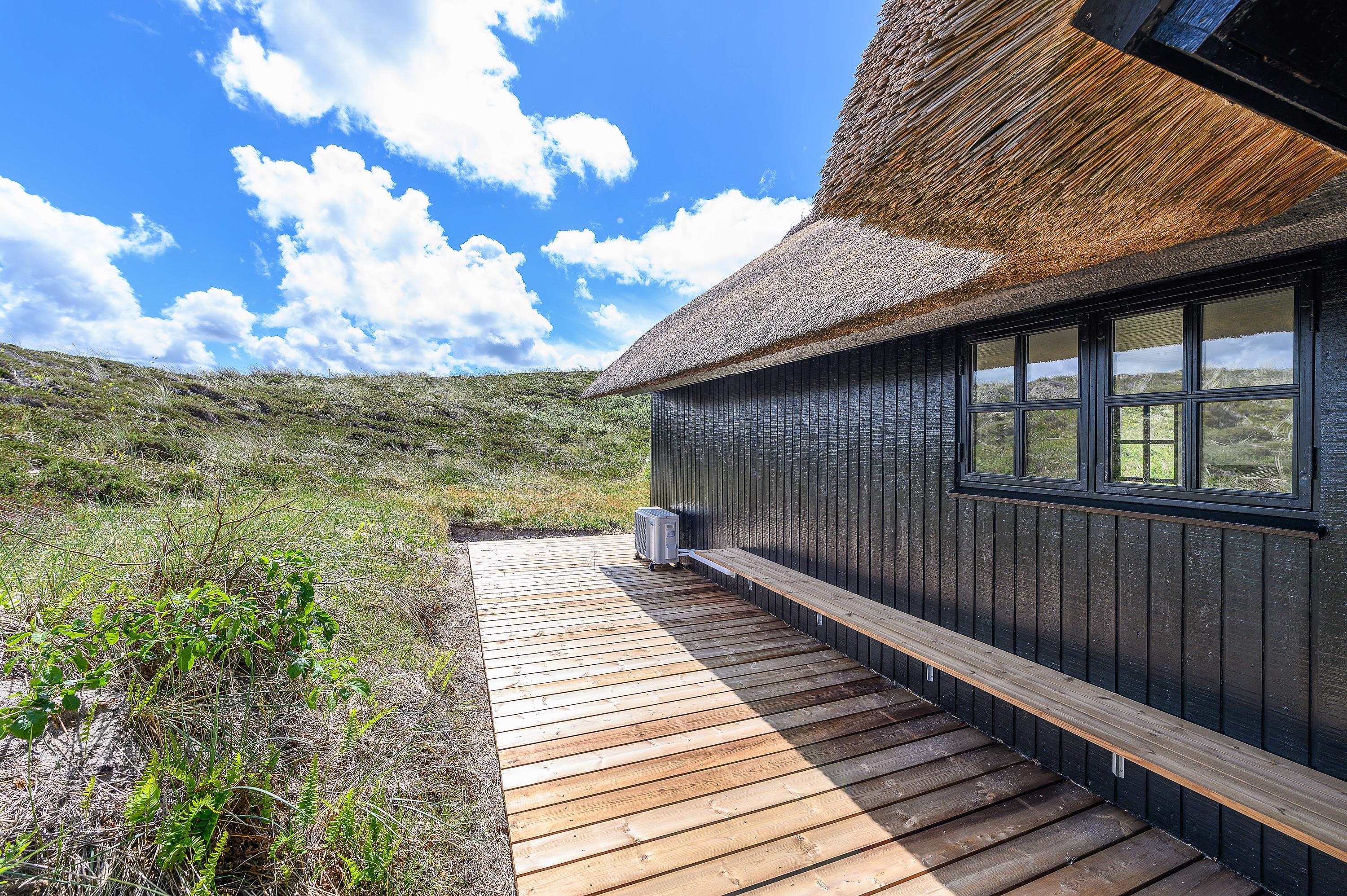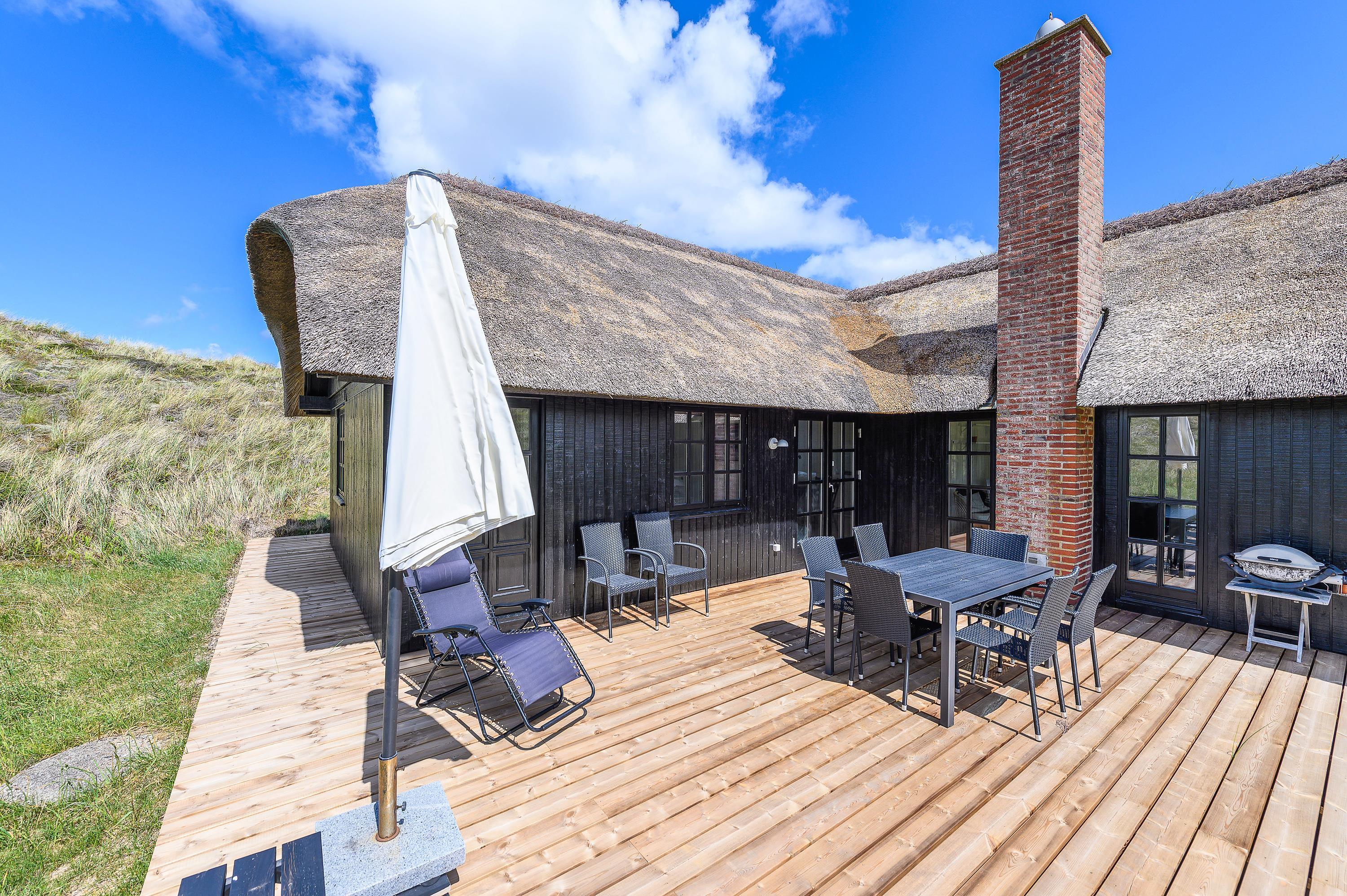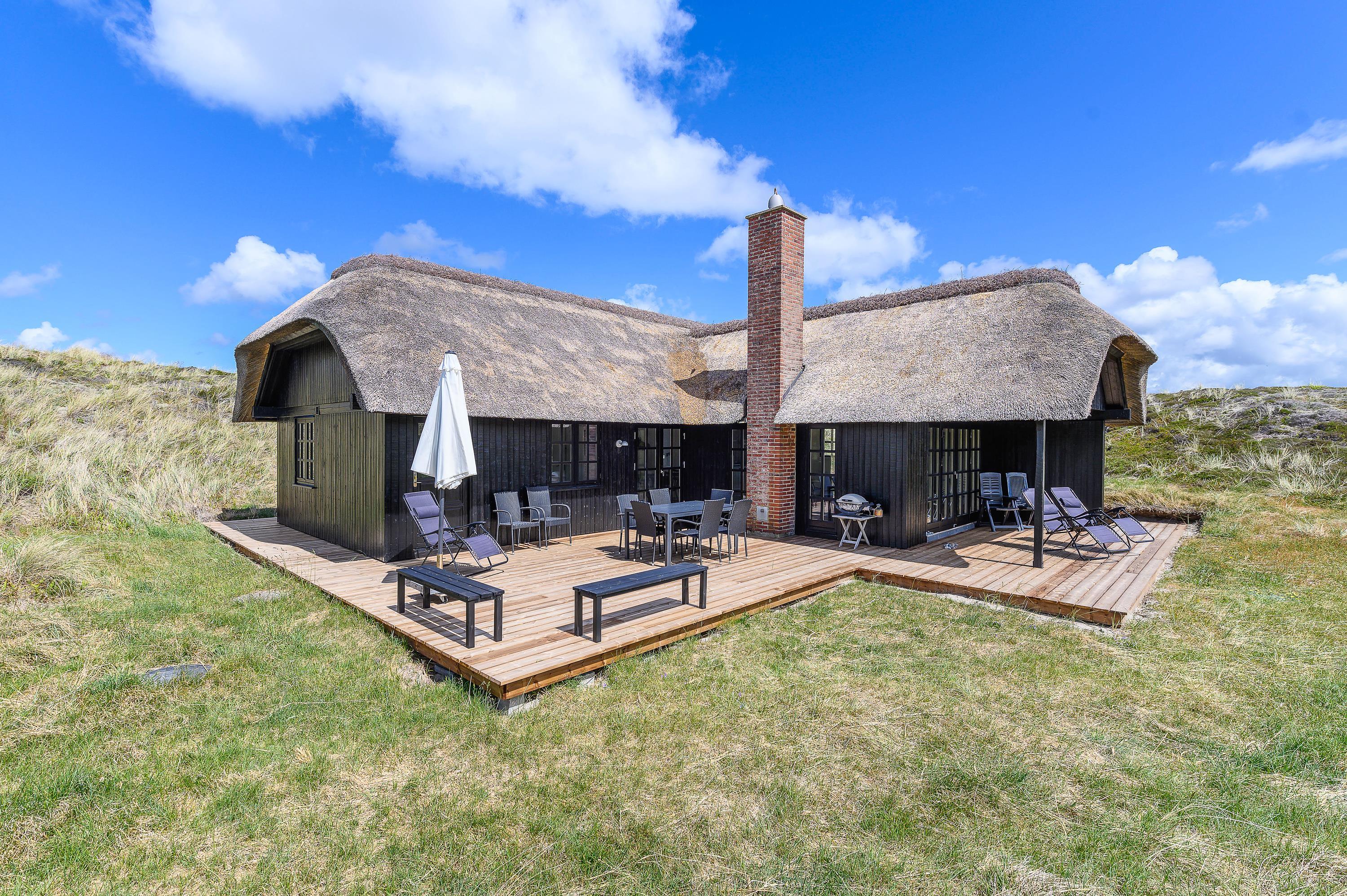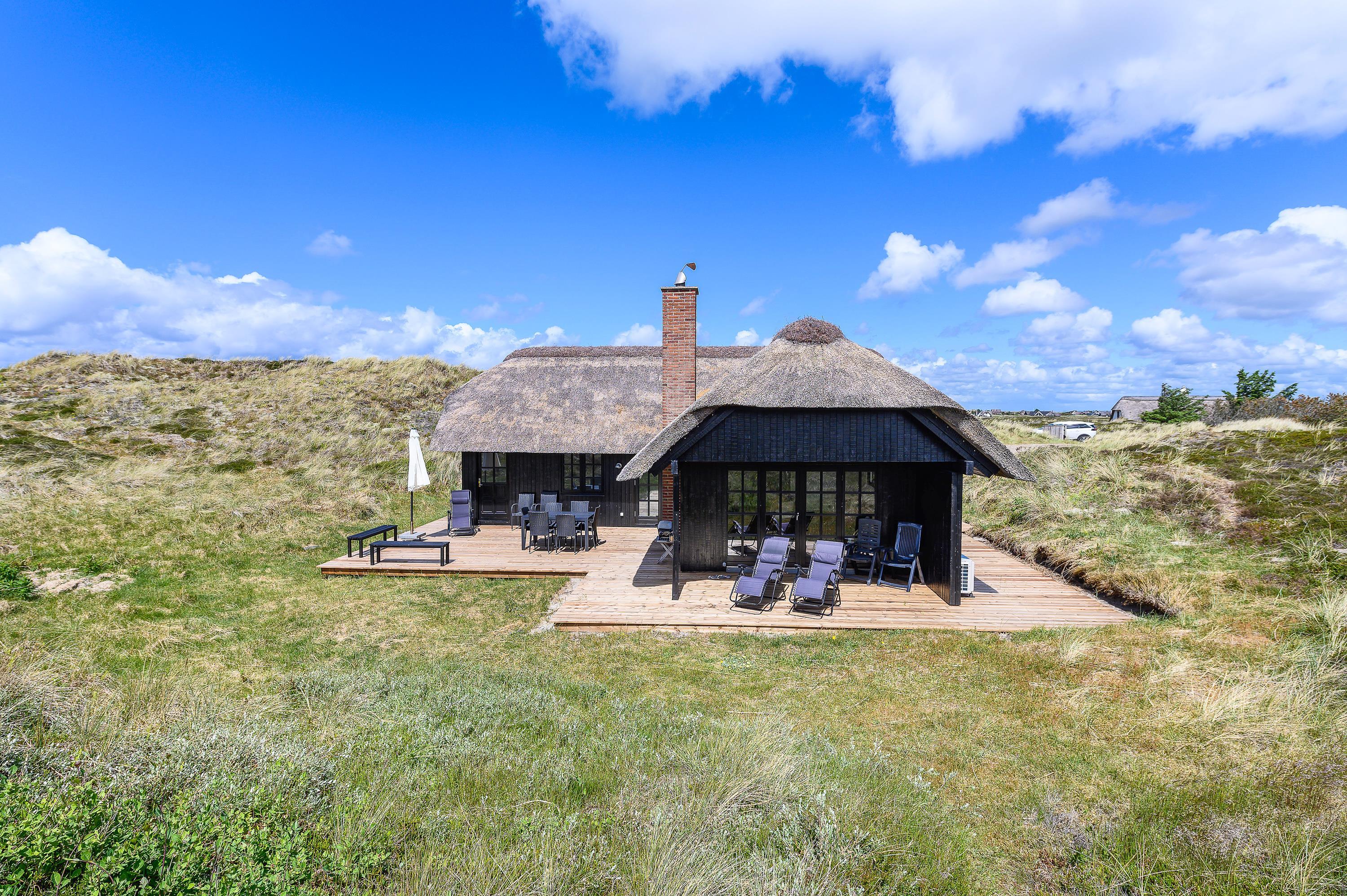 Kun 400 meter fra denne stråtækte perle ligger Vesterhavet og den endeløse sandstrand, som året rundt indbyder til forfriskende gåture langs vandet.