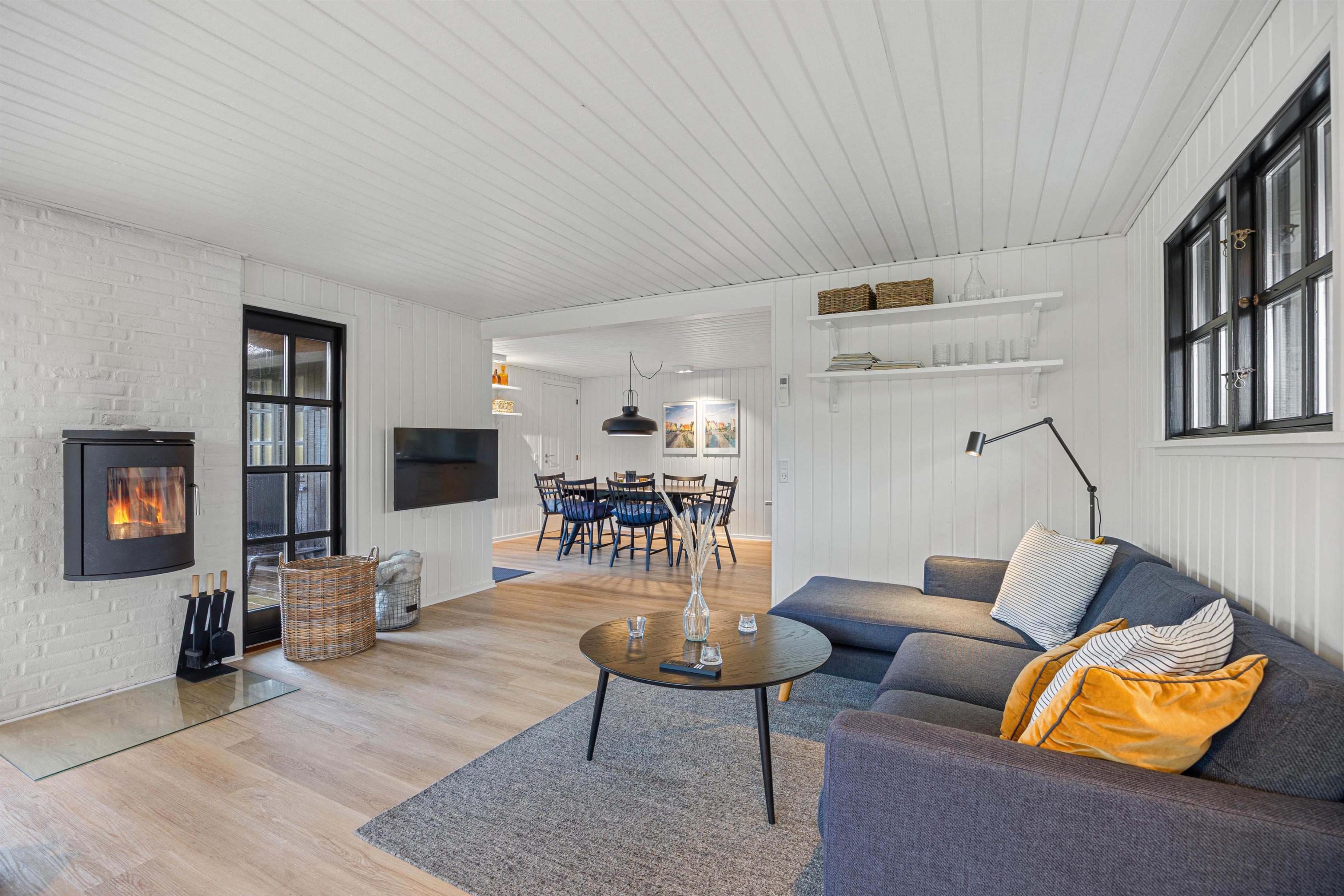 Slap af i skønne lyse omgivelser med brændeovn