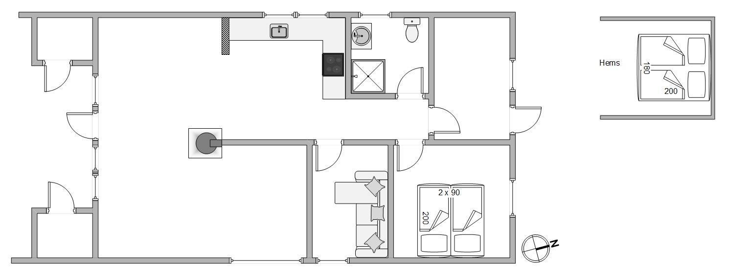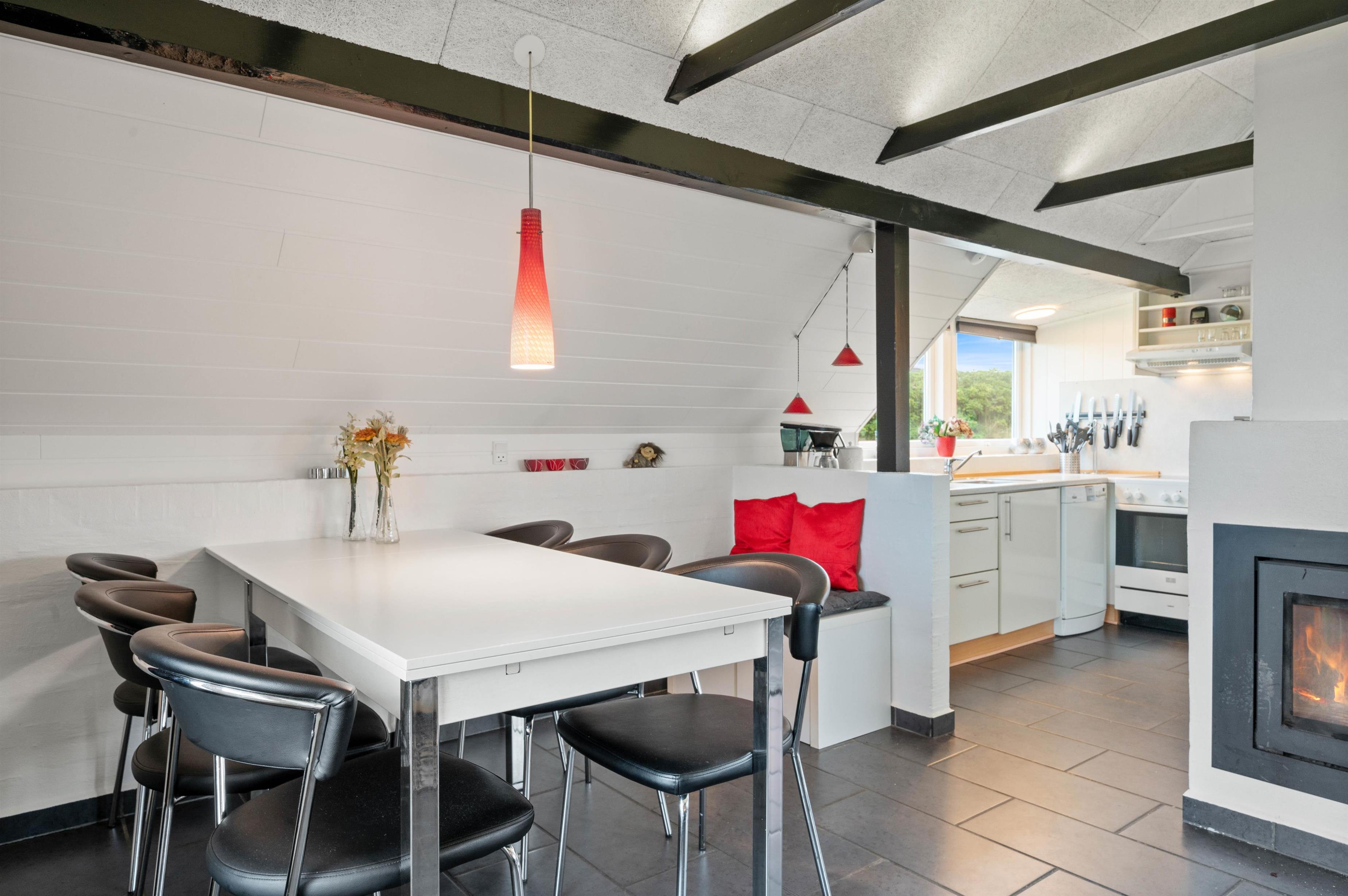 Dette skønne sommerhus byder velkommen med lyse vægge, loft til kip og fritlagte bjælker, som tilsammen giver et særdeles lyst og charmerende indtryk. De udsøgte møbler i både spiseafdeling og opholdsafdeling, det velindrettede køkken og den hyggelige indbyggede brændeovn indbyder til ren afslapning, når ferien skal holdes i Danmark. Her er et godt soveværelse med en komfortabel dobbeltseng, et værelse med dobbelt sovesofa samt 2 sovepladser på den hyggelige hems.