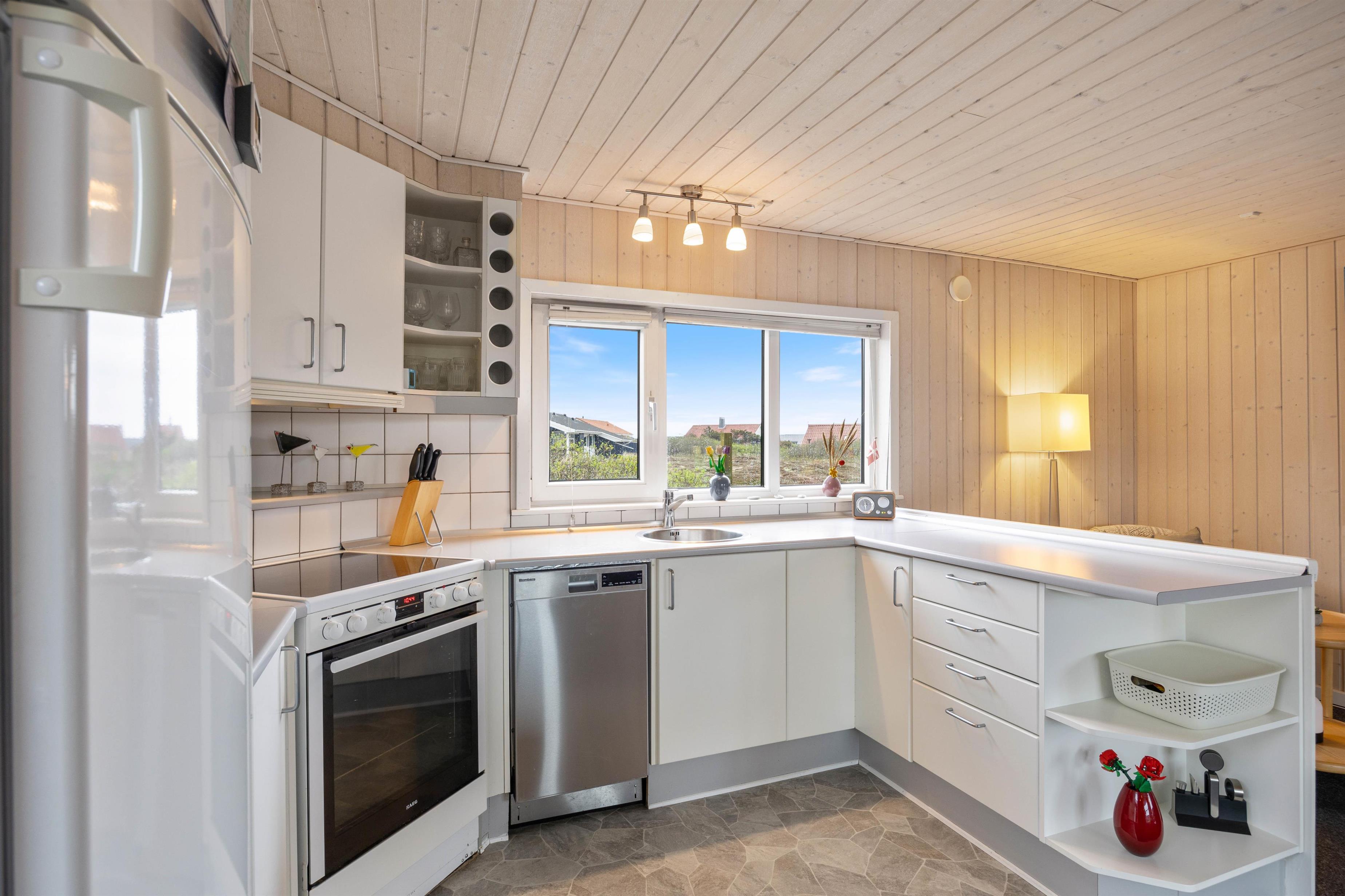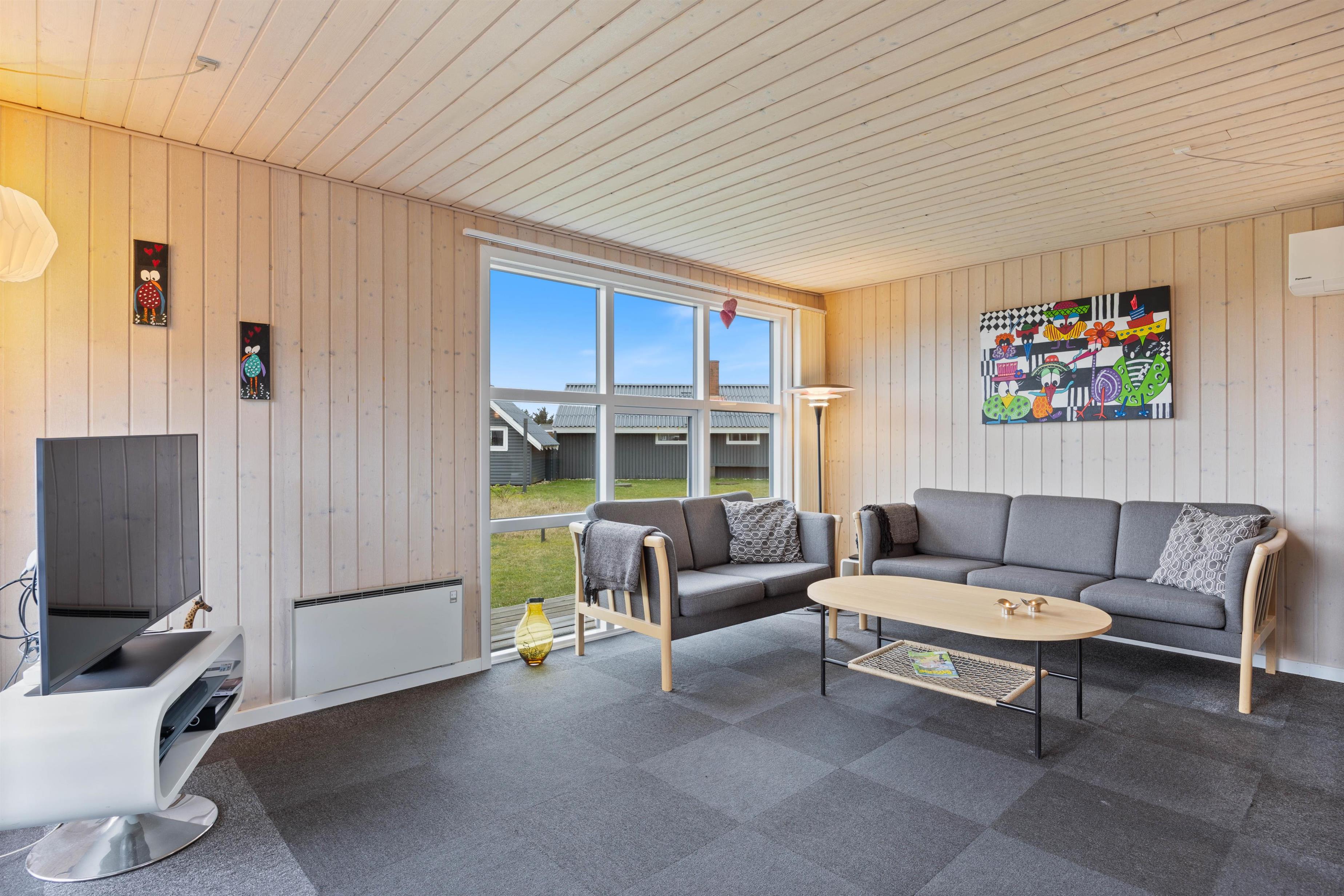 I sommerhusets alrum kan I samles til mange hyggelige stunder i løbet af ferien. Her er der store vinduespartier, der giver et godt lysindfald i rummet. Køkkenet er veludstyret, og mens nogle står for madlavningen, kan andre lægge puslespil ved spisebordet eller slappe af på sofaen. Brændeovnen sørger for god varme, og I kan med fordel også benytte jer af den energibesparende varmepumpe. Til en hyggelig filmaften er der Chromecast i sommerhuset, så I kan streame jeres yndlingsfilm.
