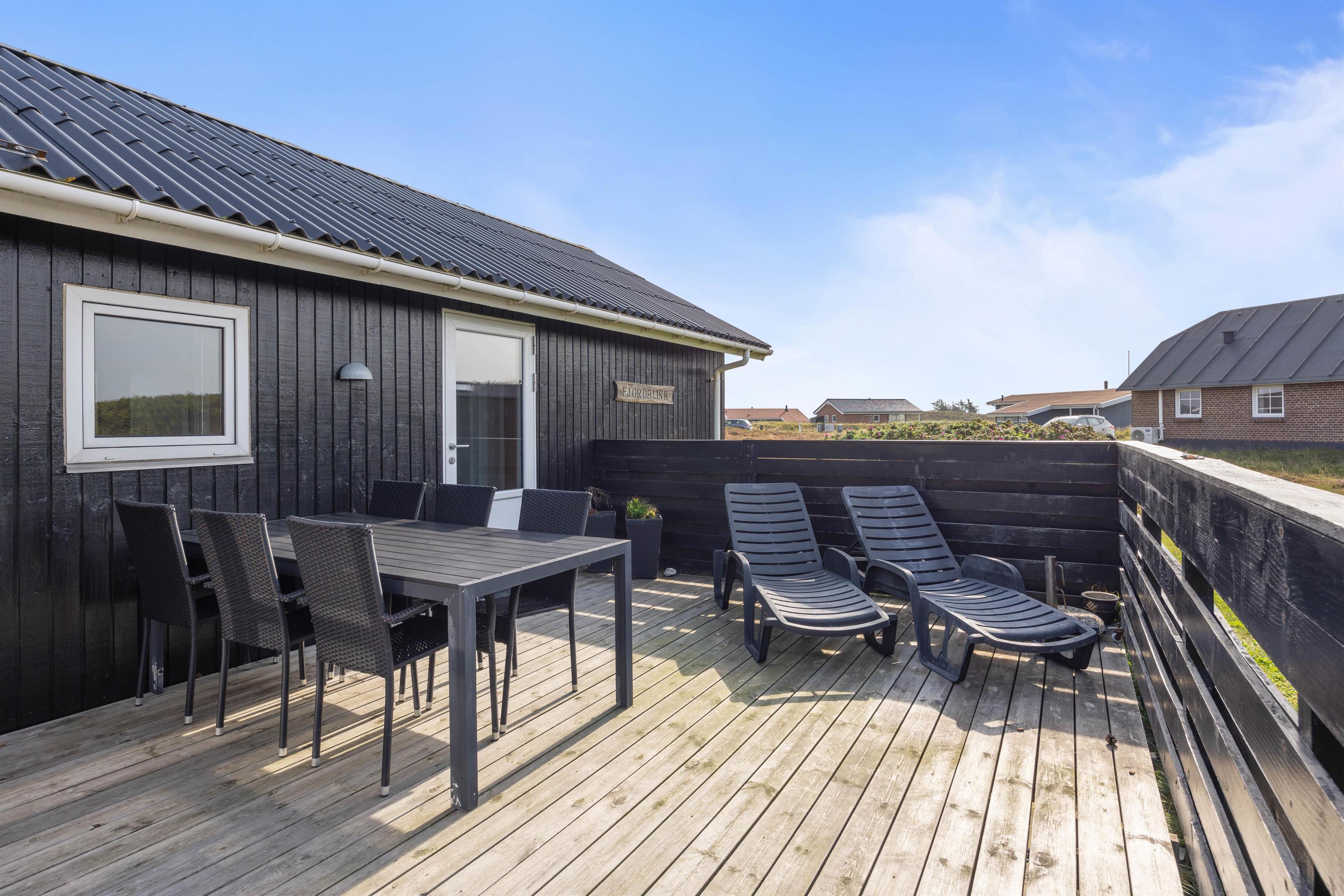 Terrassen er delvist afskærmet, og herfra kan I nyde den lune sommersol i havemøblerne eller på liggestolene. Til aften kan I tænde op i sommerhusets gasgrill og afslutte dagen med en hyggelig grillaften.