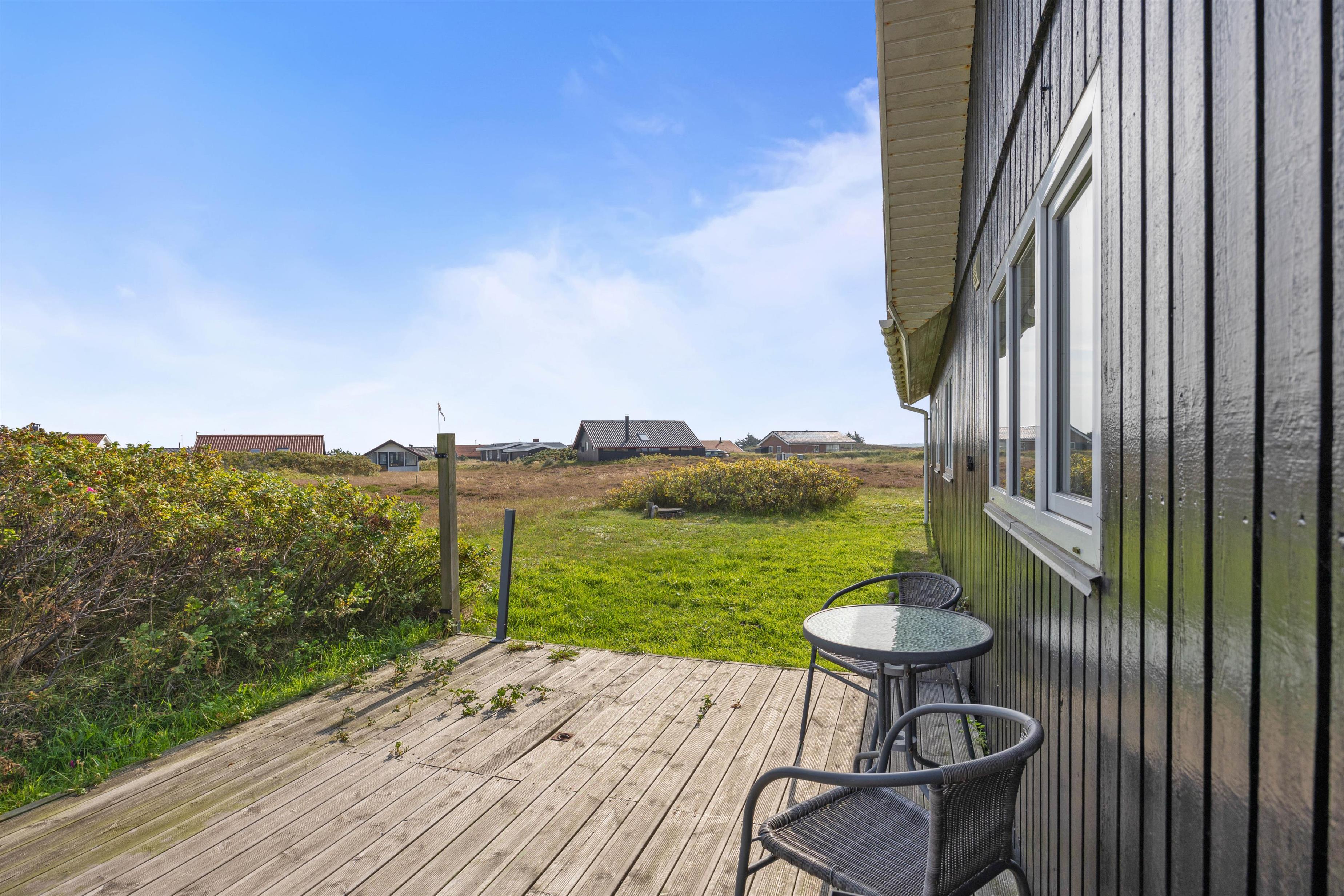 Sommerhuset ligger i den sydlige ende af Holmsland Klit, hvor Ringkøbing Fjord er at finde mod øst, mens Vesterhavet ligger mod vest. Fra sommerhuset har I kun 300 meter til stranden, hvor I helt sikkert får flere timer til at gå i løbet af ferien. Hvad enten I er til afslapning på en varm dag, gåture eller drageflyvning i blæsten, så er mulighederne mange her.