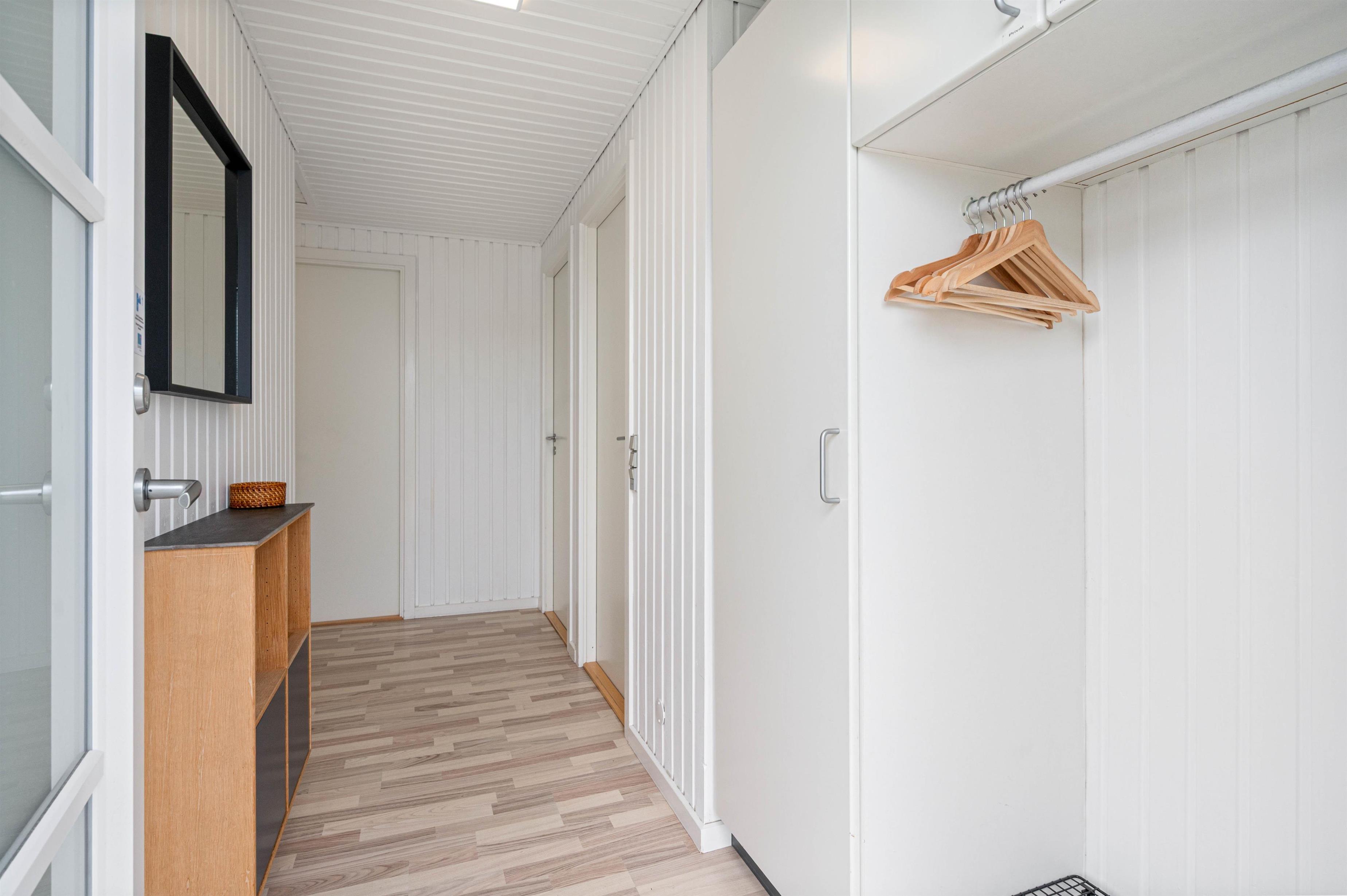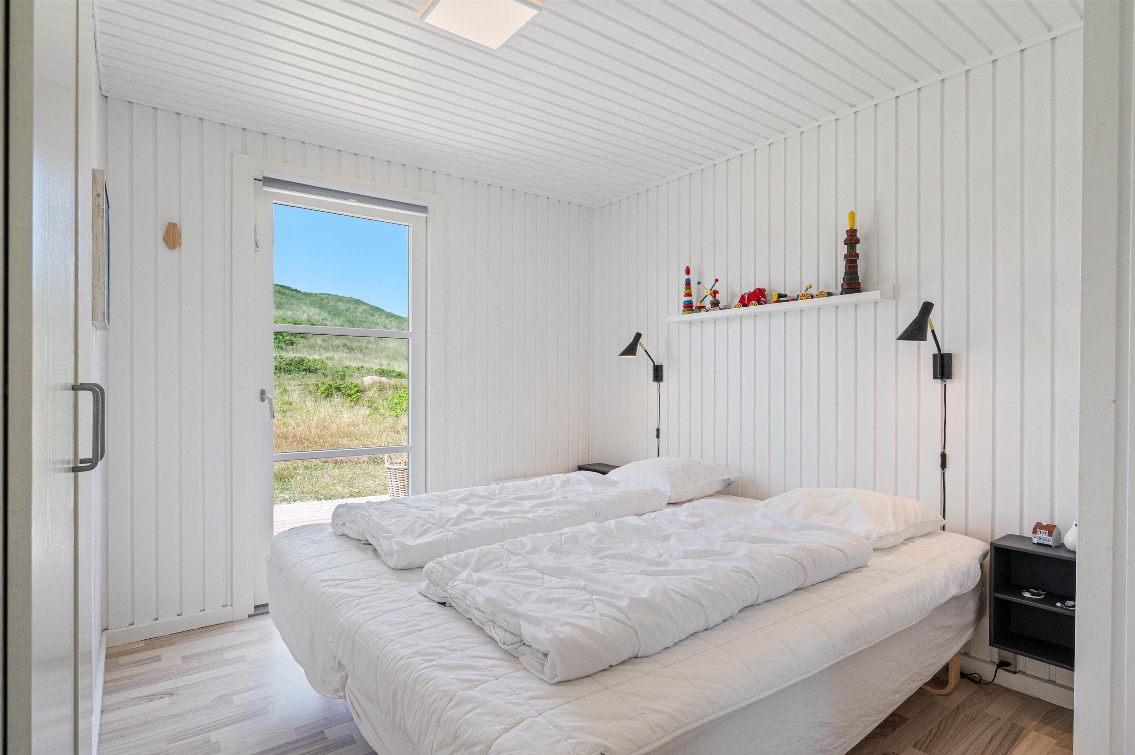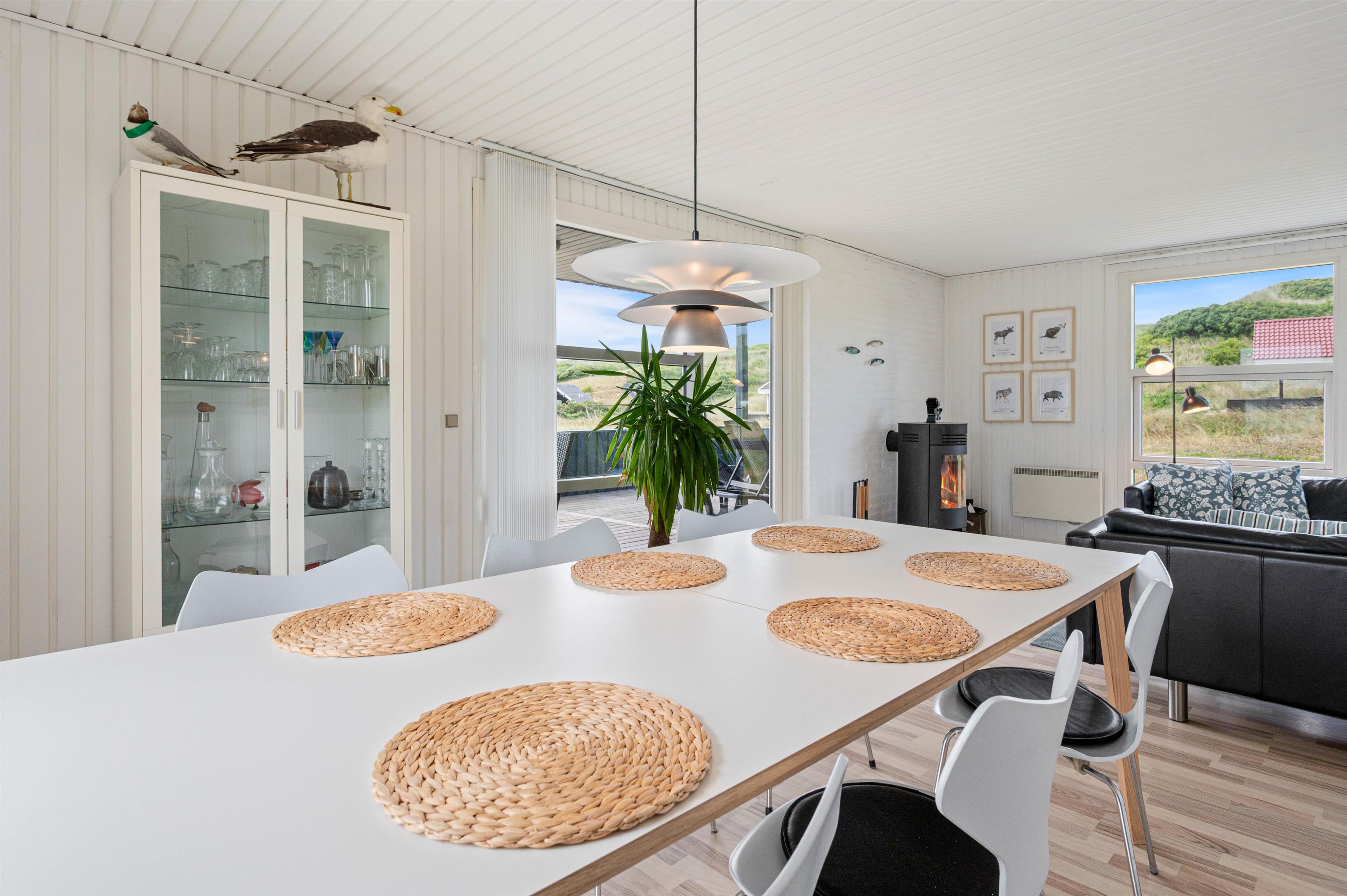 I soveværelse og opholdsstue finder i lyse trælaminater, som sammen med de lyse vægge og lofter giver feriehuset sin rare atmosfære. Stuen er udstyret med smart-tv og brændeovn. Her kan I finde jer rigtig godt tilpas på stormfulde efterårsdage og lade tankerne vandre.