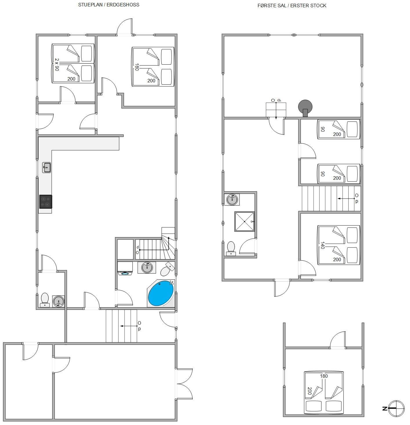 Feriehuset har i alt 4 soveværelser fordelt på stueetagen og øverste etage, der indbyder til masser af komfort. Annekset med 2 ekstra senge er harmonisk integreret i ejendommen og tilbyder et tilflugtssted for gæster, der ønsker lidt mere fred og ro. Bemærk venligst - det lille anneks er ikke isoleret, men er udstyret med elvarme.