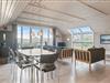 Stuen er lys og hyggelig møbleret. Centralt i stuen er brændeovnen placeret, hvilket giver mulighed for at nyde varmen i både stue og spiseafdeling. I forbindelse med stuen ligger køkkenet med flisegulv, således der er mulighed for at samle hele familien til hygge eller madlavning. I køkkenet finder du opvaskemaskine, mikroovn, airfryer og en fryser på 10 L. Endvidere finder I vaskemaskine, tørretumbler, gratis trådløst internet og energibesparende varmepumpe.