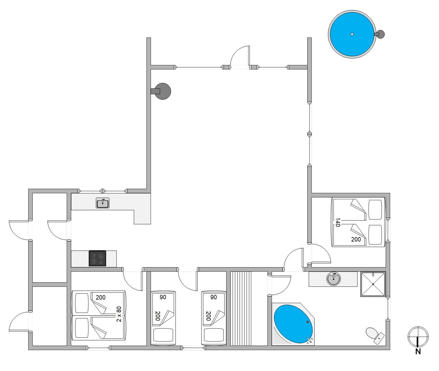 Kun 400 meter fra feriehuset indbyder Vesterhavets bølger til en dukkert, hvorefter sommerhusets sauna står klar ved hjemkomsten. Efter en lang dag kan I nyde spaen eller aftensolen i vildmarksbadet.