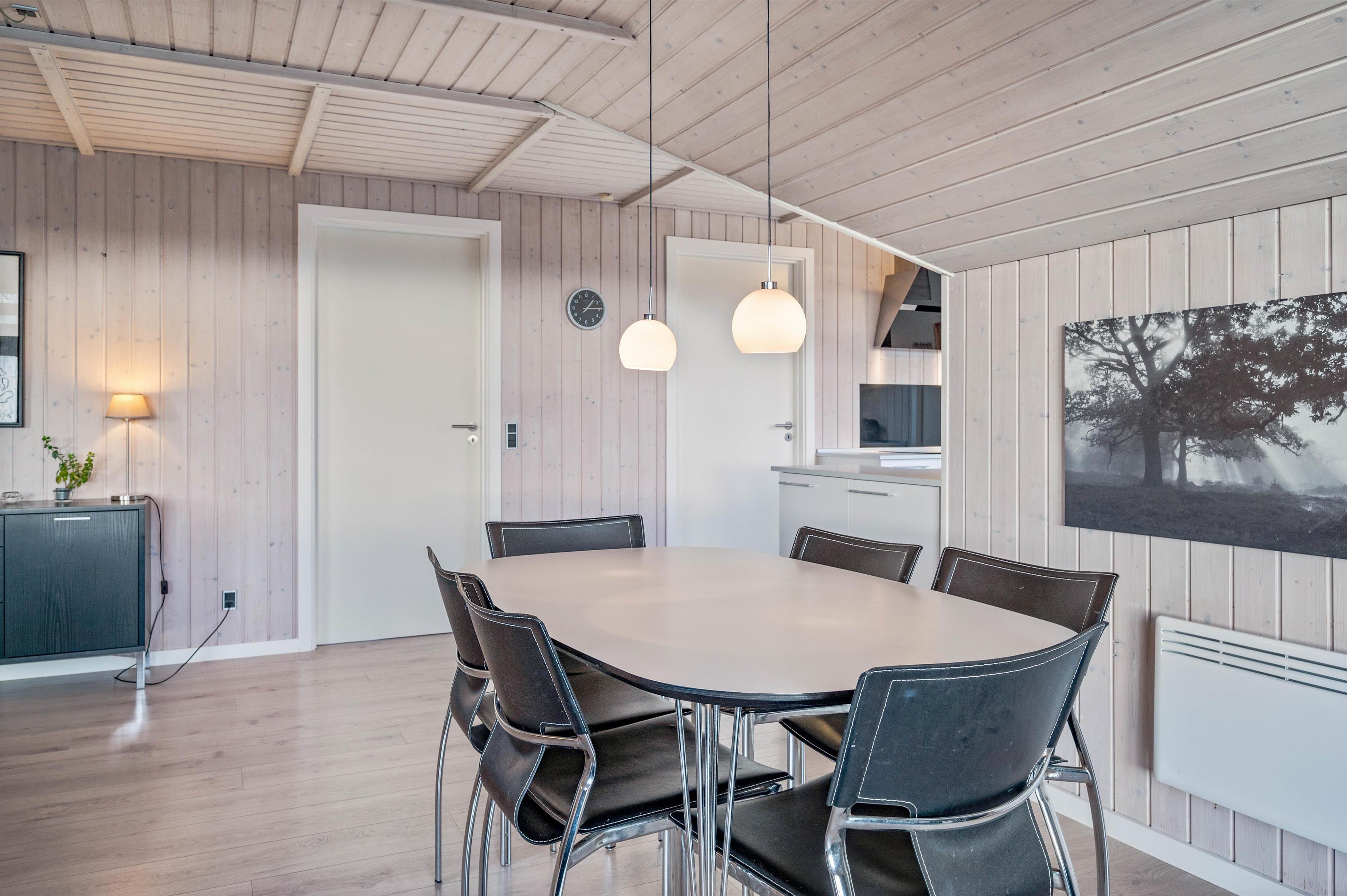Feriehuset har plads til 6 personer, og alle værelser er med træloft til kip. I et af de tre soveværelser finder du 2 enkelte senge, mens du i de øvrige soveværelser finder en dobbeltseng.