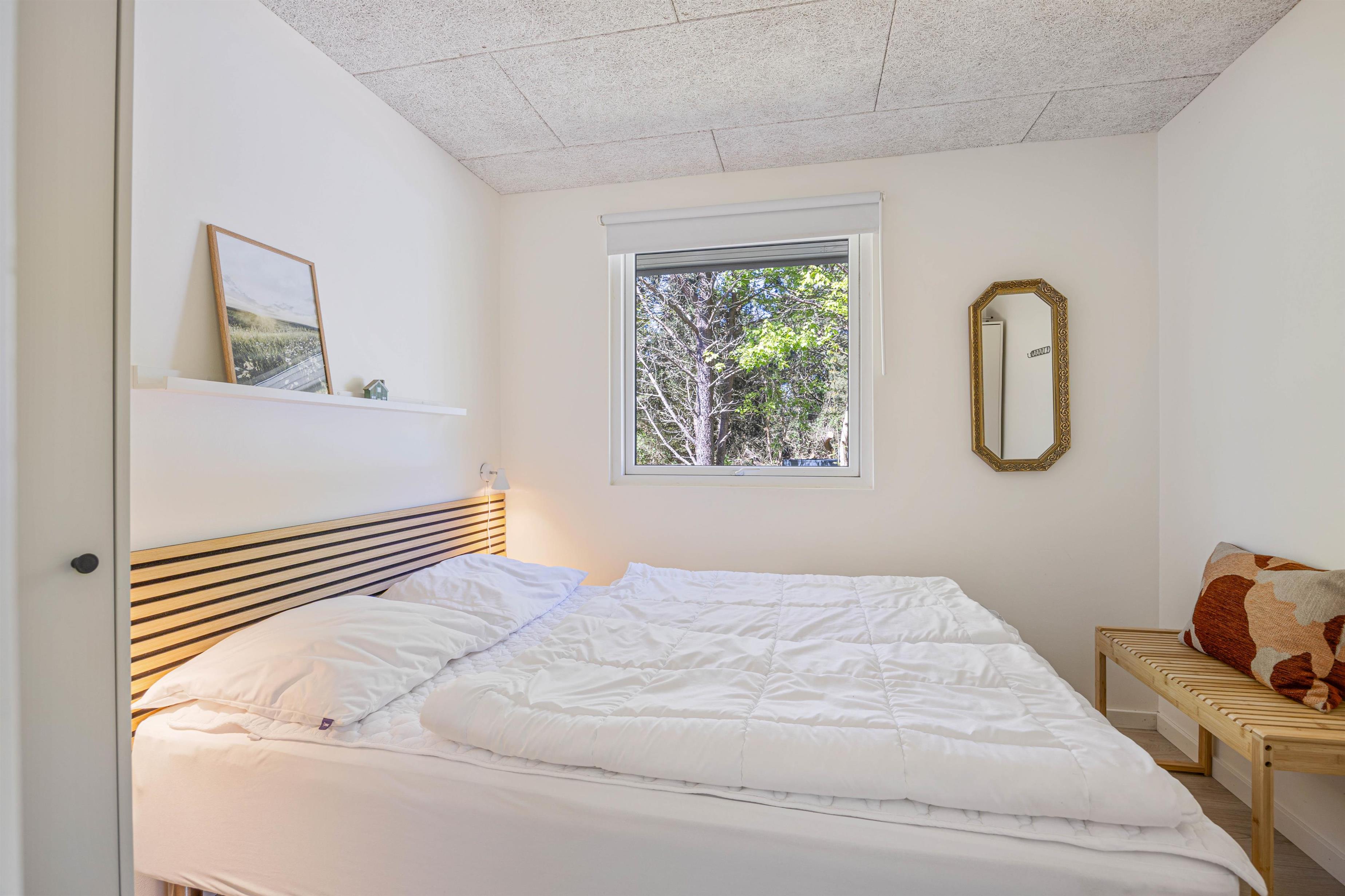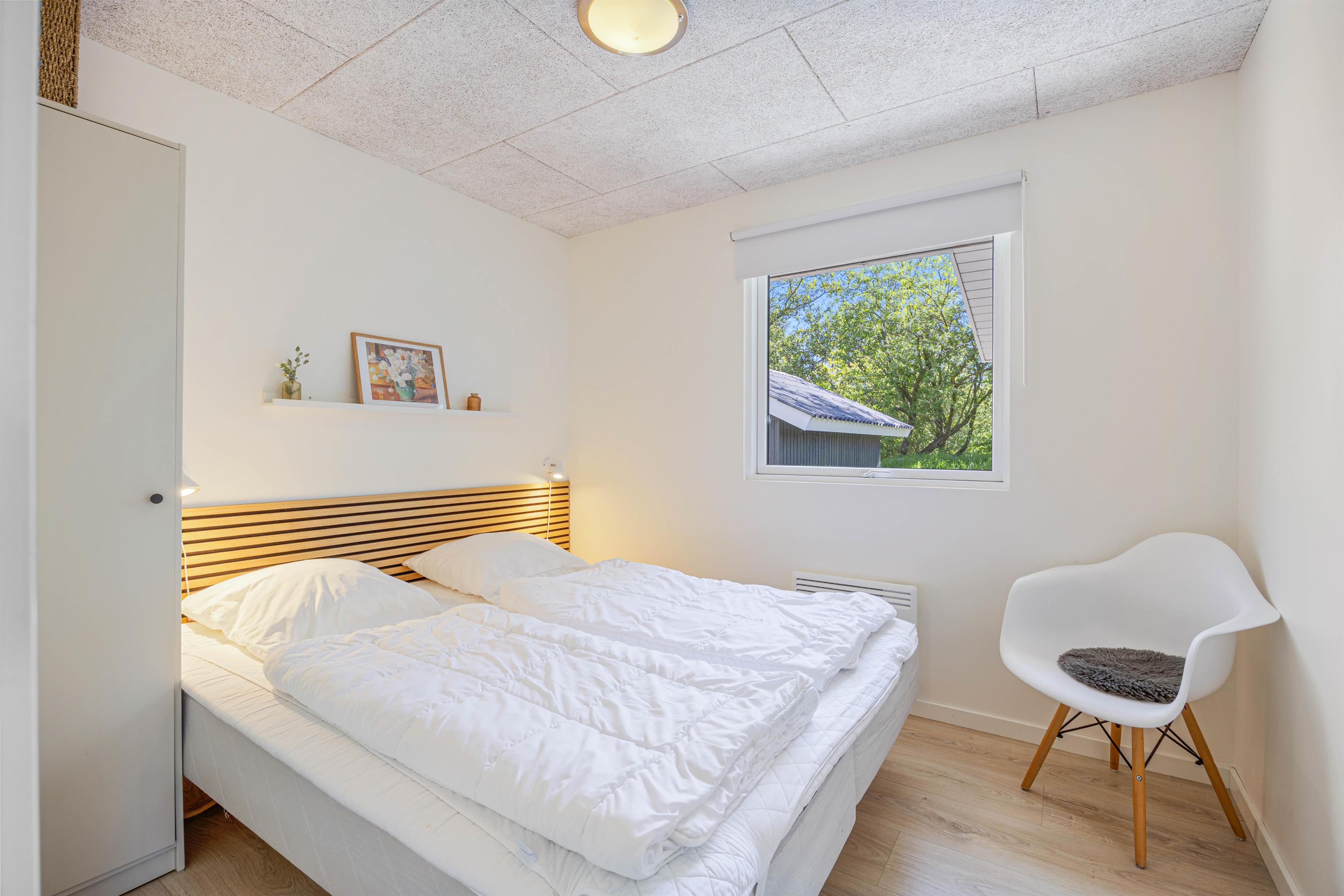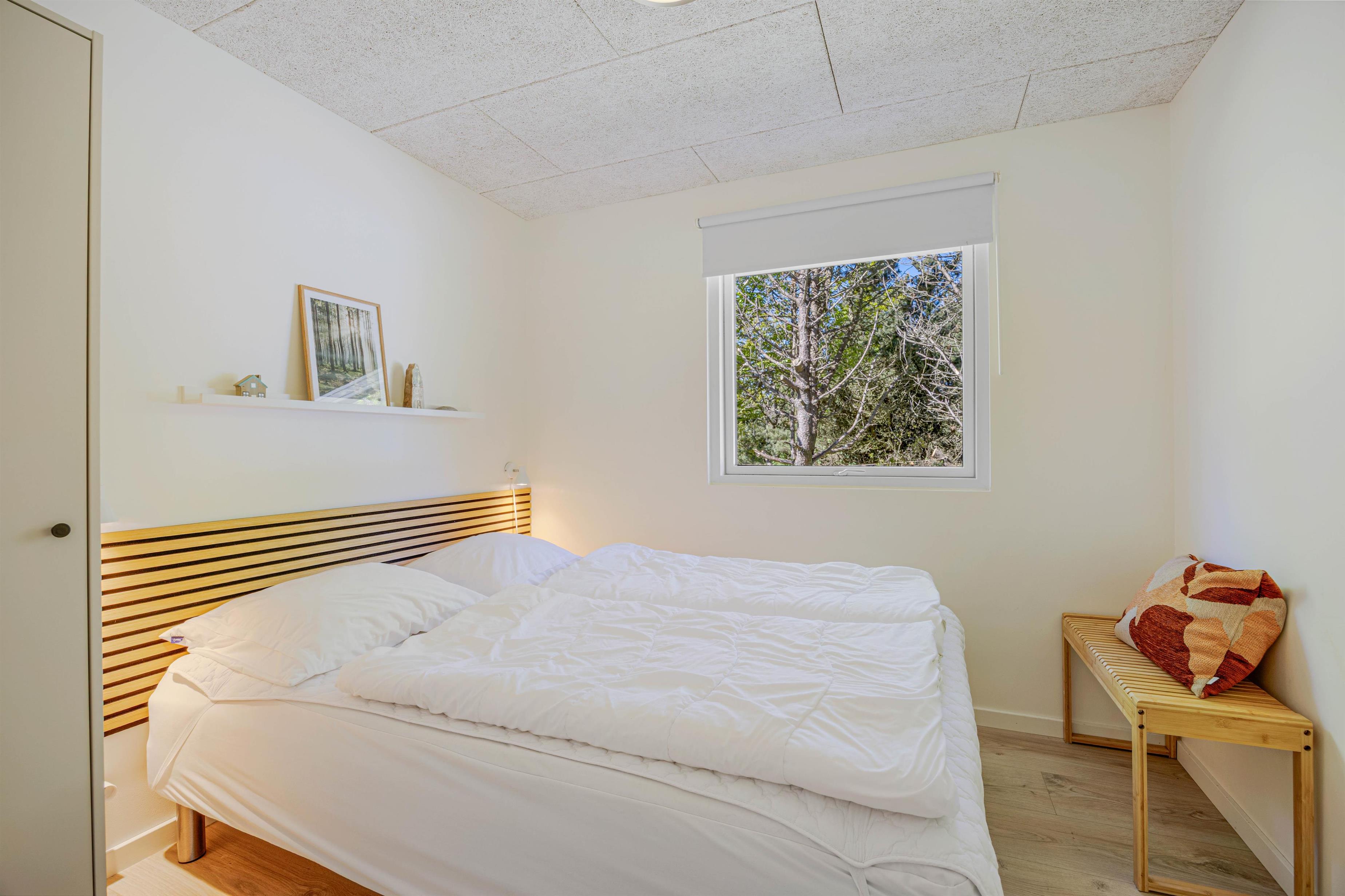 De store vinduer i opholdsrummet skaber et godt lysindfald, som gør rummet lyst og indbydende. Herfra har I også en fin udsigt til den skønne naturgrund, hvor børnene kan lege, imens I laver et lækkert aftensmåltid. I feriehuset er der desuden 3 gode soveværelser, hvor I kan slappe af og få en god nats søvn, inden morgendagens aktiviteter skal begynde. Derudover har badeværelset gulvvarme, og her finder I også vaskemaskine samt tørretumbler, så I har mulighed for at vaske tøj under ferien.