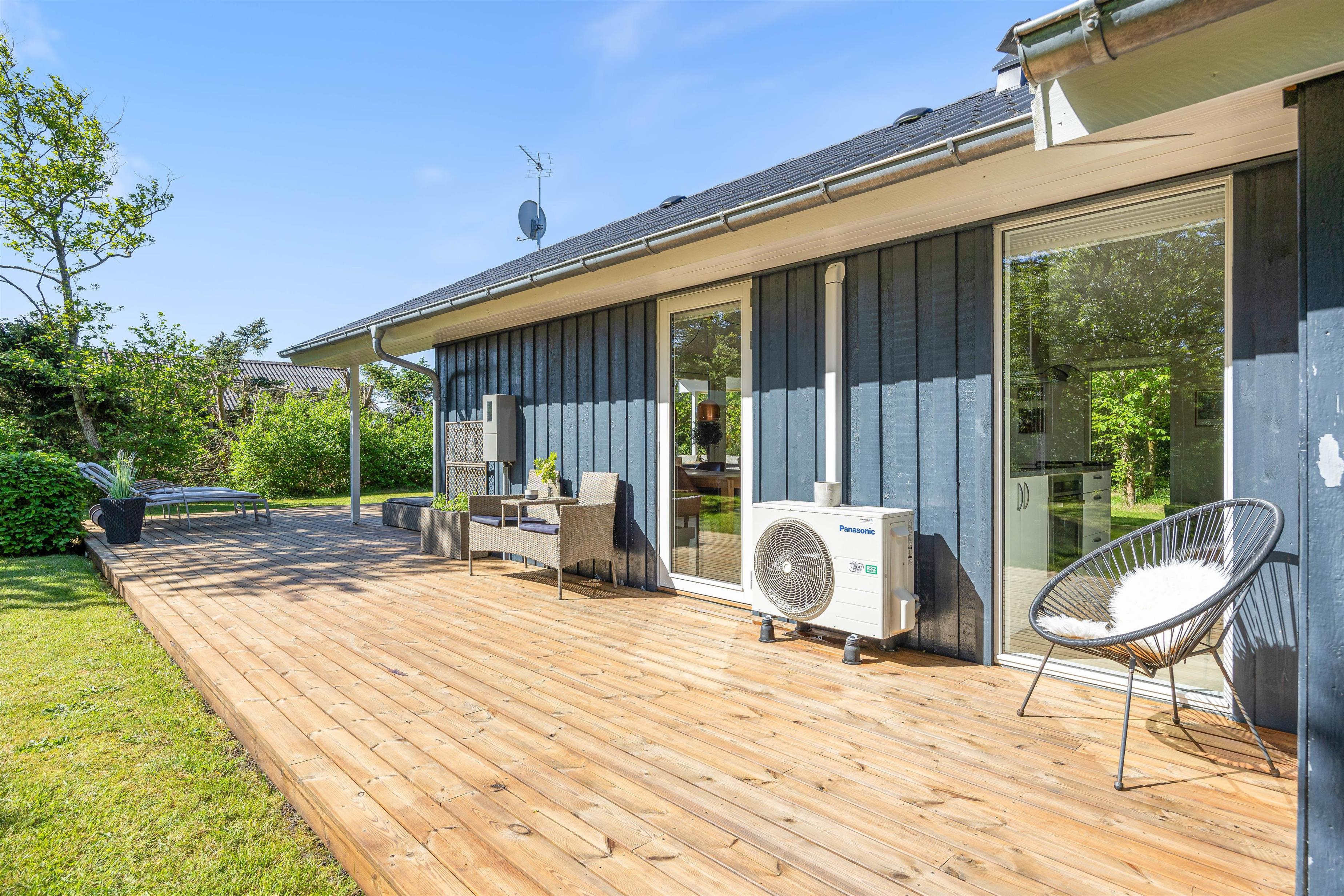 Sommerhuset er udstyret med en varmepumpe, som I med fordel kan benytte jer af.