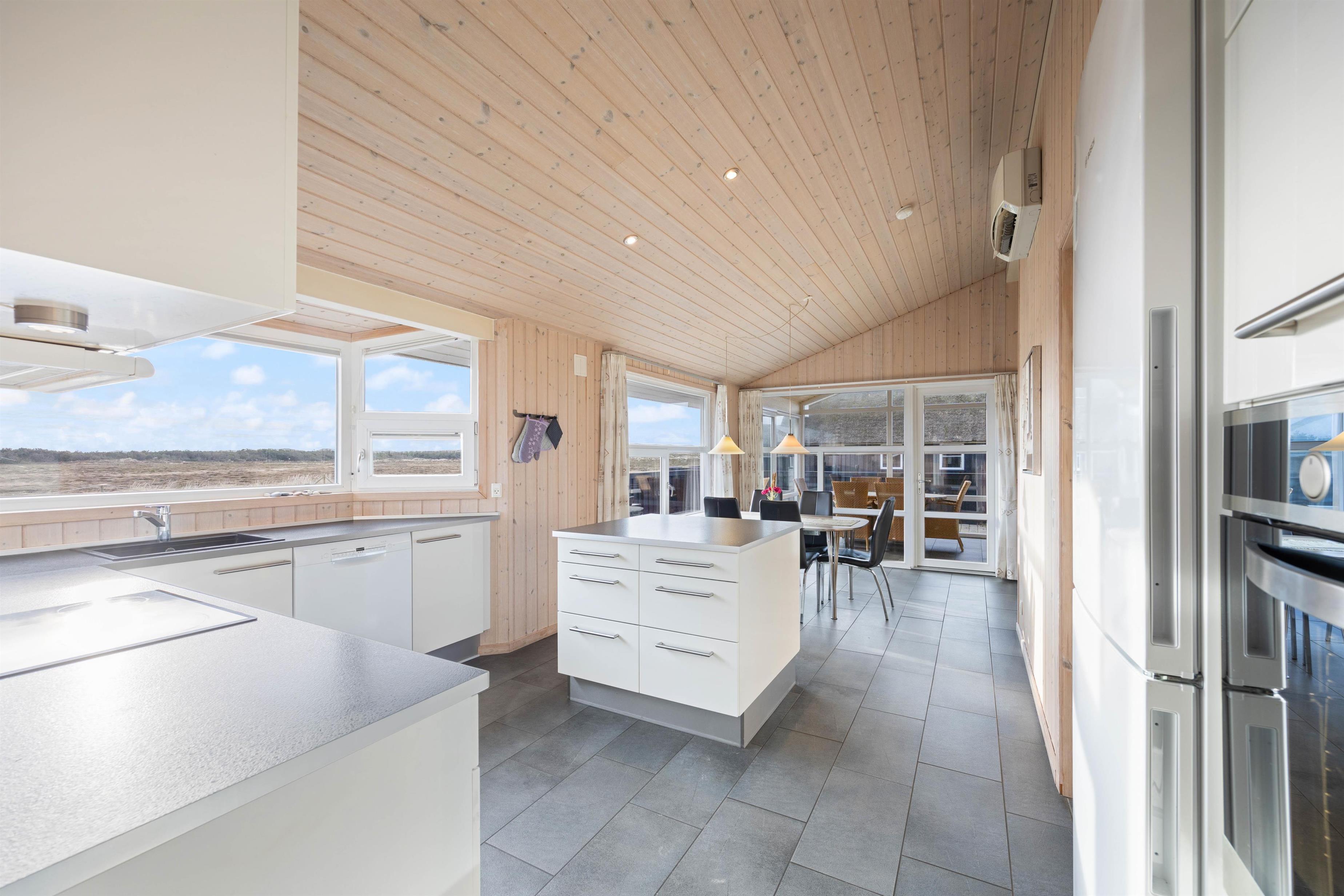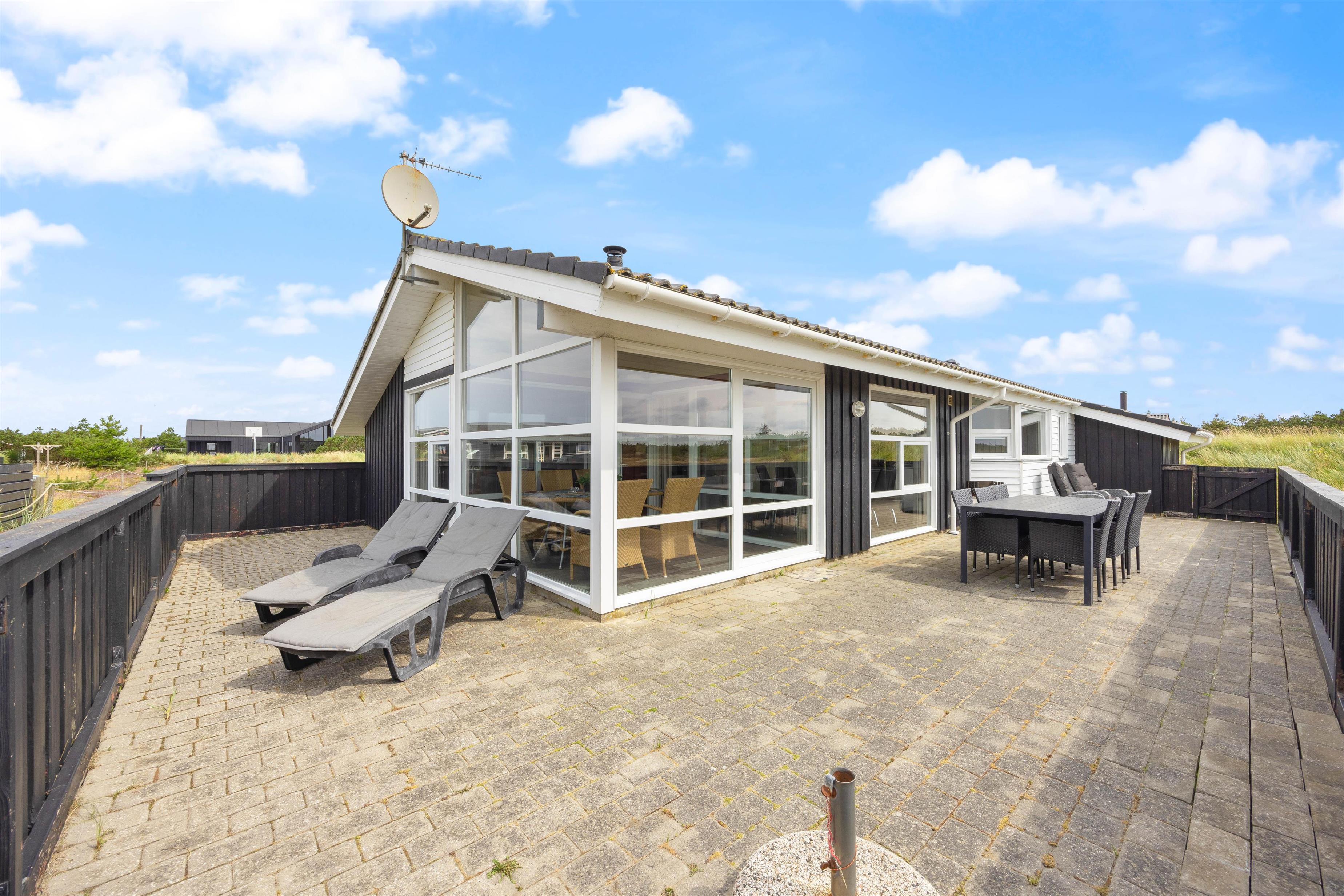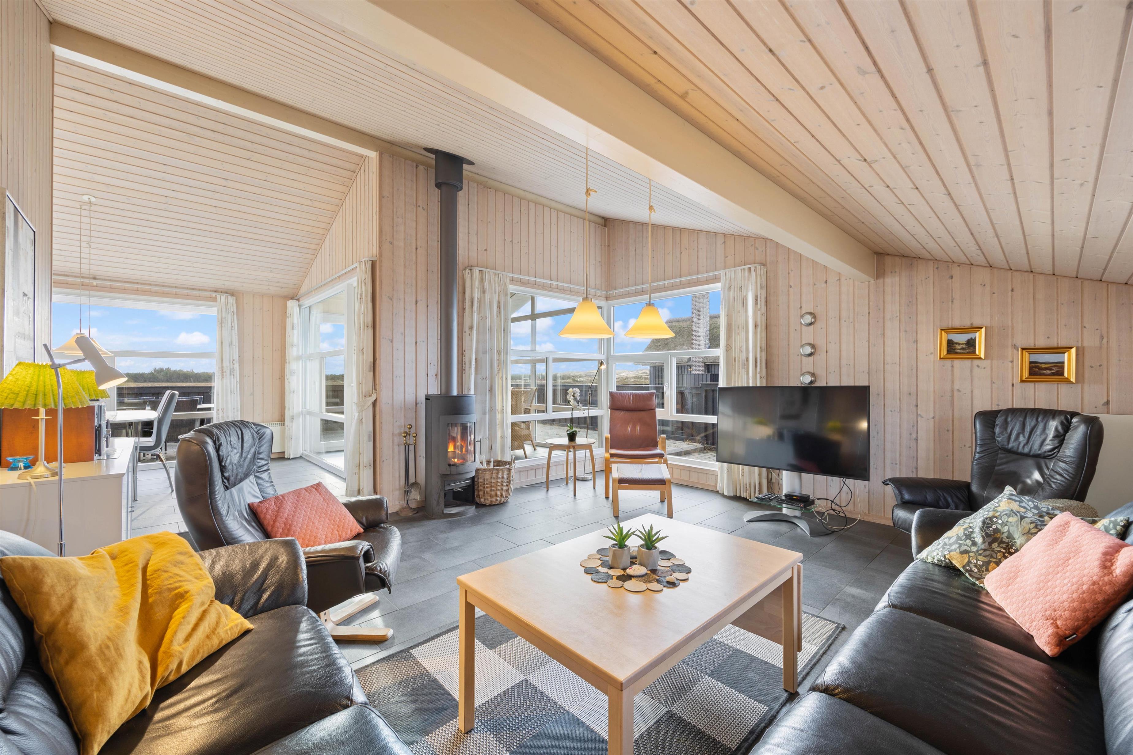 Op til 6 personer kan nyde udsigten over det fredede hedeareal fra dette feriehus. Med kun en frisk gåtur til stranden er beliggenheden helt perfekt for en skøn ferie ved Vesterhavet. Her er både hyggelige opholdsrum, udestue og badeværelse med spa og sauna. Har I hund, er den også velkommen med på ferien.