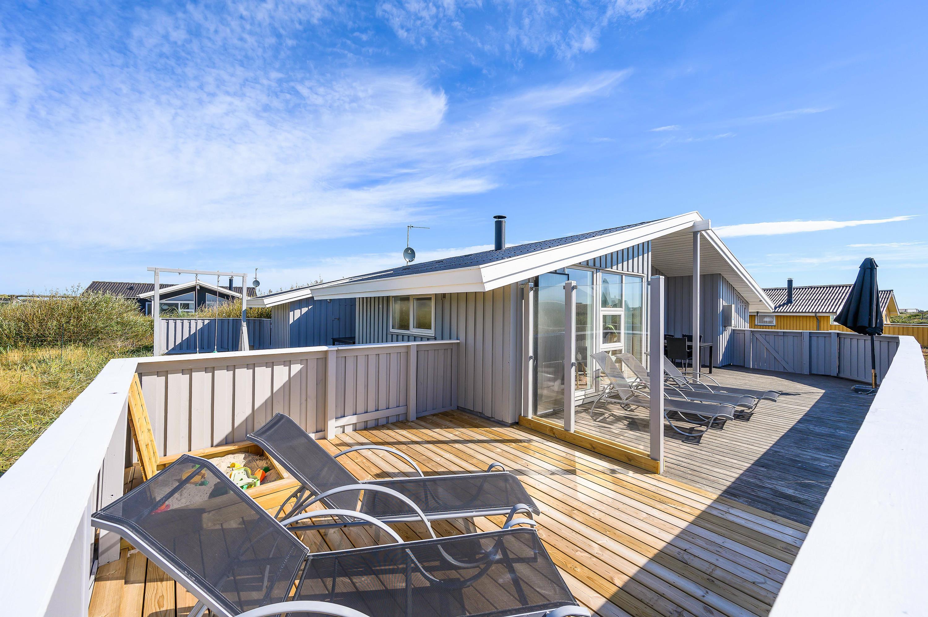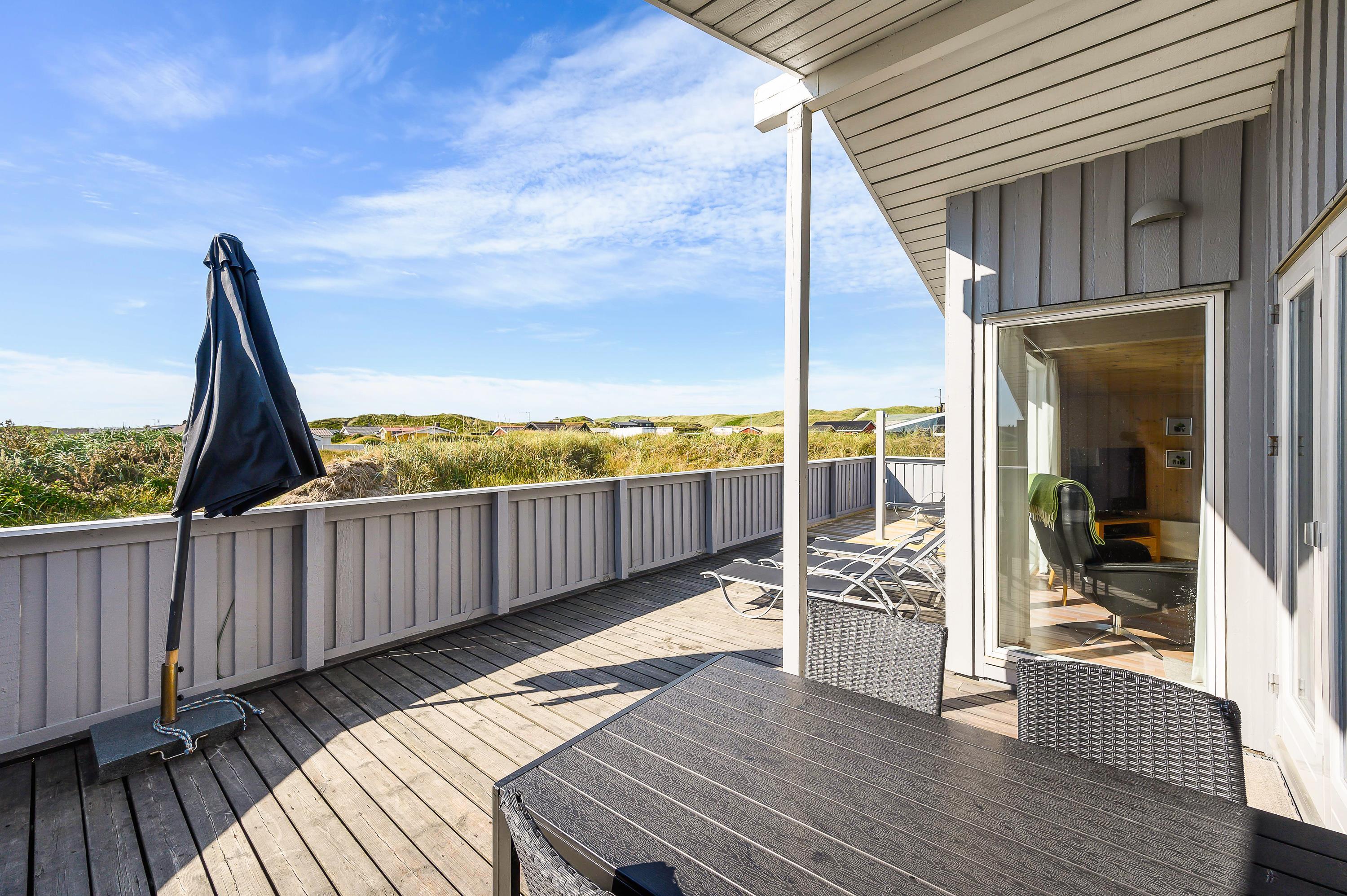 Beliggenheden på Holmsland Klit mellem hav og fjord giver masser af muligheder for aktiviteter f. eks. surfing, lystfiskeri eller vandskiløb (kabelpark) i Hvide Sande – eller hvad med en tur på golfbanen i Søndervig? På de store afskærmede og møblerede terrasser mod øst, syd og vest kan både solen og den friske havluft nydes i ro og fred. For børnene er der både gyngestativ og sandkasse.