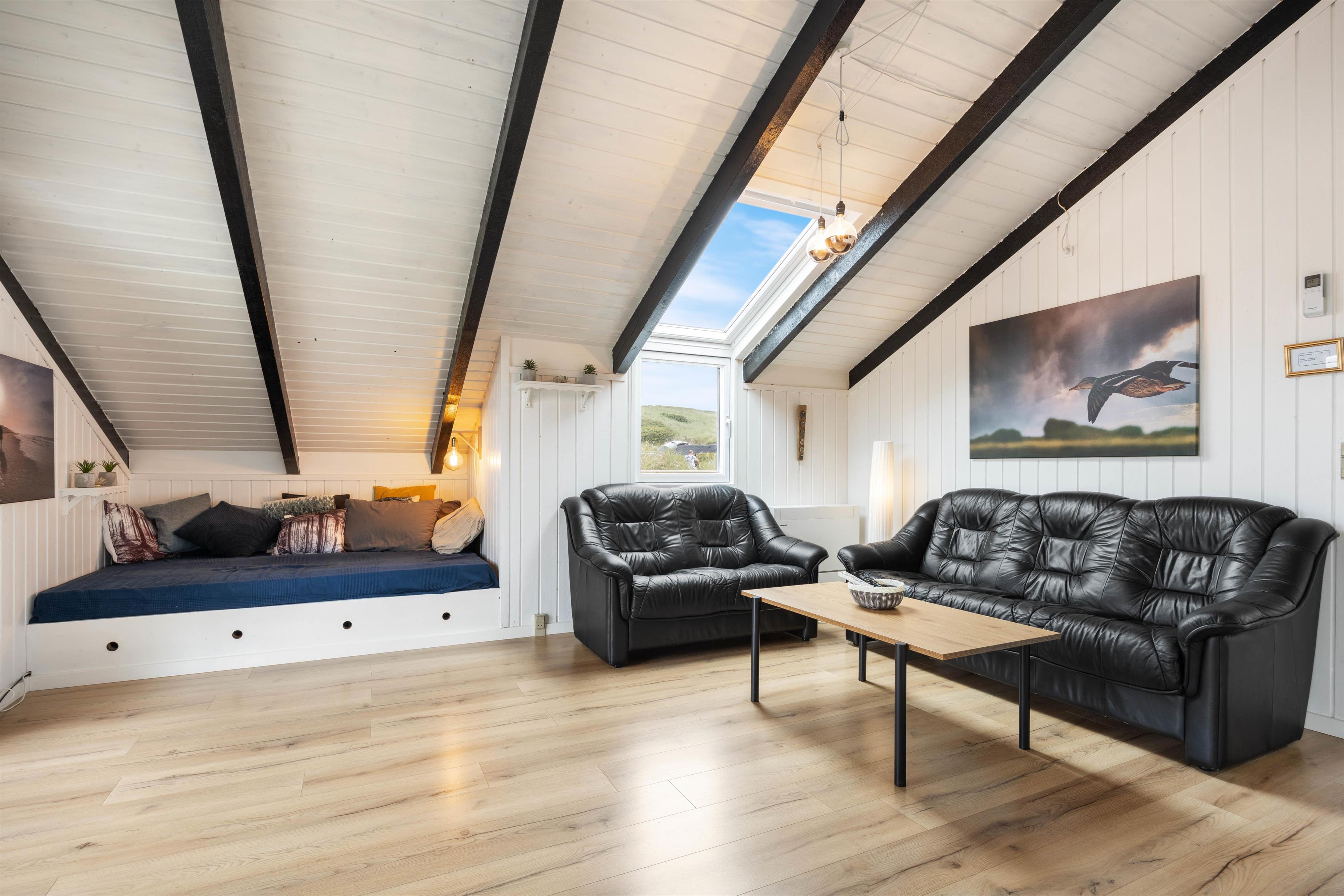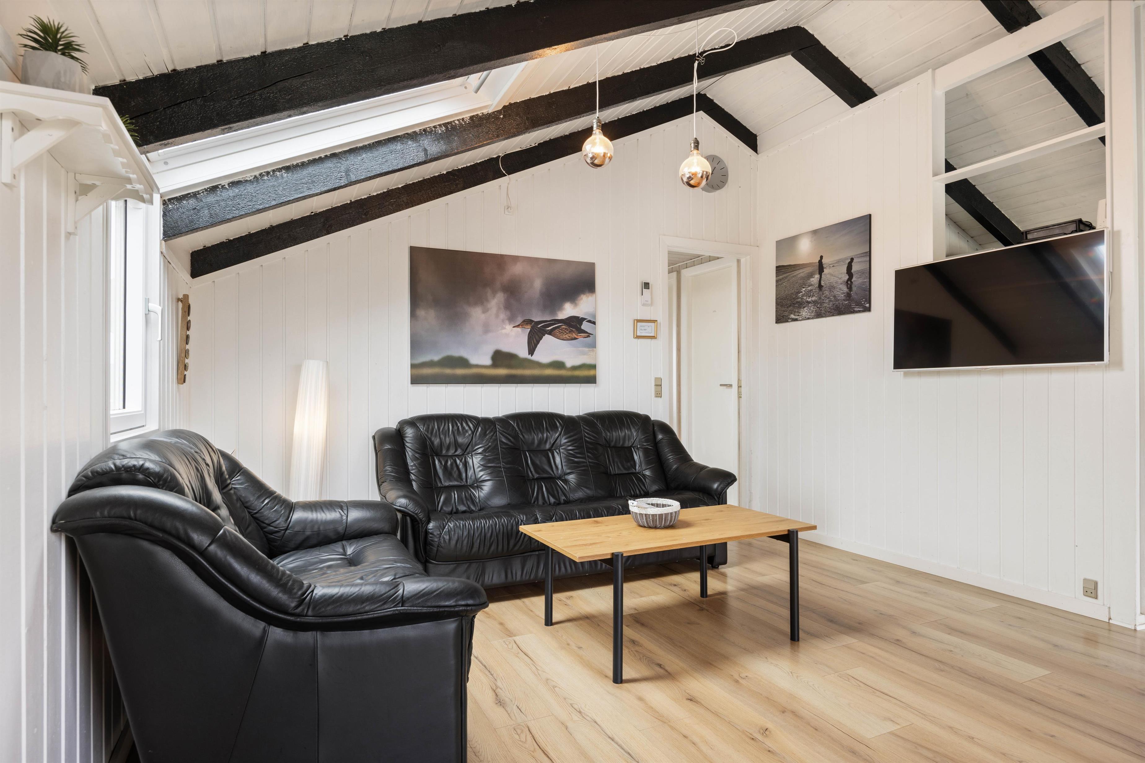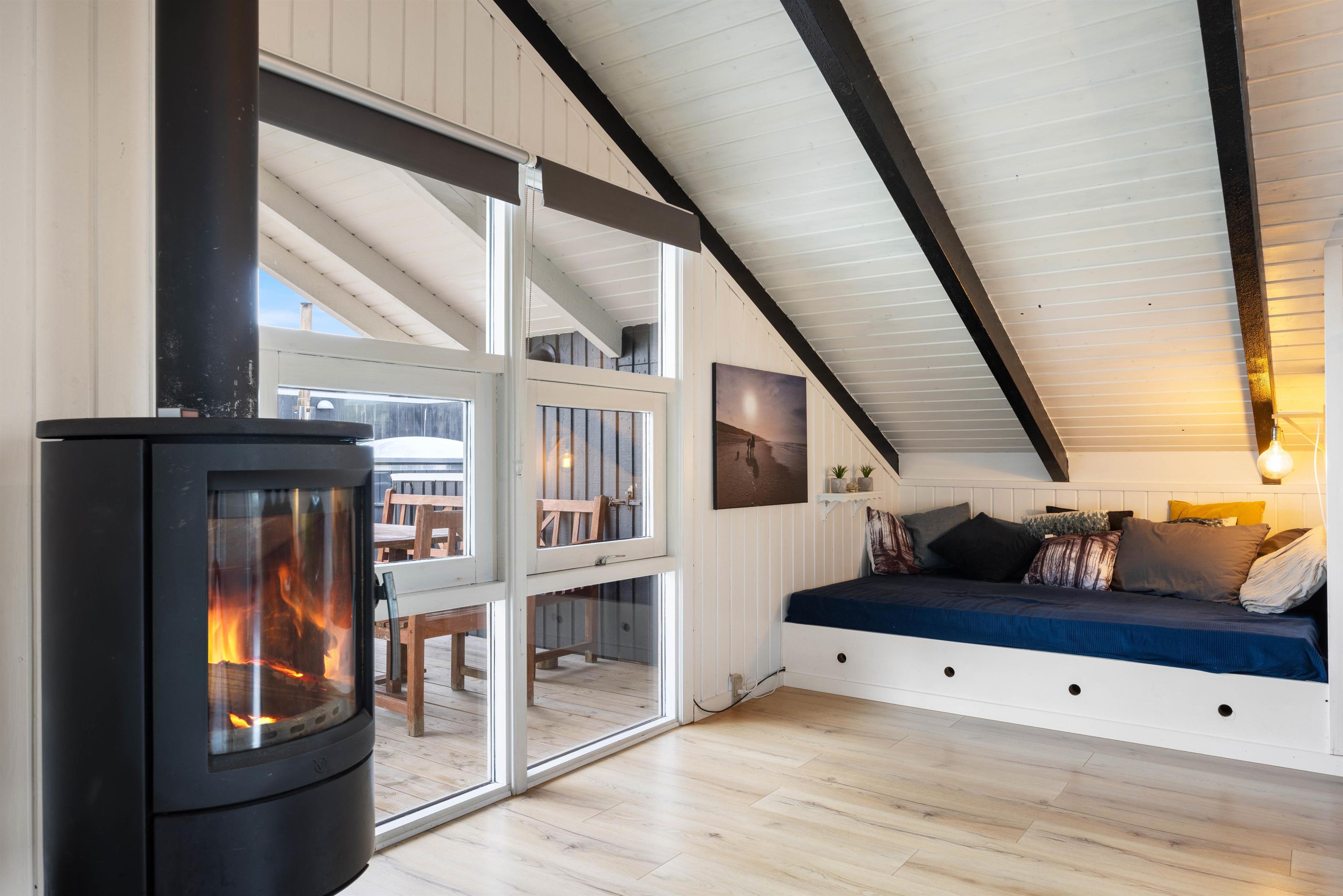 Sofahjørnet her indbyder til totalafslapning foran den – på de kølige dage – knitrende ild i brændeovnen. Enten med en god bog eller en lille ekstra lur.