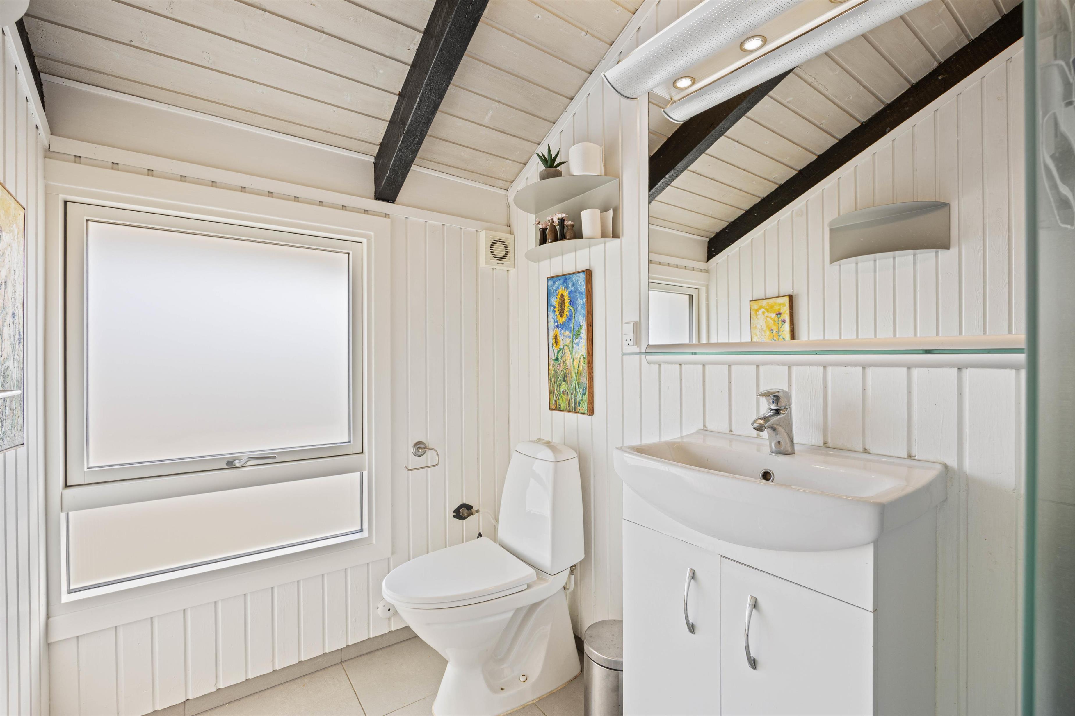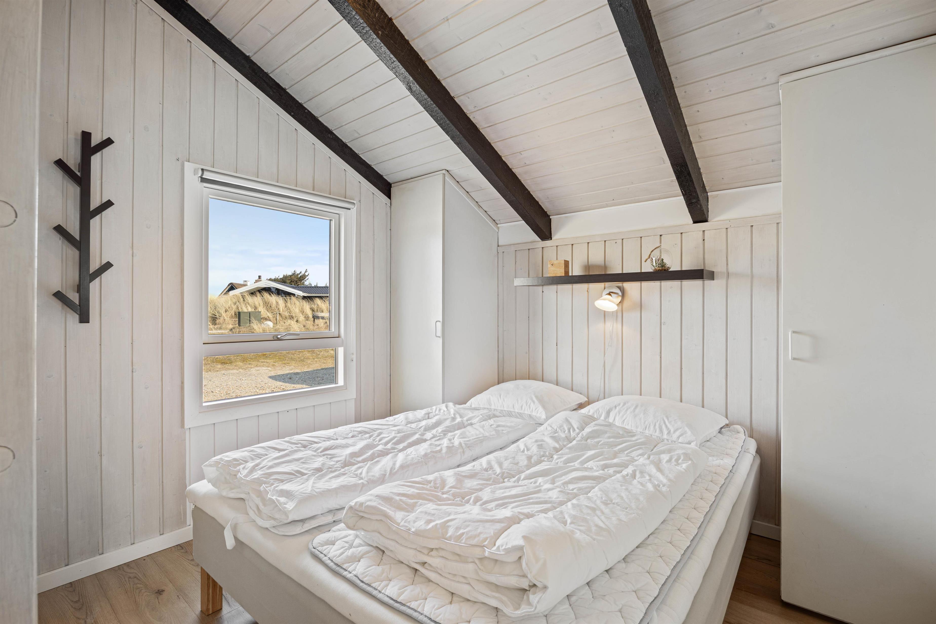Husets 6 sovepladser er fordelt på 3 hyggelige soverum, 2 x dobbeltseng og 1 x enkeltseng, samt 1 soveplads i alkoven i stuen. Badeværelset er lyst og indeholder alt, hvad der er brug for.