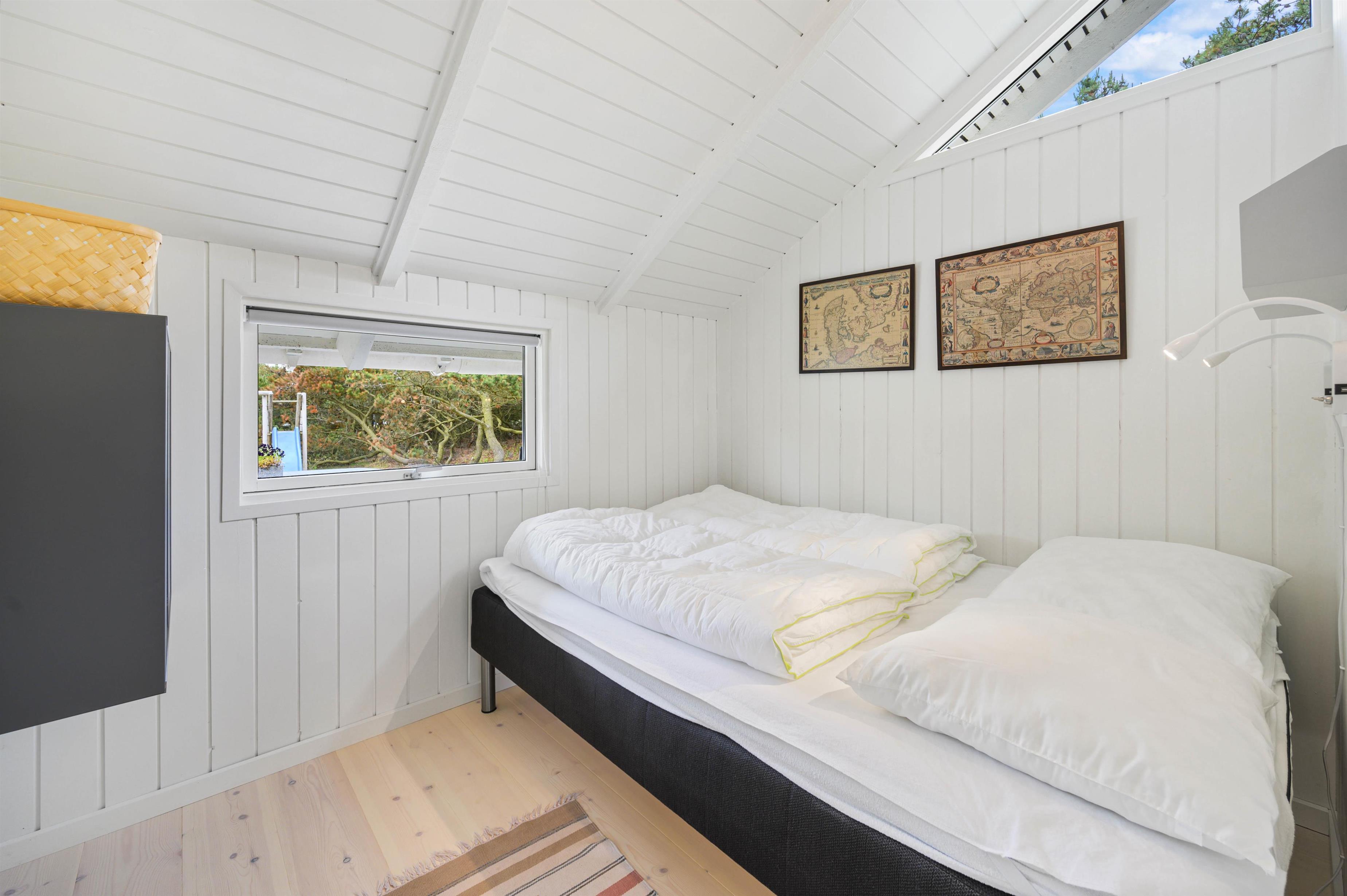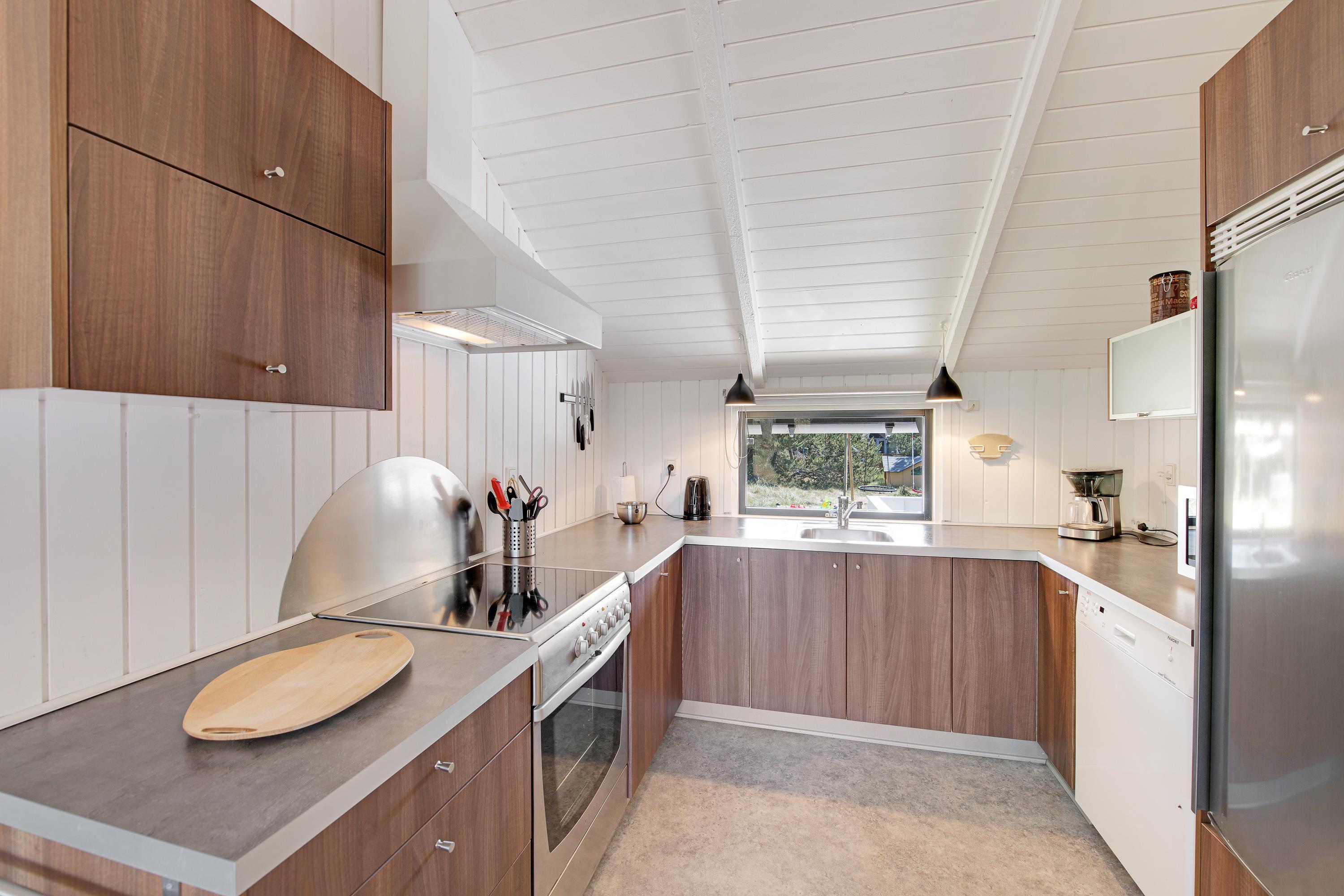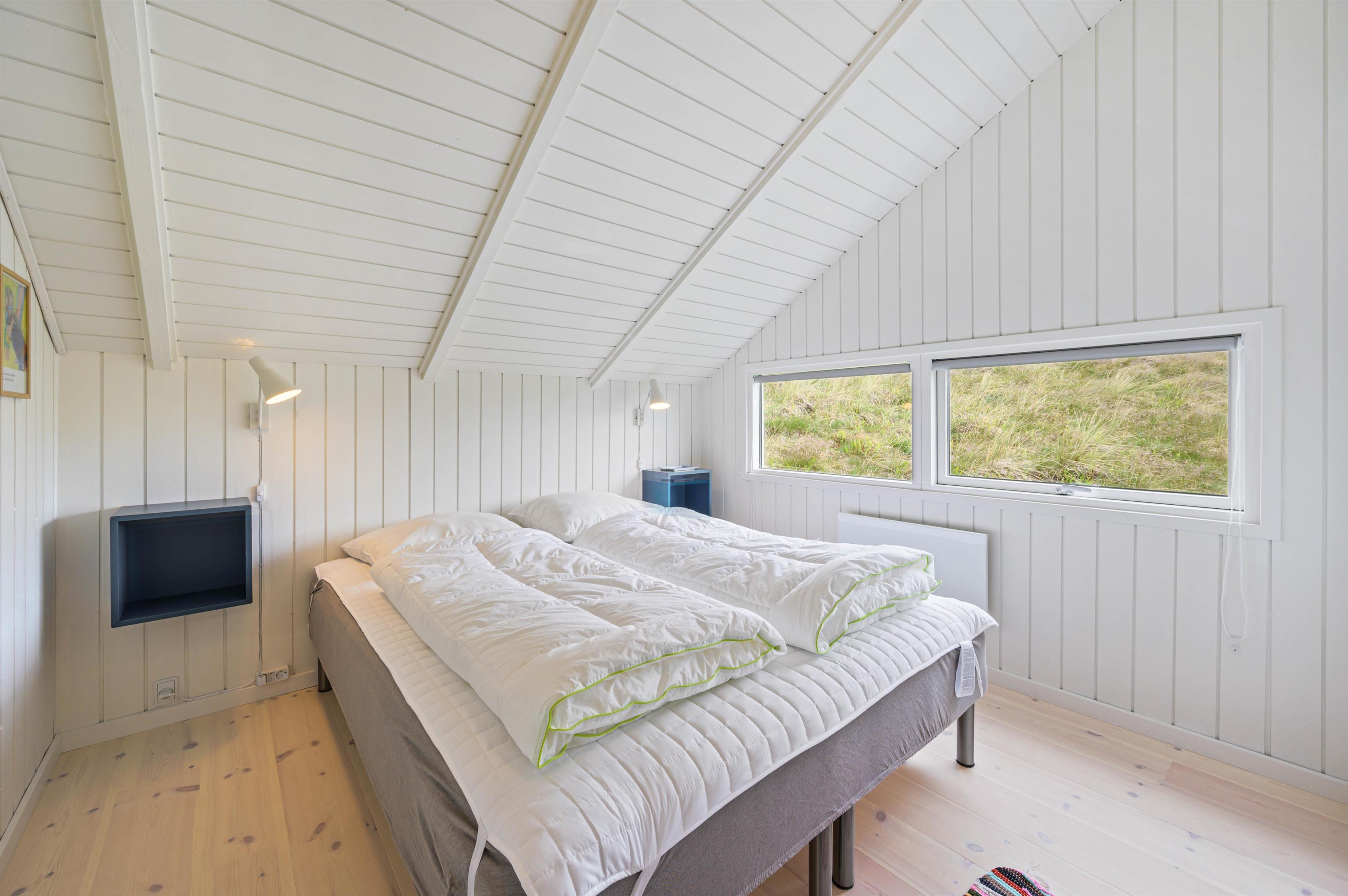 På den 1.200 m² store kuperede naturgrund, som delvist er omgivet af træer, ligger dette skønne og hyggelige feriehus. Feriehuset er lyst, venligt og indbydende indrettet, og det naturlige samlingspunkt er det åbne opholds- og spiserum, som er direkte forbundet med det moderne køkken. På kølige dage kan I hygge jer foran brændeovnen. I både badeværelset og gæstetoilettet sørger gulvvarme for behagelig varme. En spa og en sauna inviterer desuden til afslappende timer – den perfekte afslutning på en lang gåtur i den friske havluft ved Vesterhavet. Feriehuset har 3 lyse og rummelige dobbeltværelser. Derudover finder I en fryser (85 L), vaskemaskine, tørretumbler, opvaskemaskine samt et praktisk bryggers.