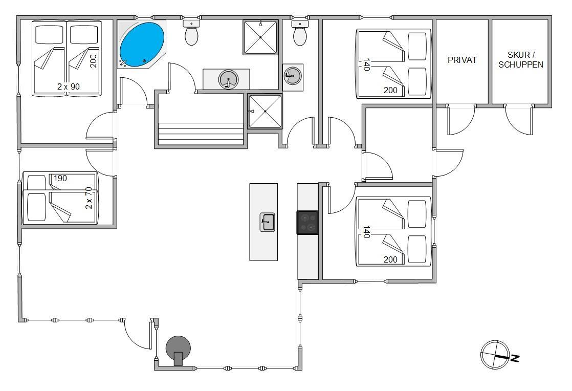 Og trænger du til lidt ekstra afslapning og selvforkælelse, er der både en sauna og et spabad – perfekt for både krop og sjæl efter en tur ved stranden. Begge badeværelser har gulvvarme, og de fire værelser er udstyret med komfortable senge, så I er sikret en god nattesøvn. På ét af værelserne findes en køjeseng, 70x190. Uden tvivl et hit blandt familiens mindste.