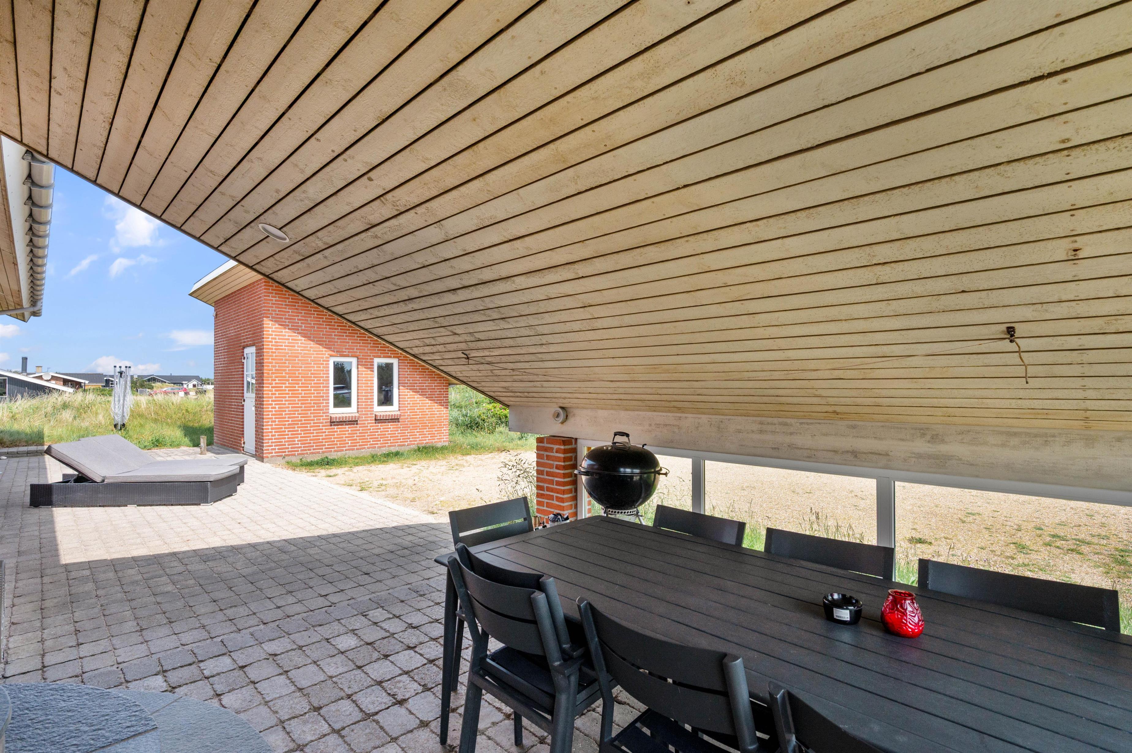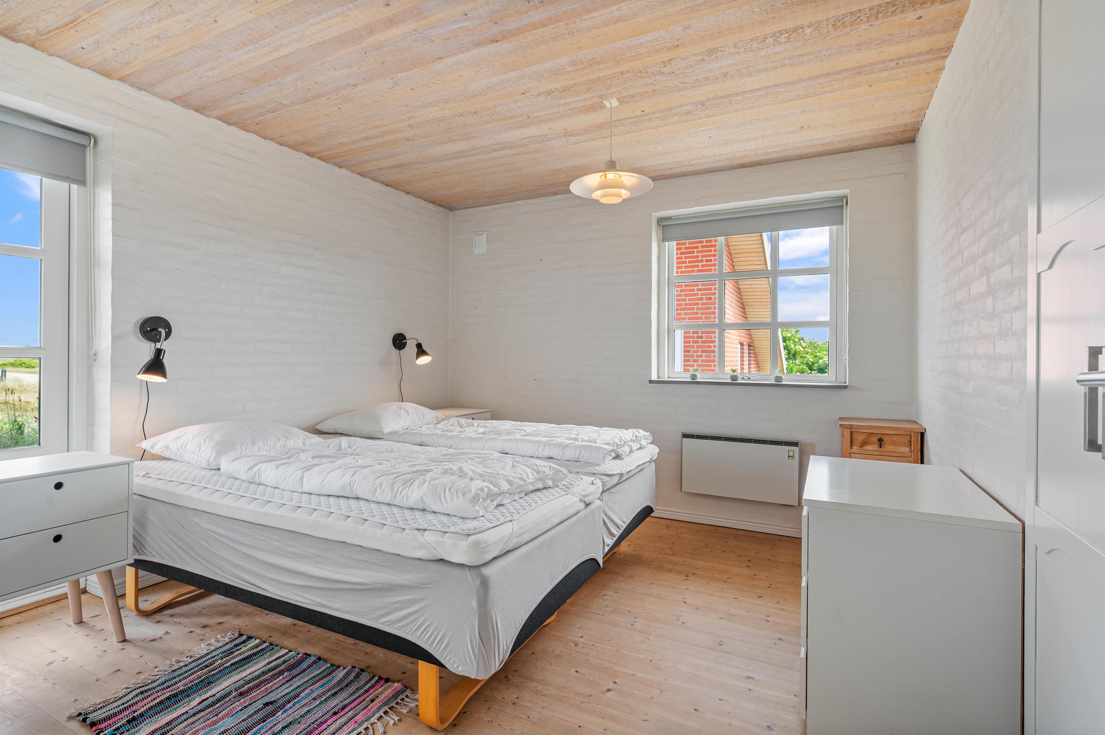 Sommerhuset ligger midt i det populære ferieområde Bjerregård. Herfra har I blot 550 meter til den kilometerlange sandstrand, hvor I kan gå lange ture med fødderne i vandkanten, samle muslingeskaller eller bygge strandens største sandslot.